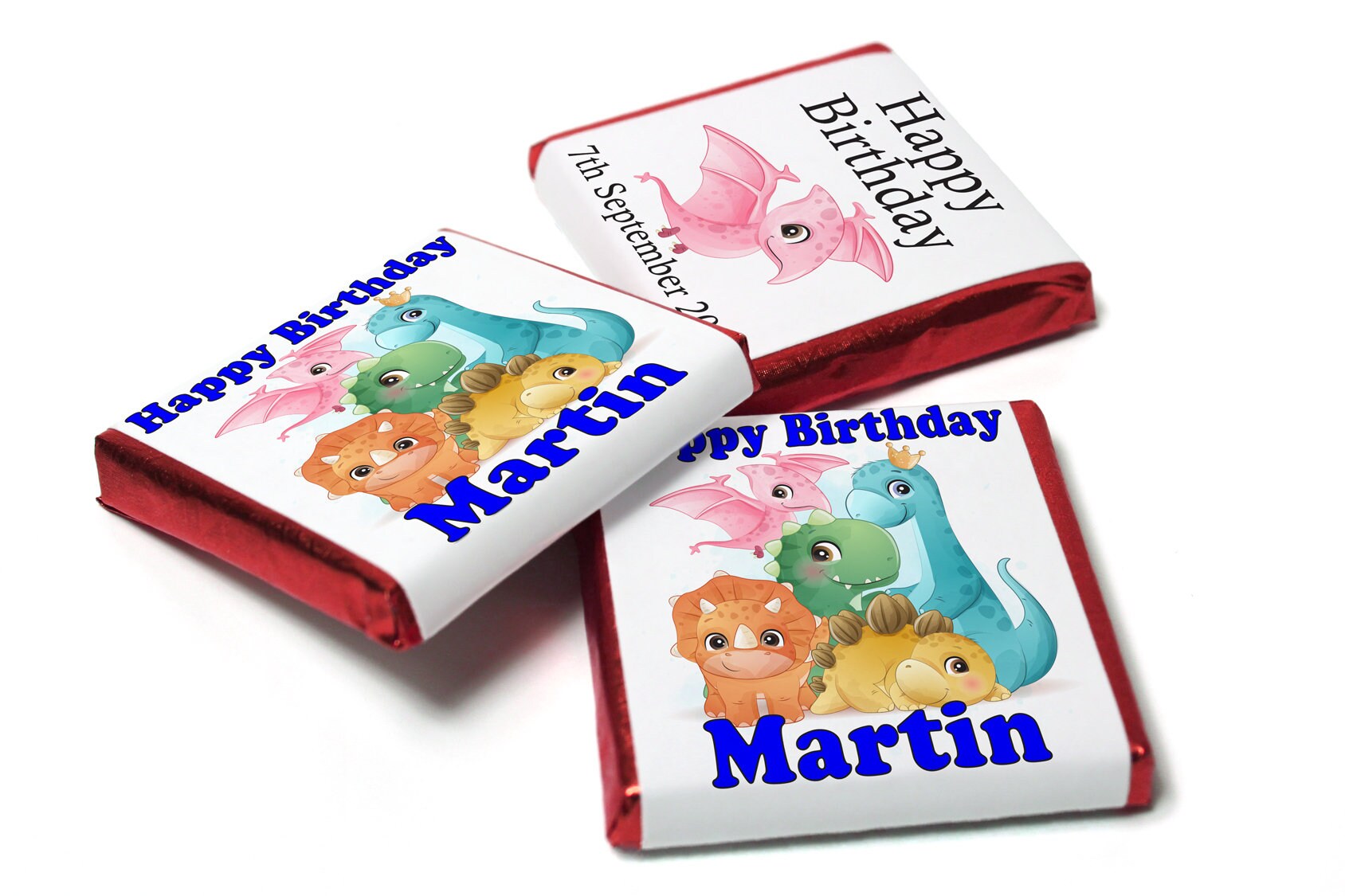 Birthday Gifts - Personalised Favours - Neapolitan Chocolates - Dinosaur - Blue Text - V0
