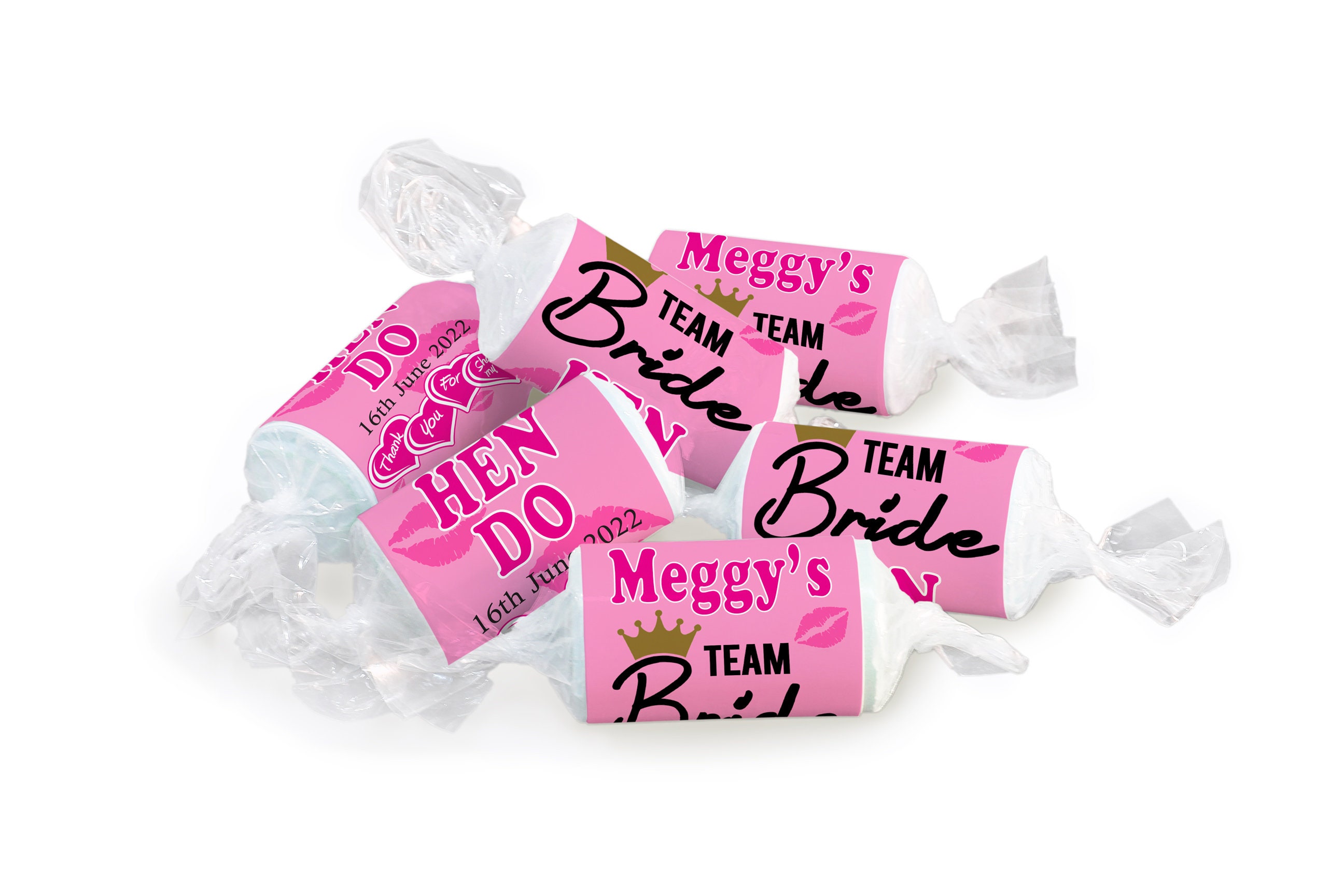 Hen Sweets - Personalised Favours - Love Heart Sweets, Team Bride- Clear ends - V4