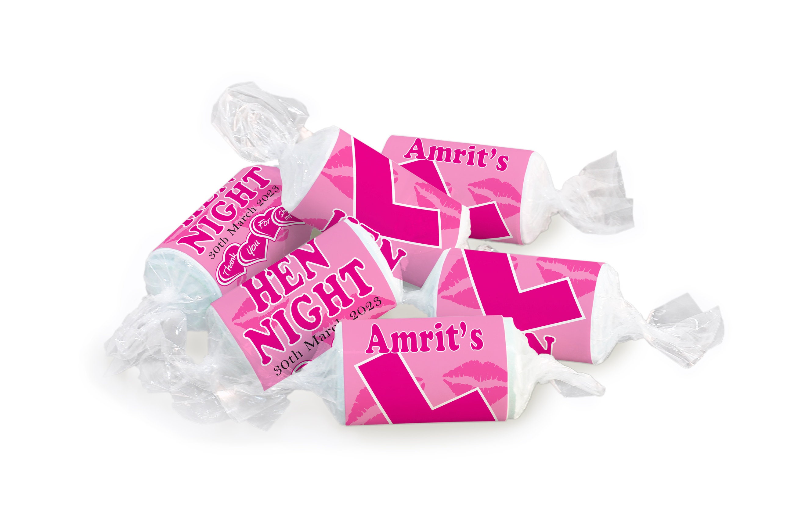 Hen Sweets - Personalised Favours - Love Heart Sweets, Learner - Clear ends - V7 Pink
