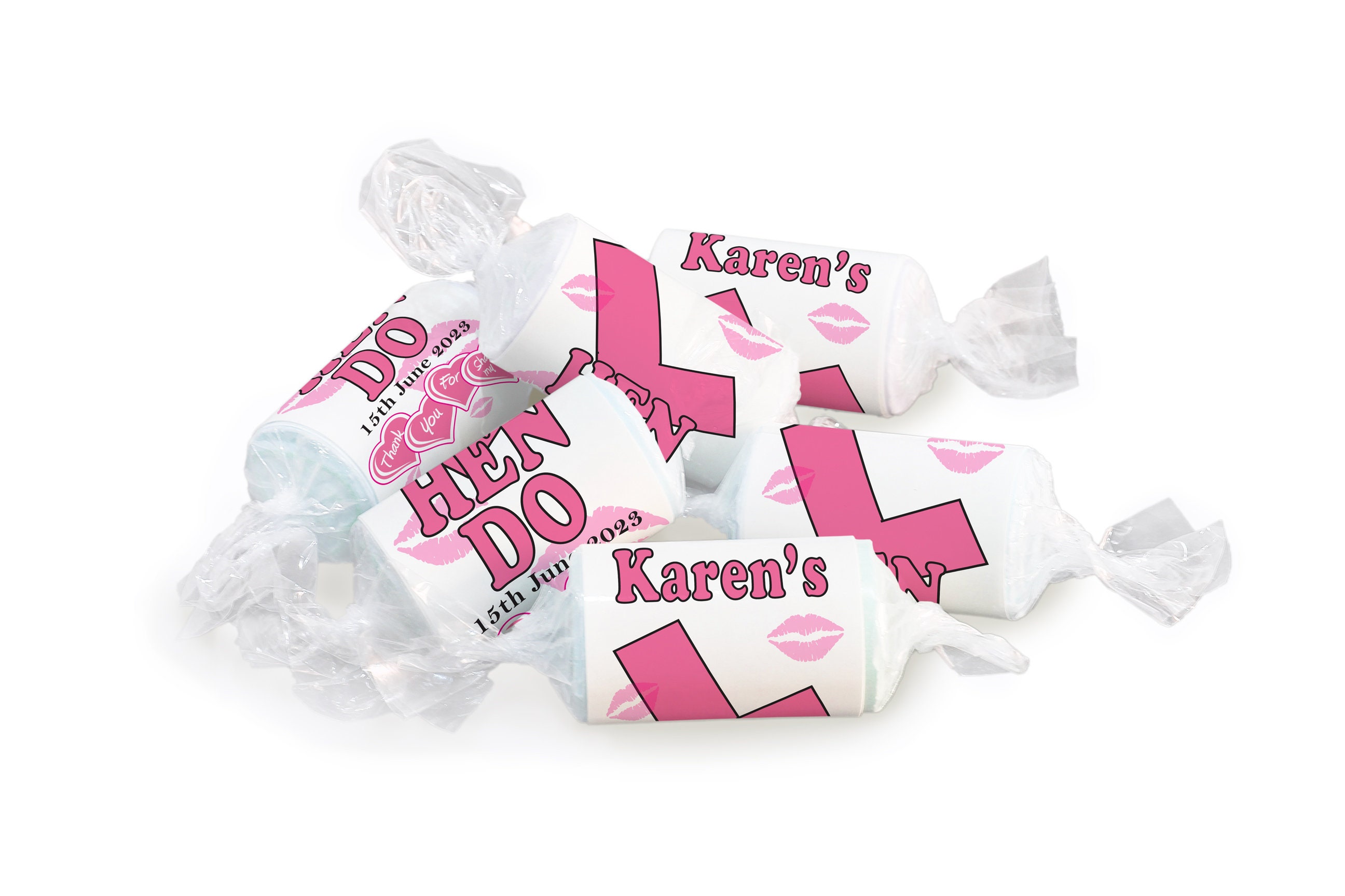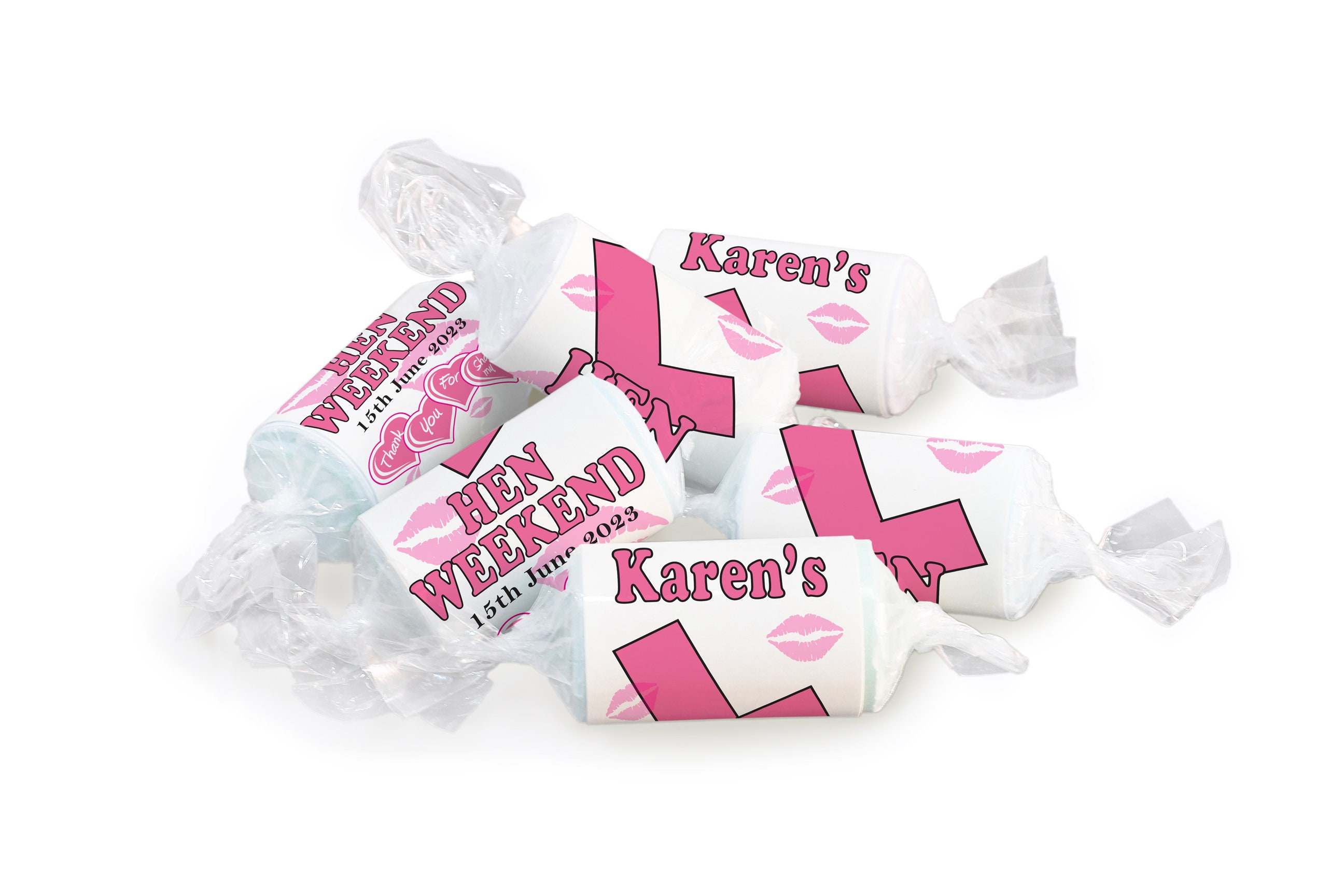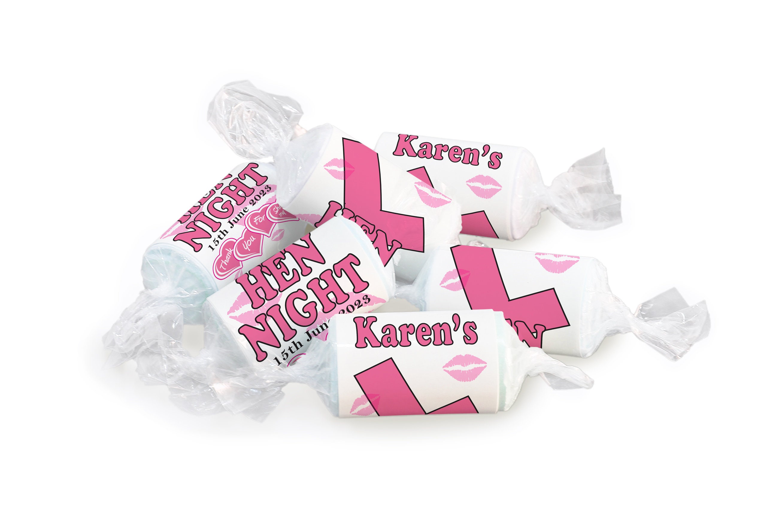 Hen Sweets - Personalised Favours - Love Heart Sweets, Learner - Clear ends - V7 White