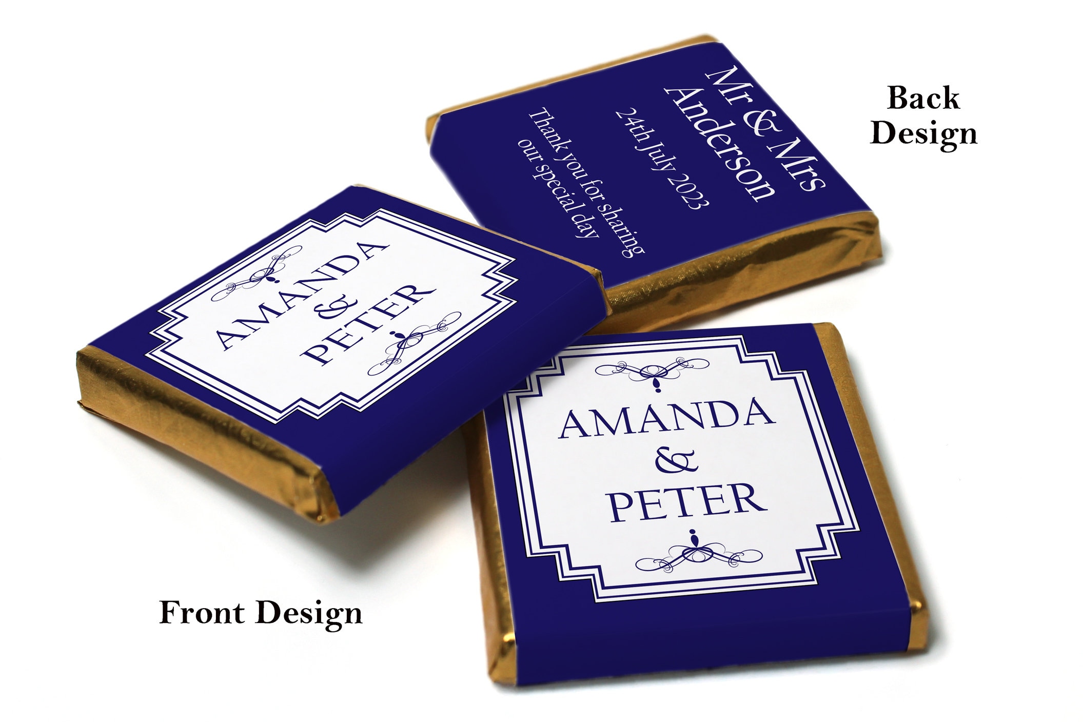Wedding Chocolates - Personalised Wedding Favours - Neapolitan Chocolates - Gatsby - Blue