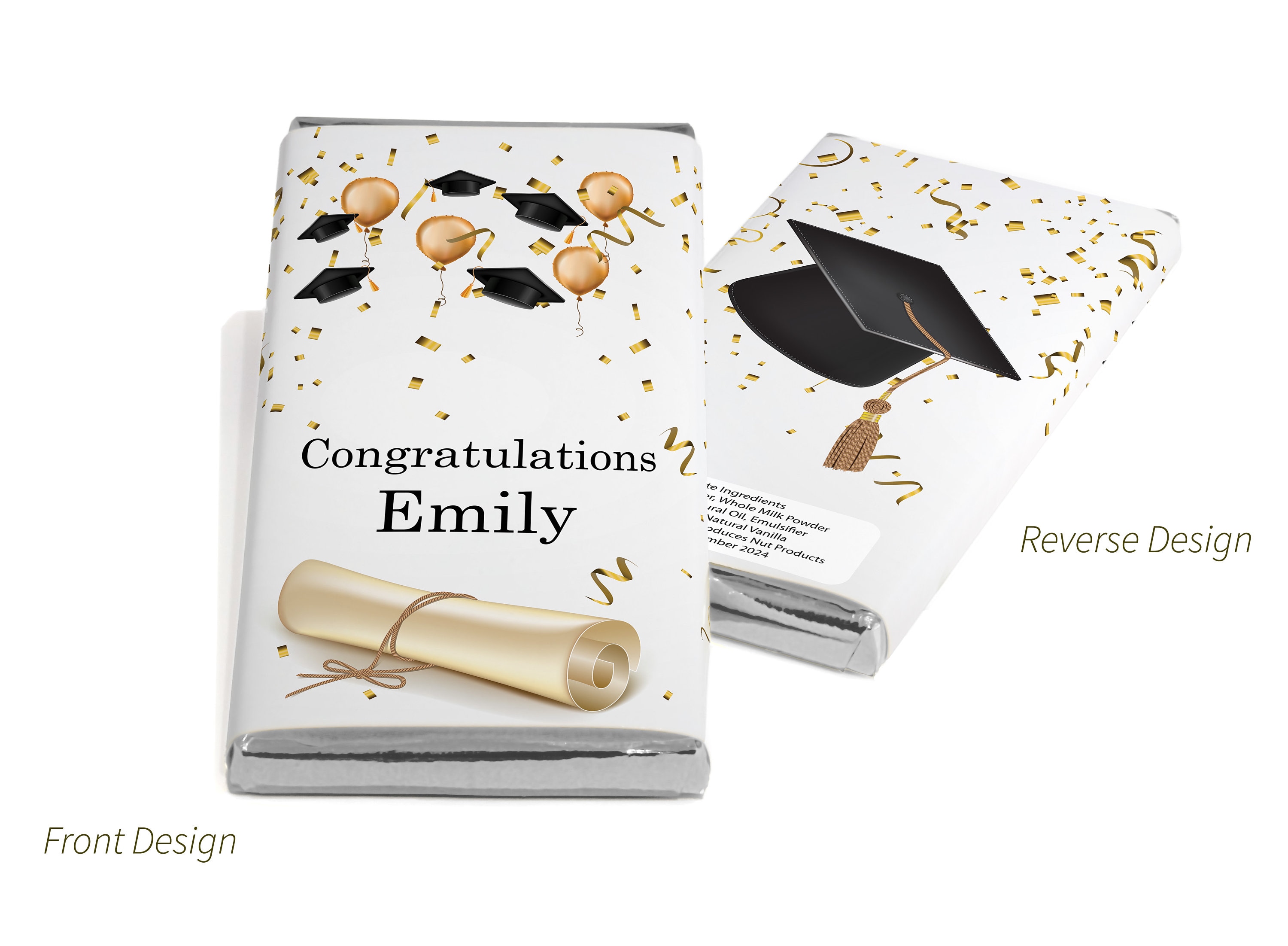 Graduation Chocolate Bars - Personalised Favours - 80g Milk Chocolate Bars in Gold & Silver Foils - V1