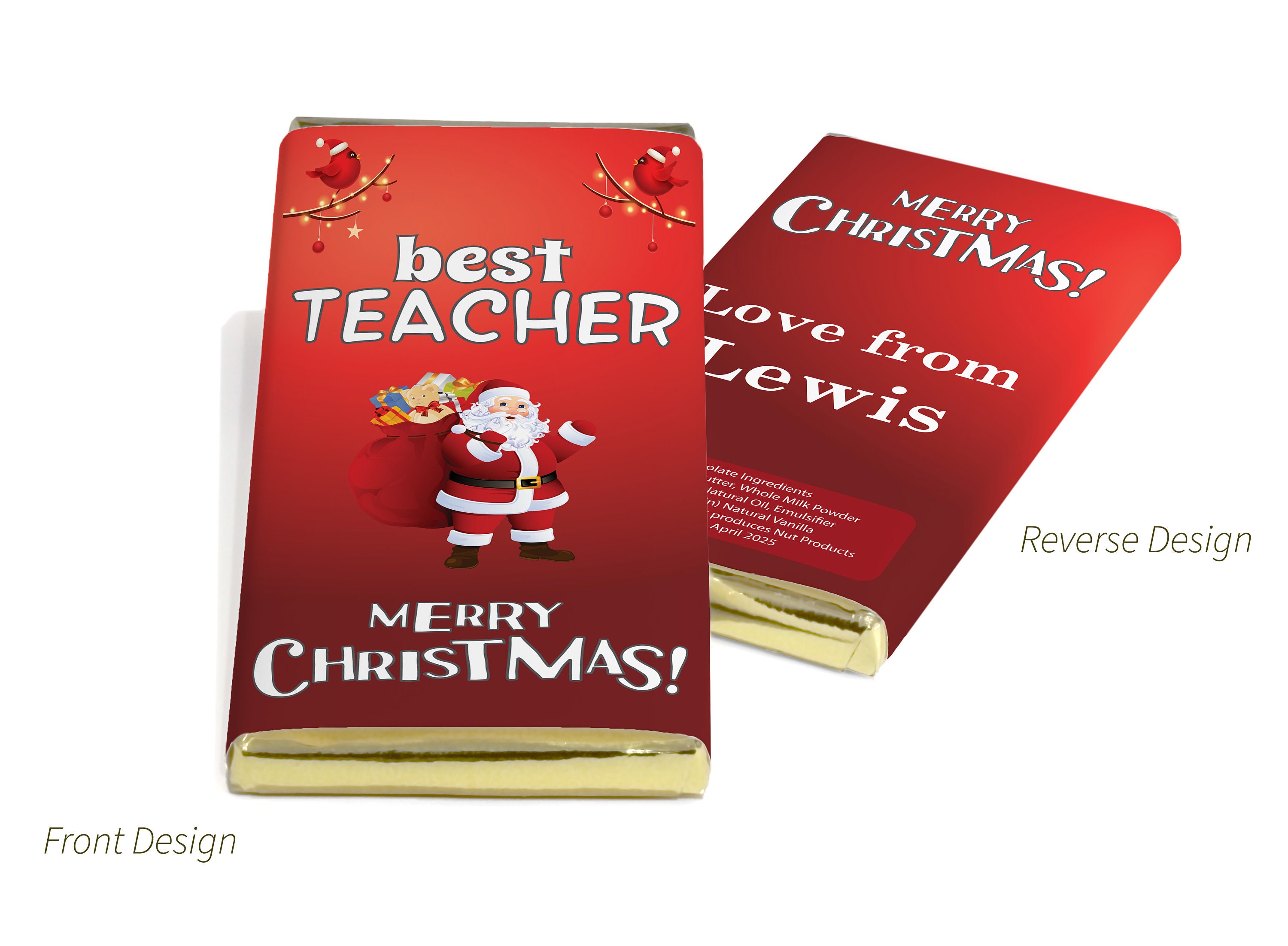 Christmas Best Teacher Chocolate Bars - Personalised Favours - 80g Milk Chocolate Bars in Gold & Silver Foils - V3