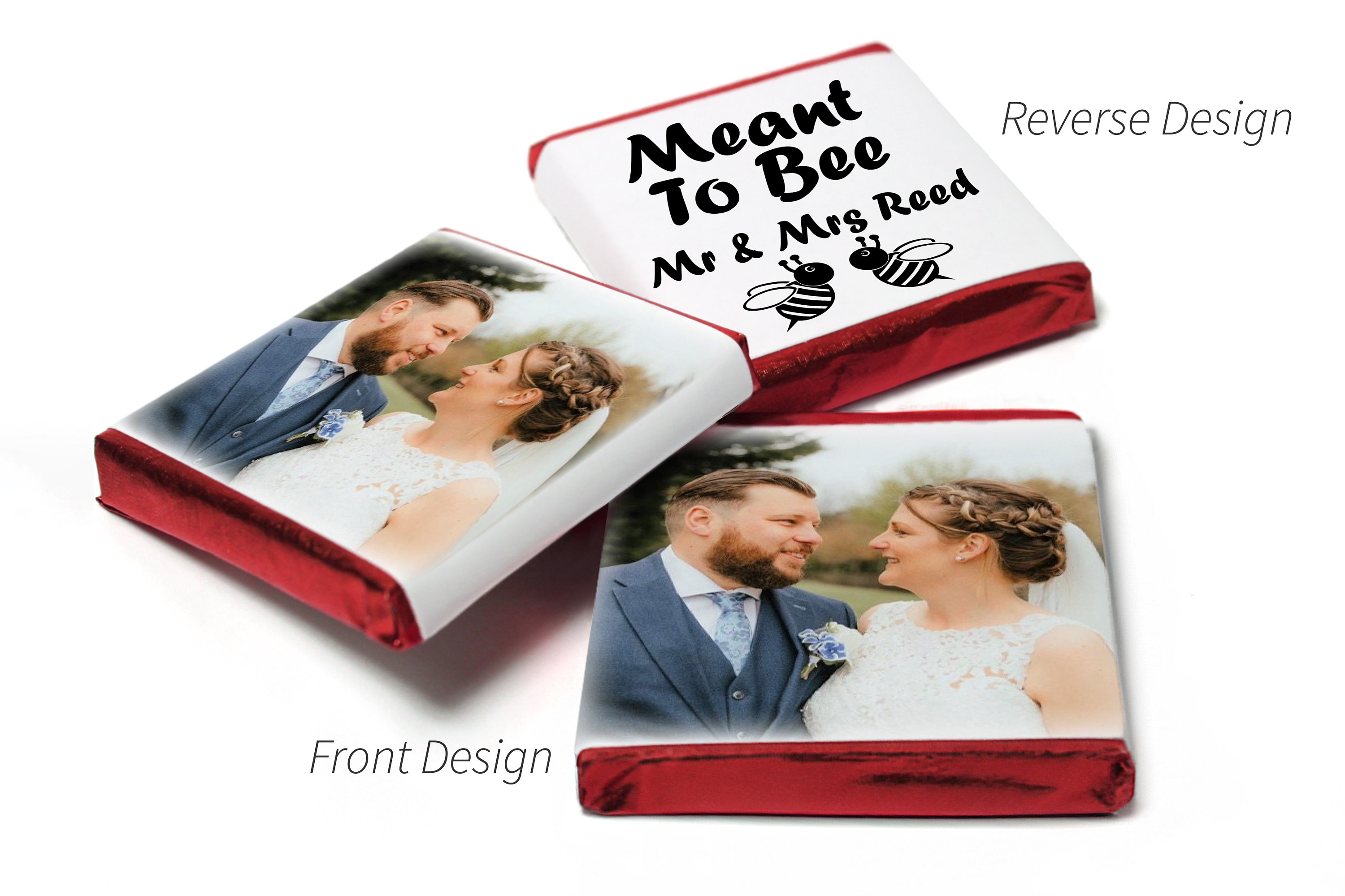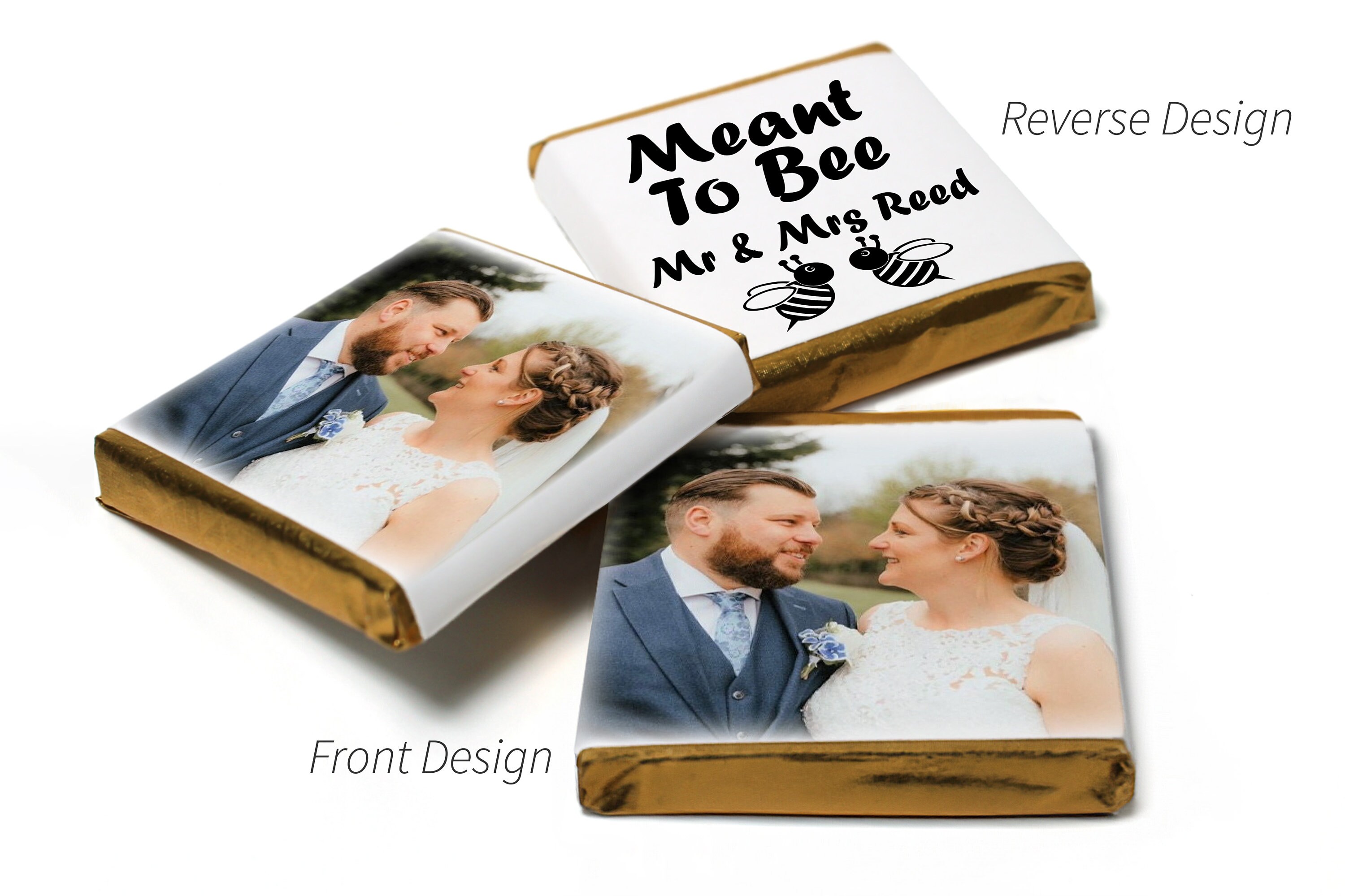 Wedding Chocolates - Personalised Wedding Favours - Neapolitan Chocolates -Meant to Bee - with Image - V1