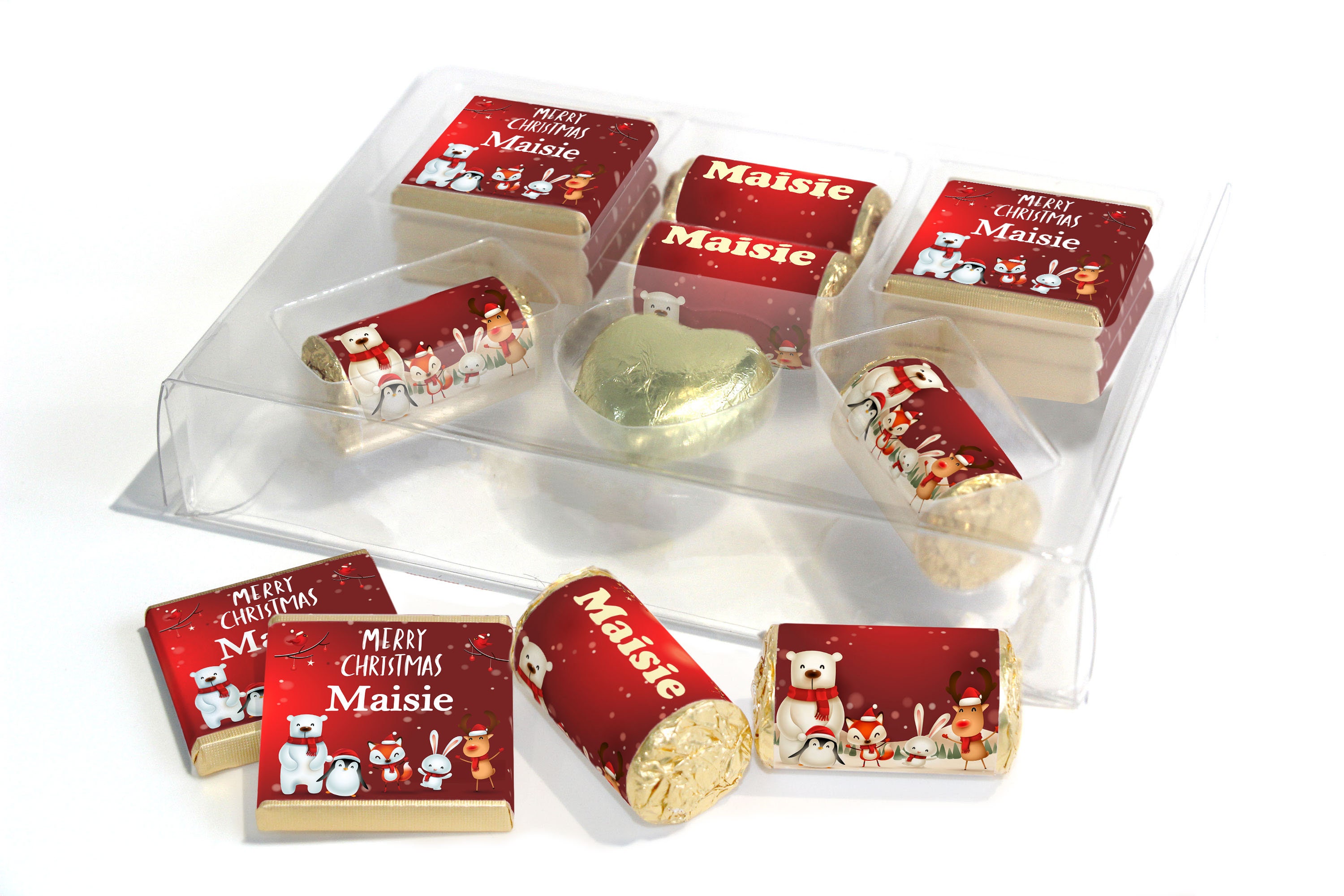 Christmas Large Combo Box - Personalised Favours - Neapolitan Chocolates/Heart/Love Heart Sweets - V6