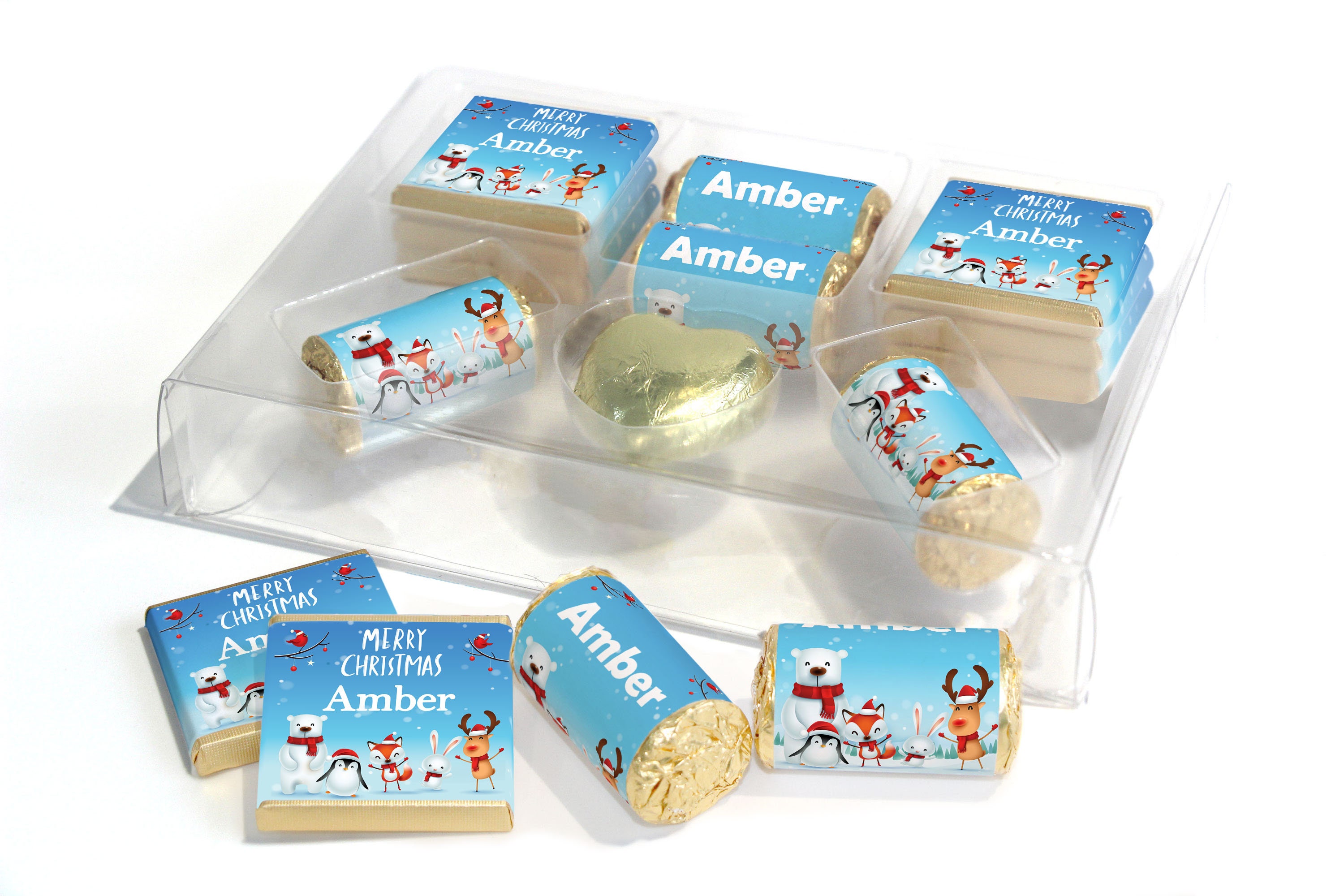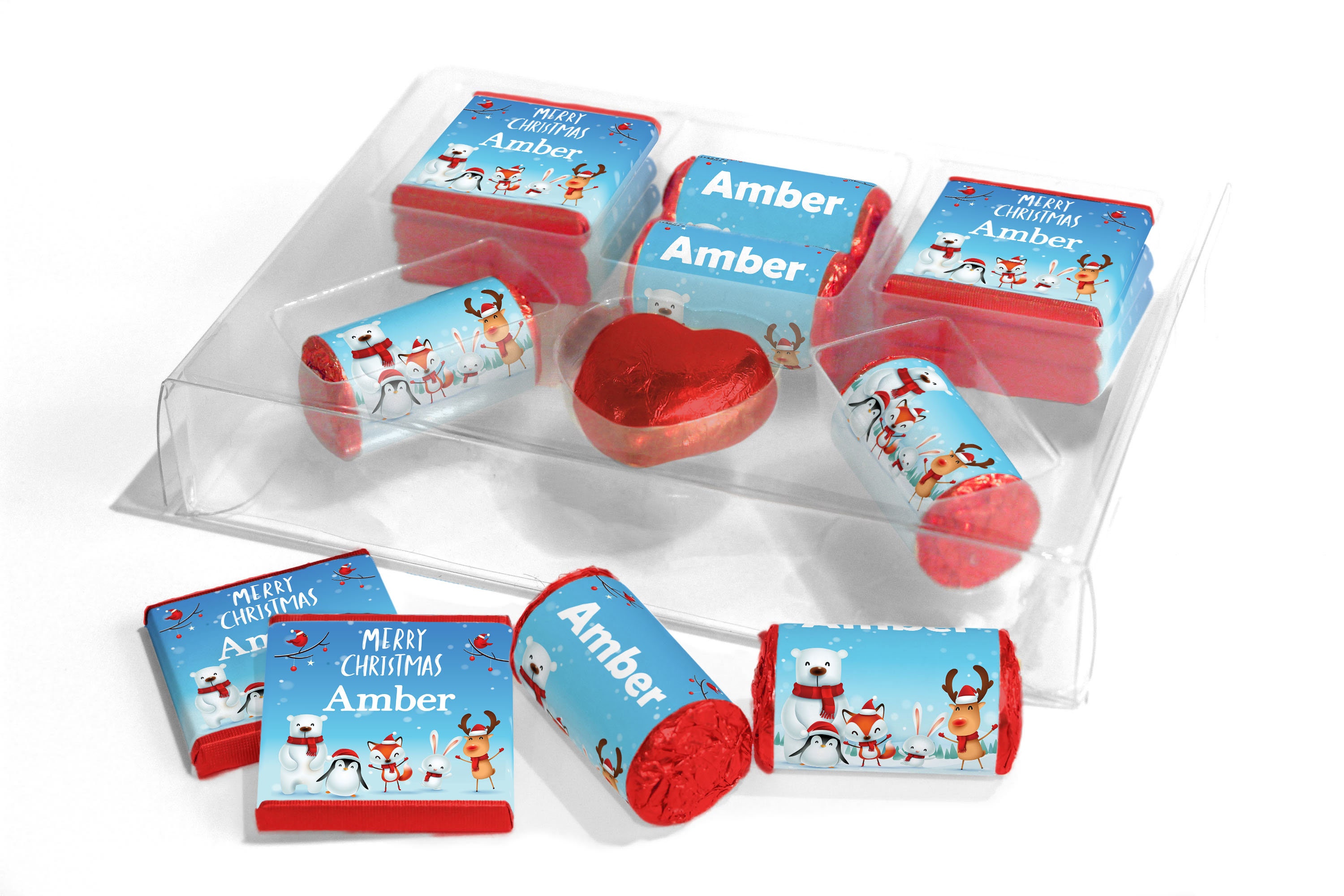Christmas Large Combo Box - Personalised Favours - Neapolitan Chocolates/Heart/Love Heart Sweets - V7