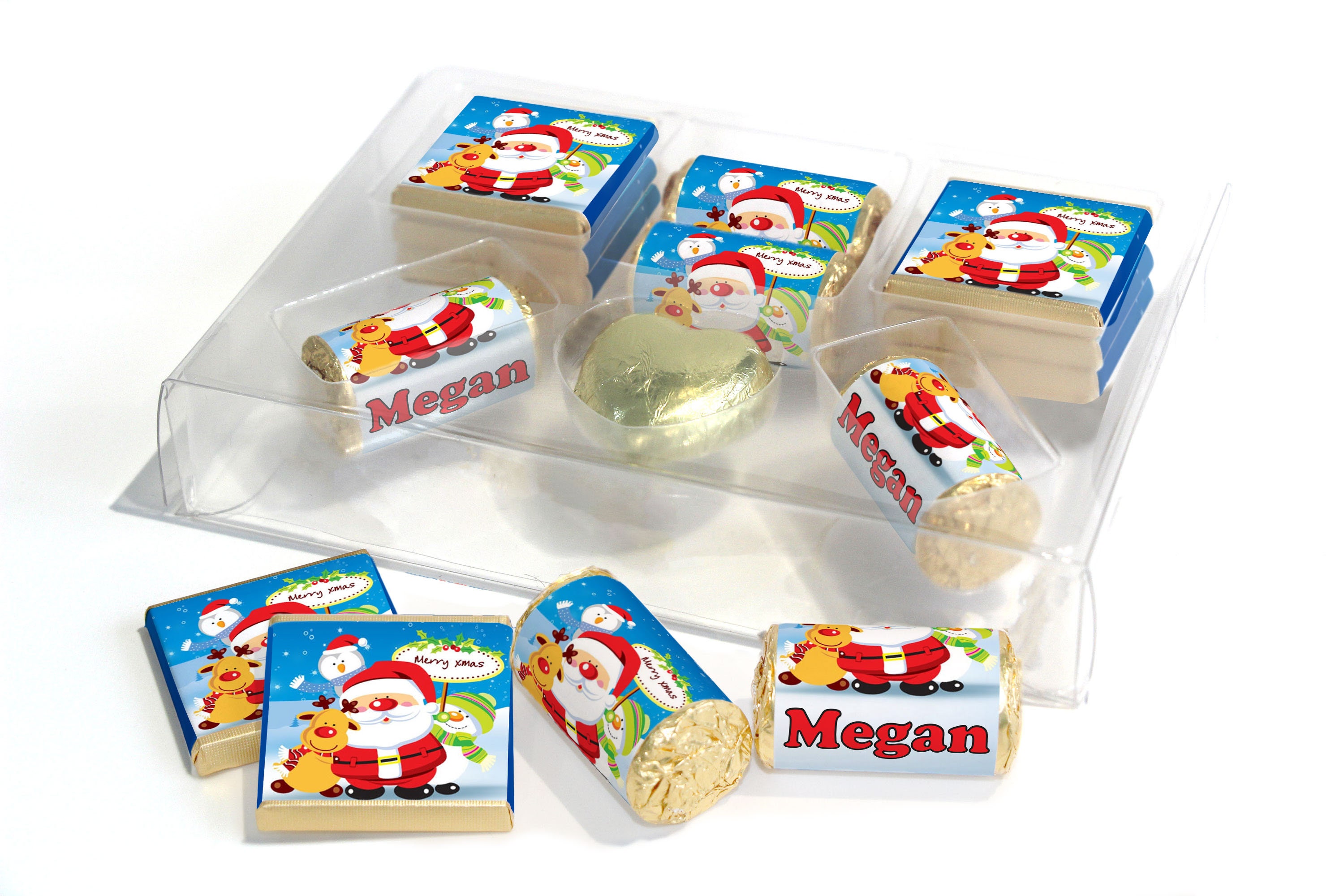 Christmas Large Combo Box - Personalised Favours - Neapolitan Chocolates/Heart/Love Heart Sweets - V1