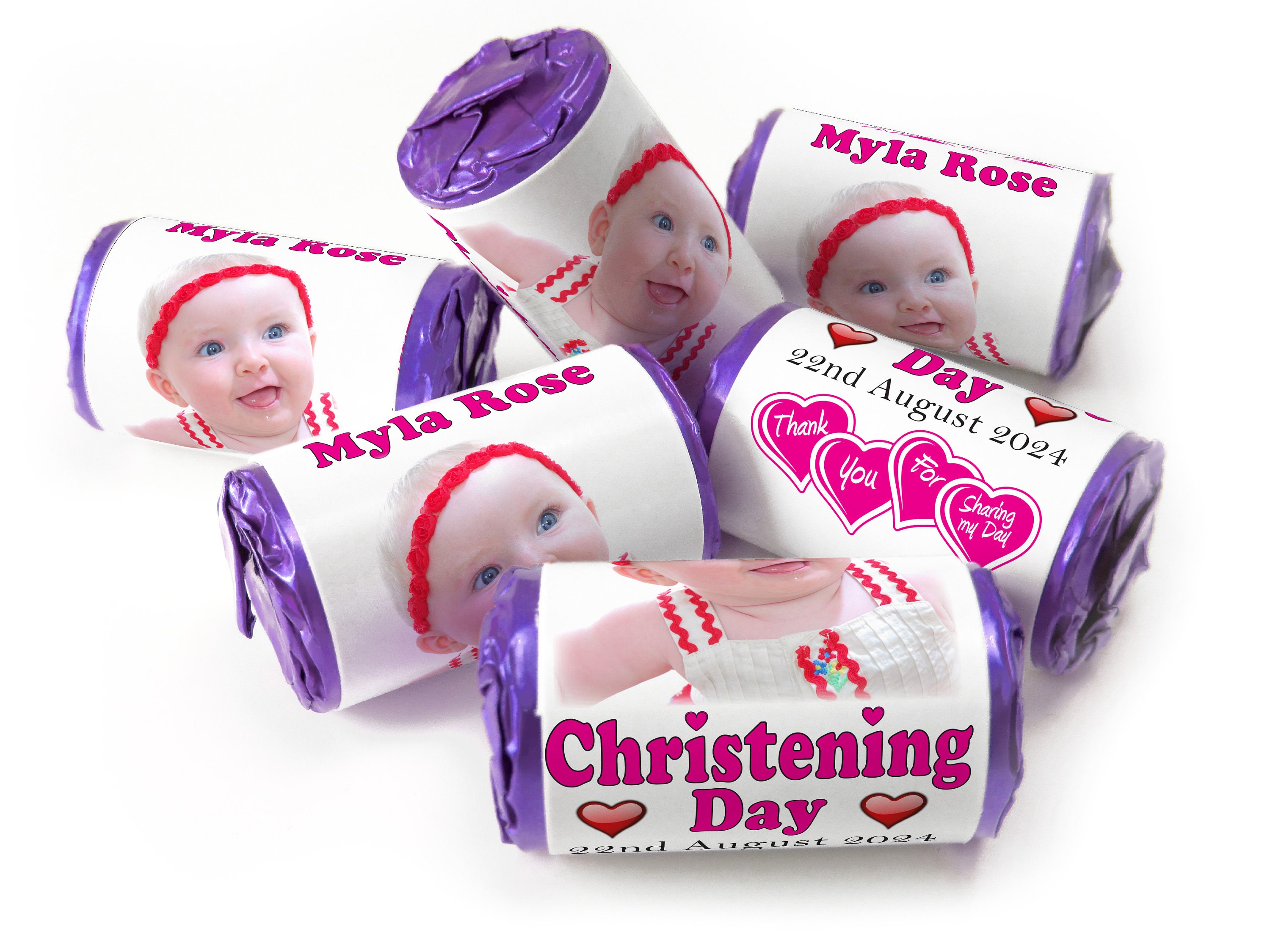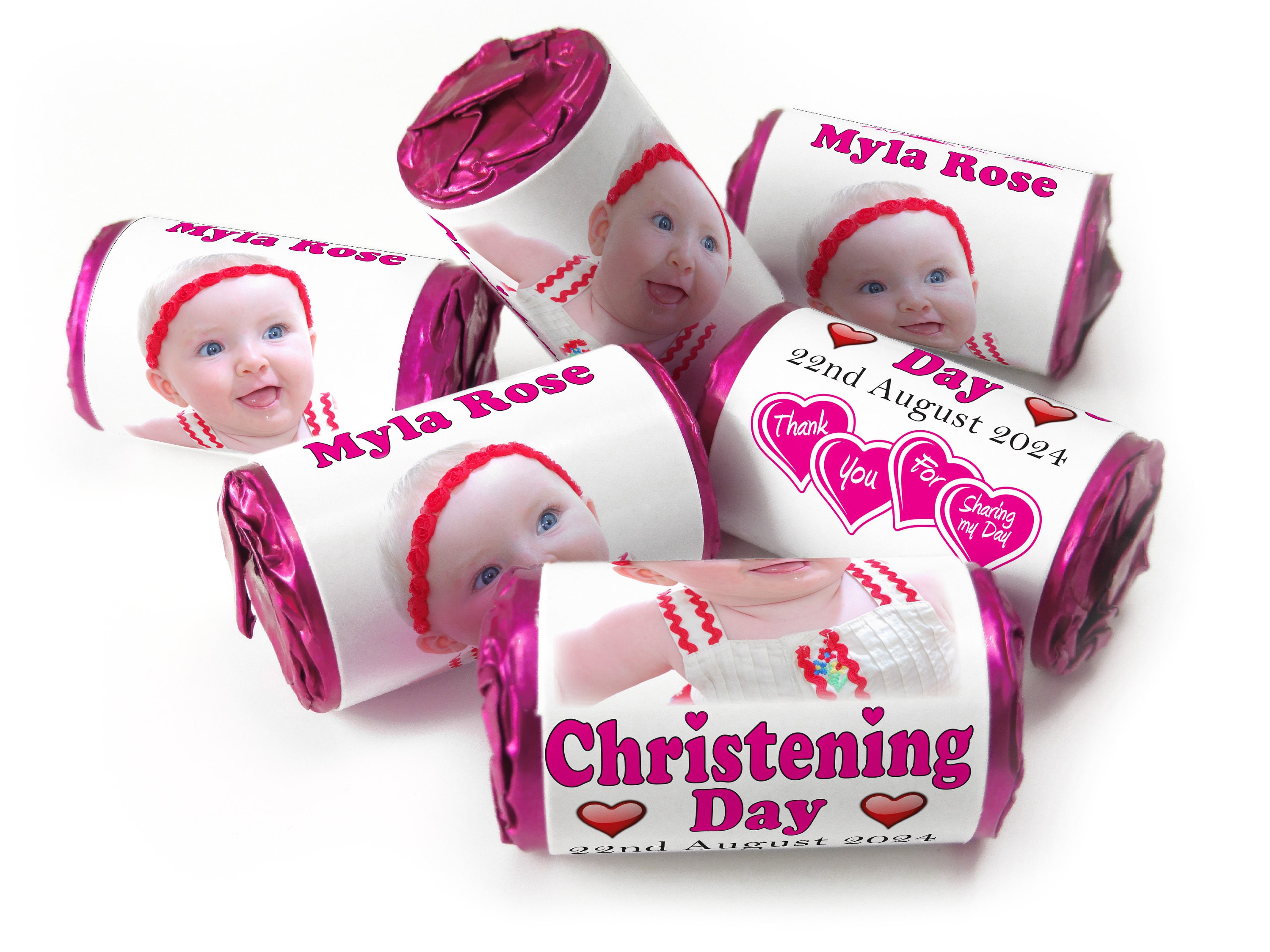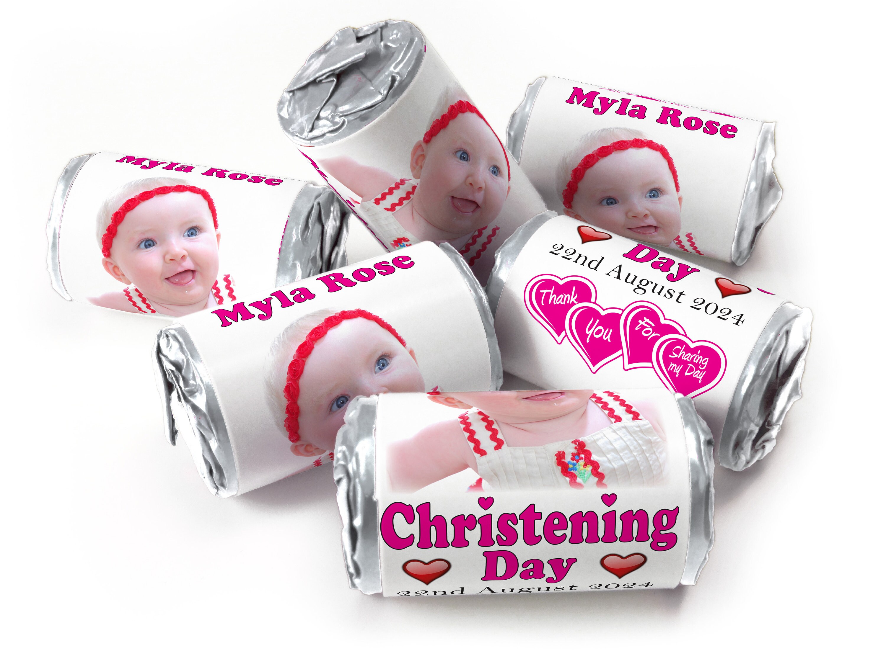 Christening Favours, Personalised Love Heart Sweets with Inner Foil choices - Girl with your image - V0