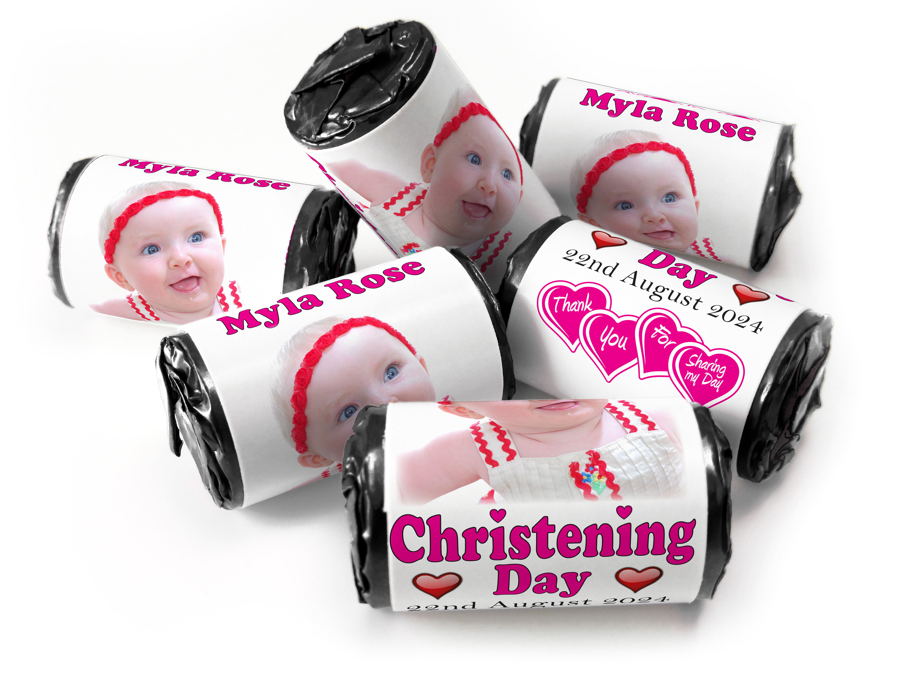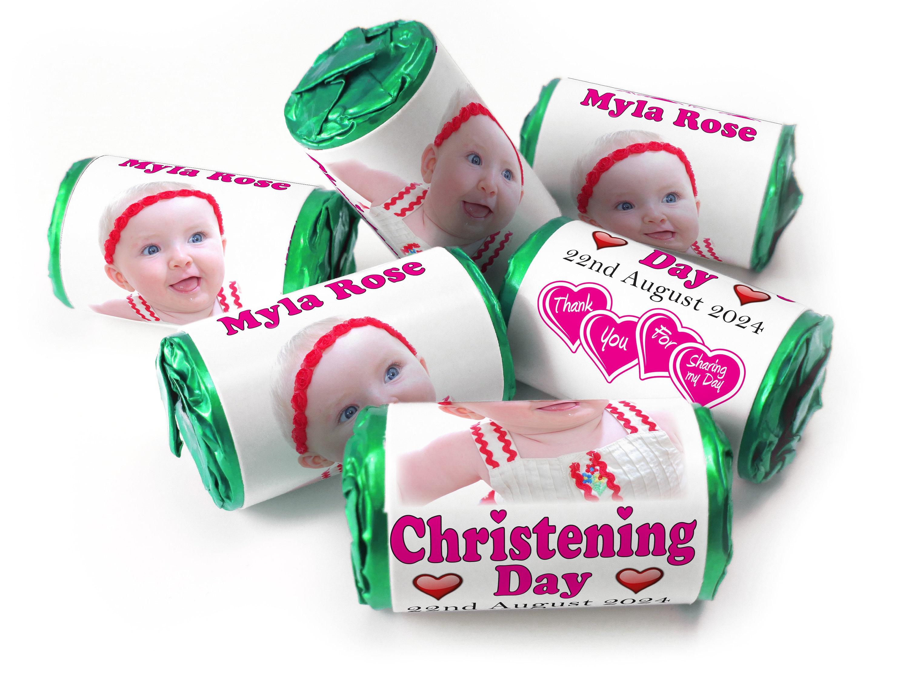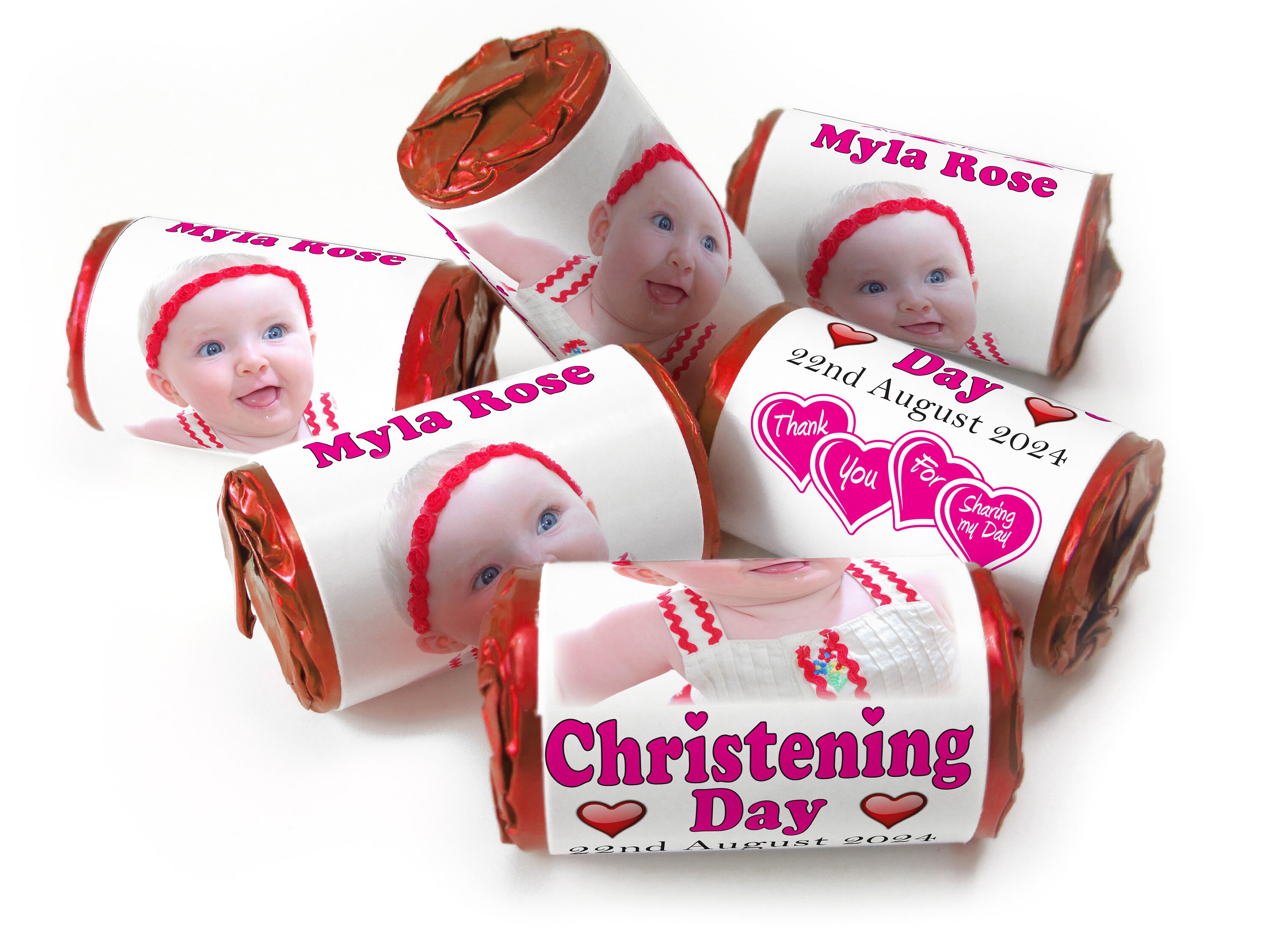 Christening Favours, Personalised Love Heart Sweets with Inner Foil choices - Girl with your image - V0