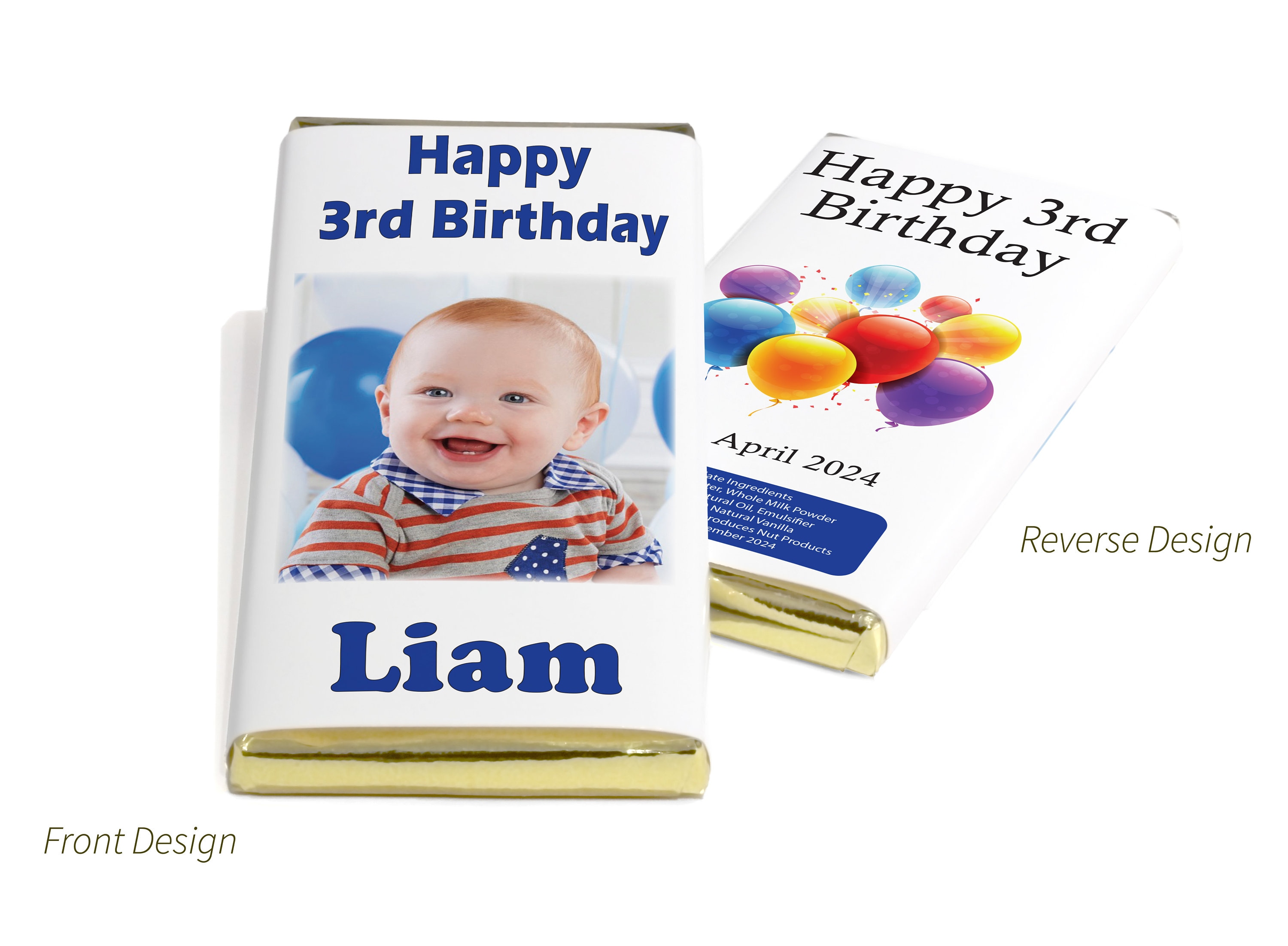 Birthday Boy Chocolate Bars - Personalised Favours - 80g Milk Chocolate Bars in Gold & Silver Foils with image - V0