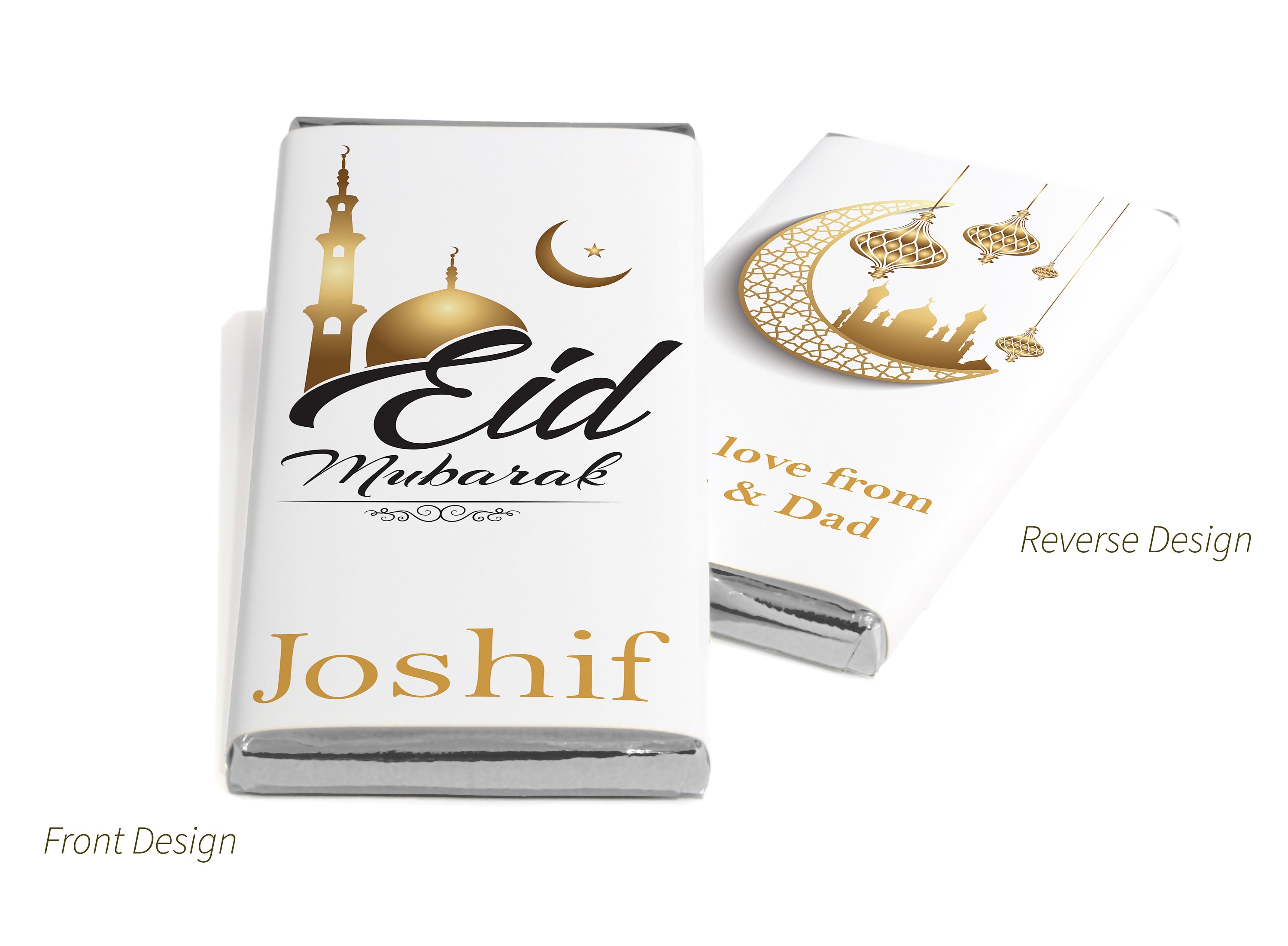 EID Chocolate Bars - Personalised Favours - 80g Milk Chocolate Bars in Gold & Silver Foils - V2