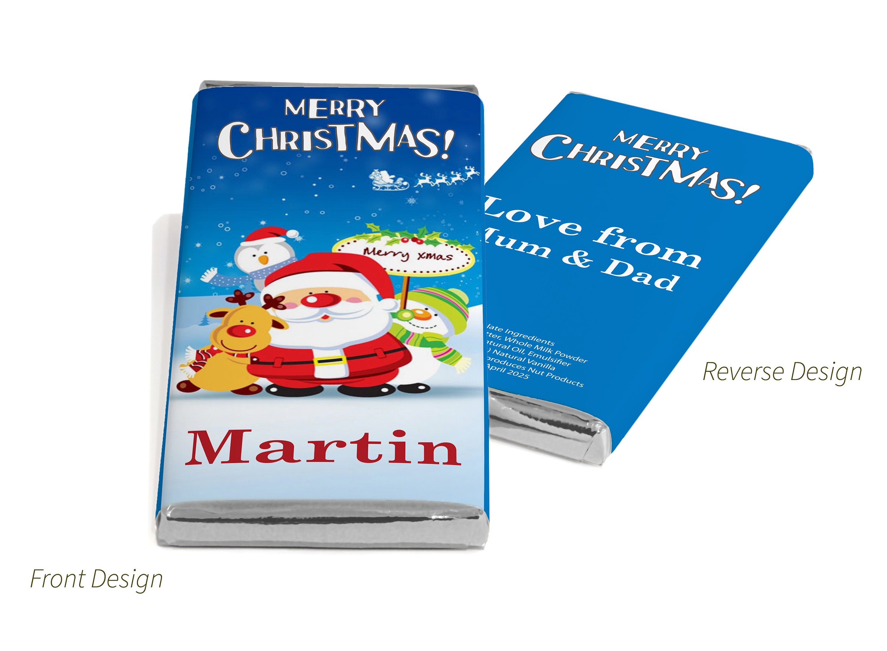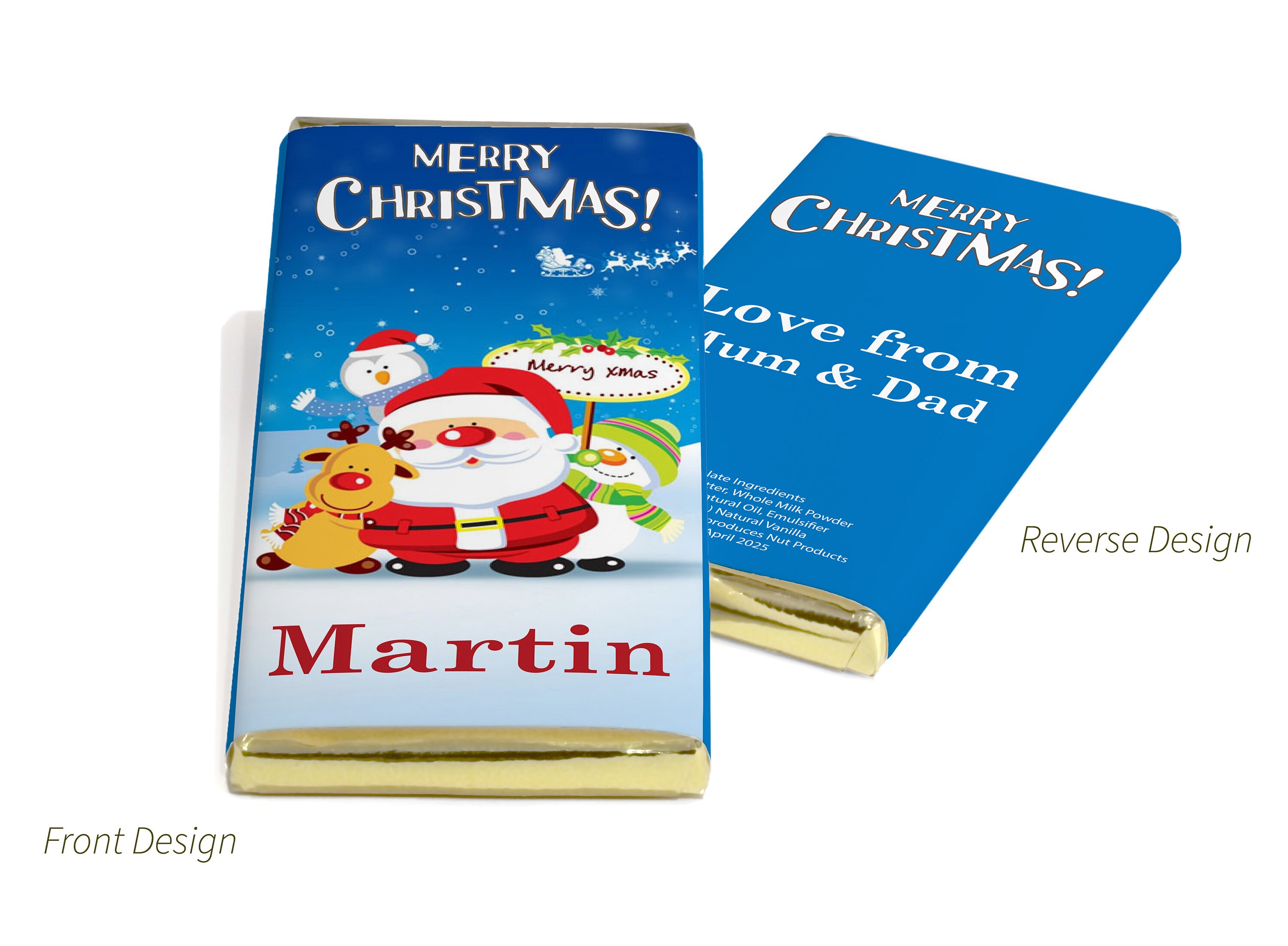 Christmas Santa Chocolate Bars - Personalised Favours - 80g Milk Chocolate Bars in Gold & Silver Foils - V6