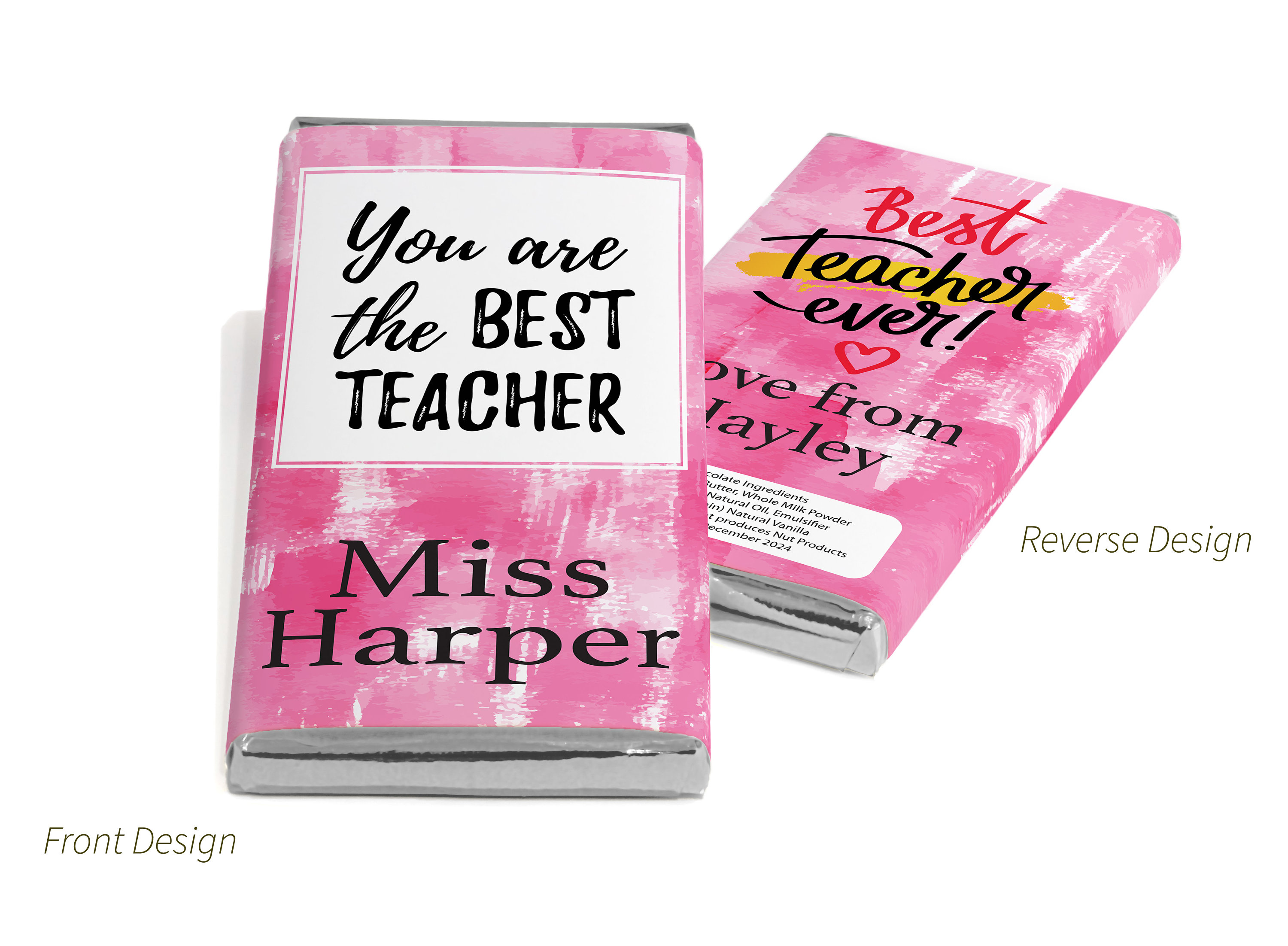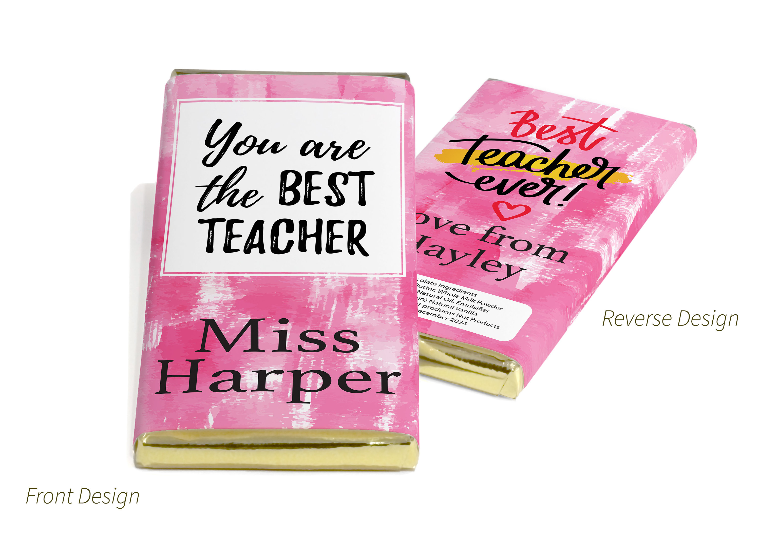 Best Teacher Chocolate Bars - Personalised Favours - 80g Milk Chocolate Bars in Gold & Silver Foils - V1
