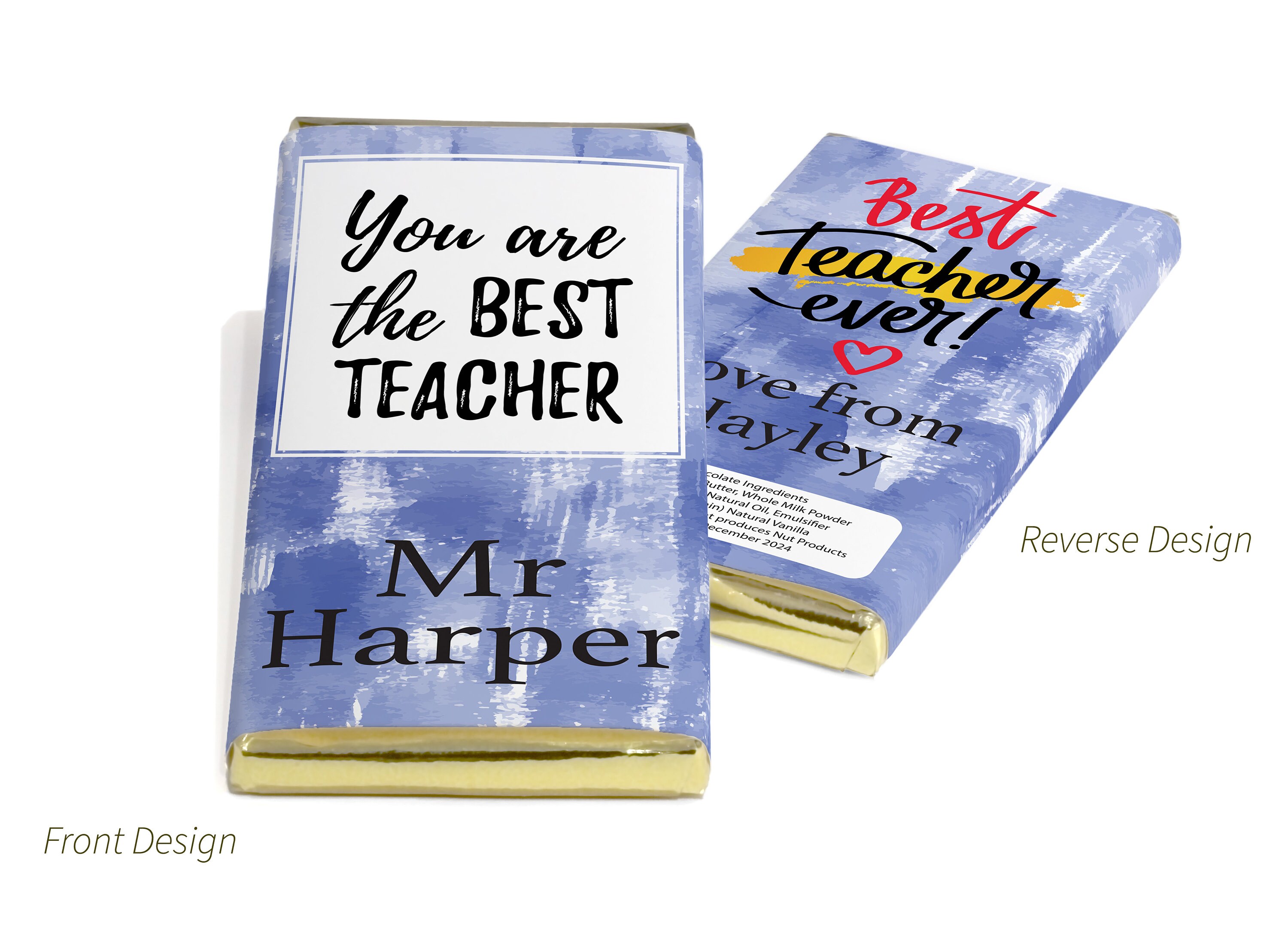 Best Teacher Chocolate Bars - Personalised Favours - 80g Milk Chocolate Bars in Gold & Silver Foils - V4
