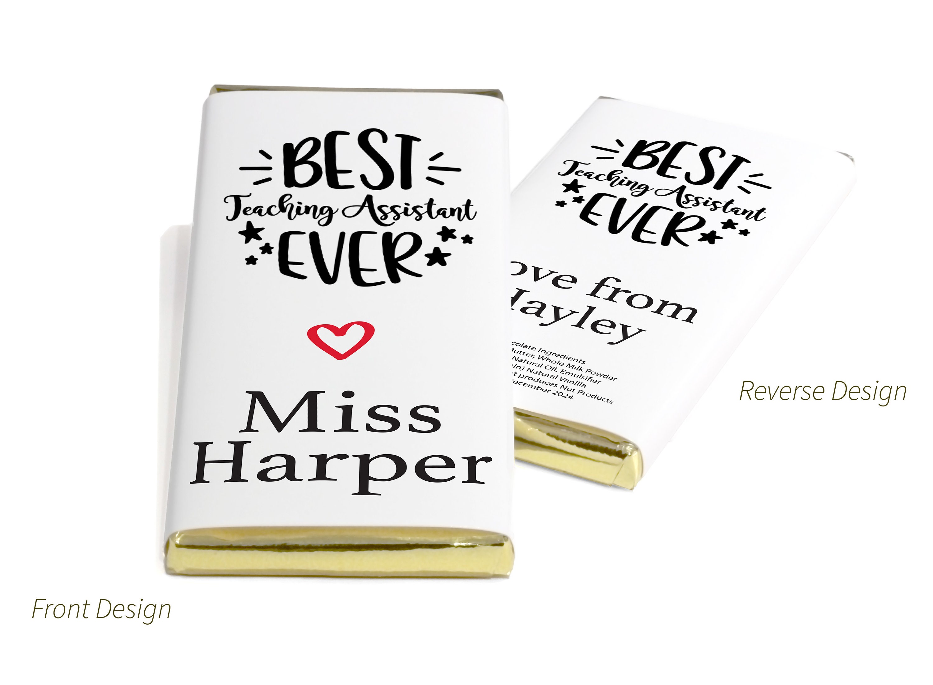 Best Teaching Assistant Chocolate Bars - Personalised Favours - 80g Milk Chocolate Bars in Gold & Silver Foils - V7