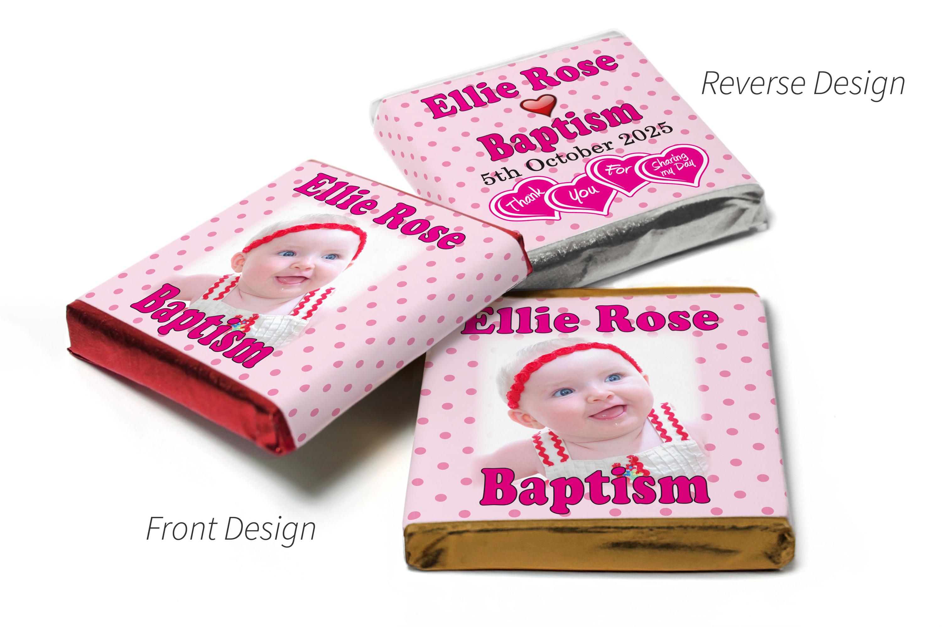 Baptism Chocolates - Personalised Favours - Neapolitan Chocolates - Spotty Pink - V1