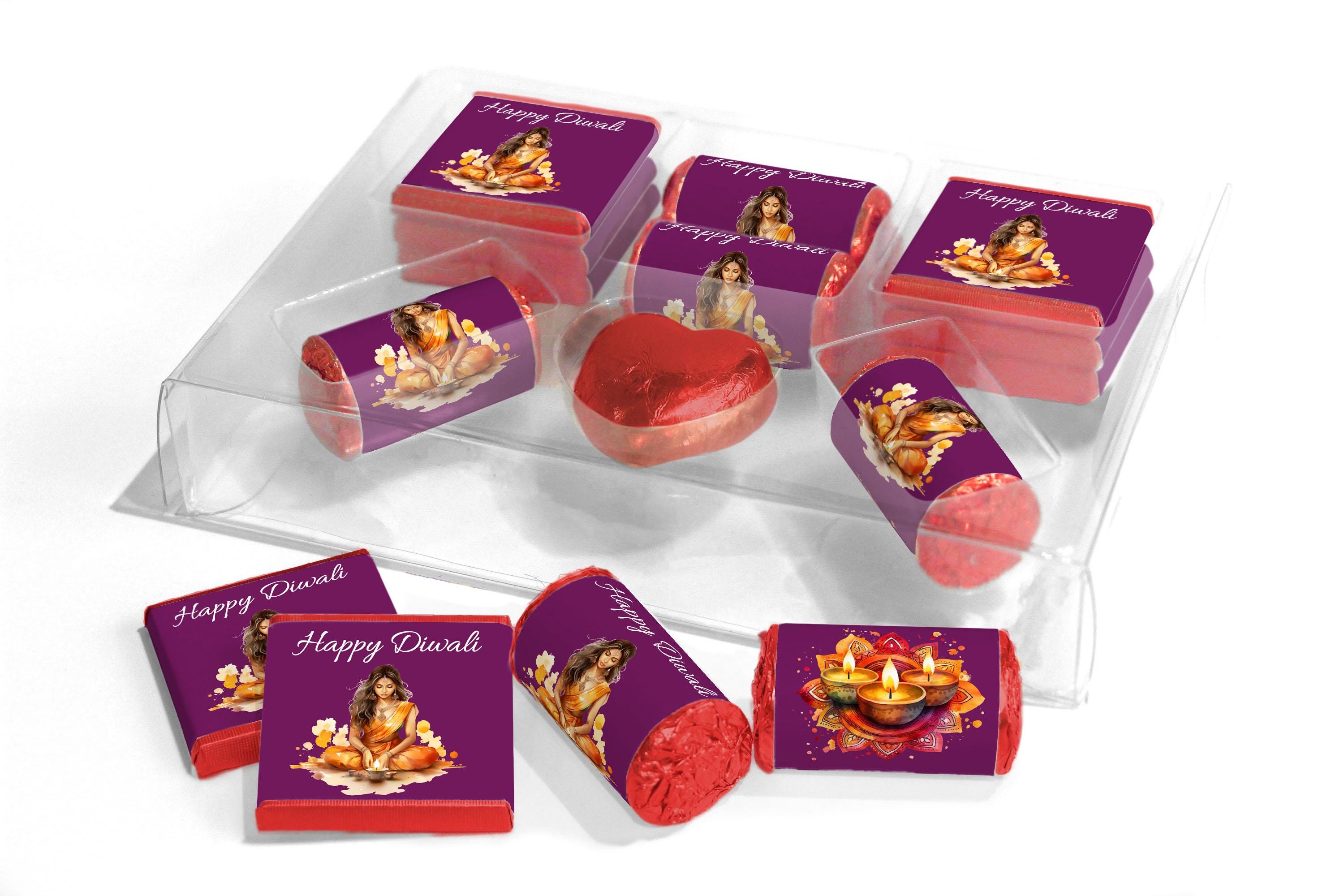 Diwali Large Combo Box - Personalised Favours - Neapolitan Chocolates/Heart/Love Heart Sweets - V1