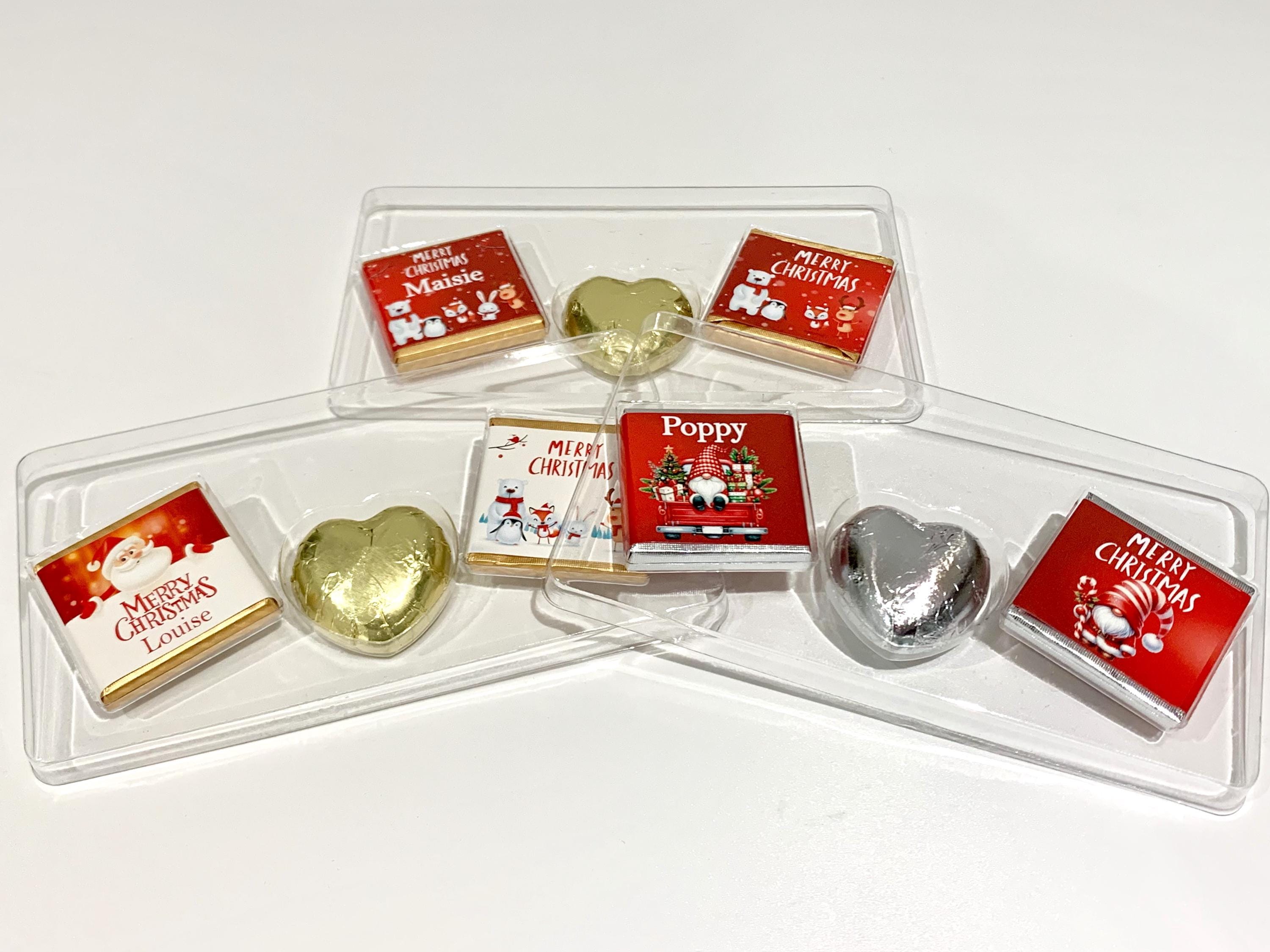 3 x Christmas Boxes - Personalised Xmas - Neapolitan Chocolates x 2 & Heart - 3 for a fiver