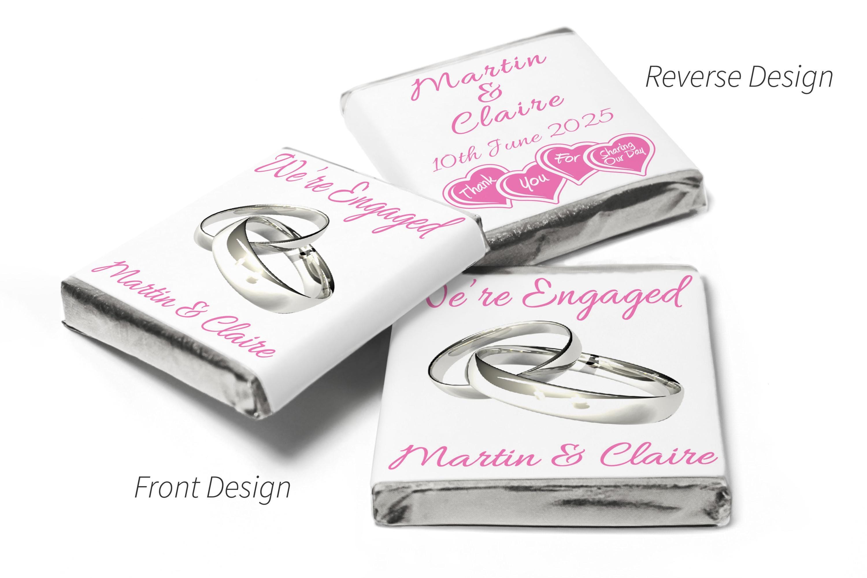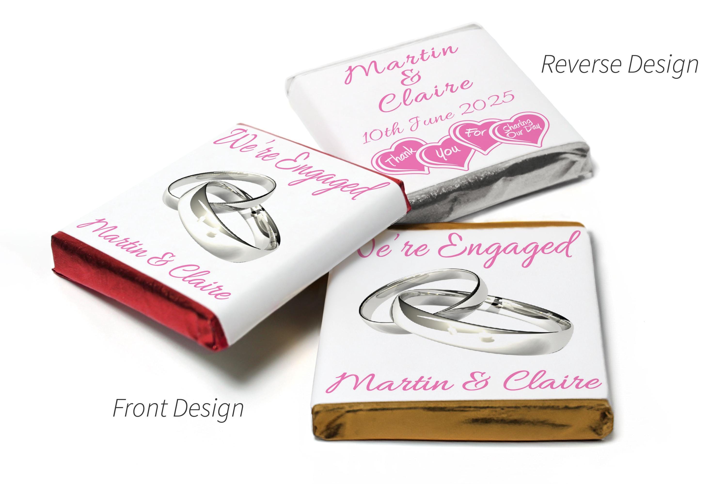 Engaged chocolates - personalised favours - neapolitan chocolates - v2 silver rings