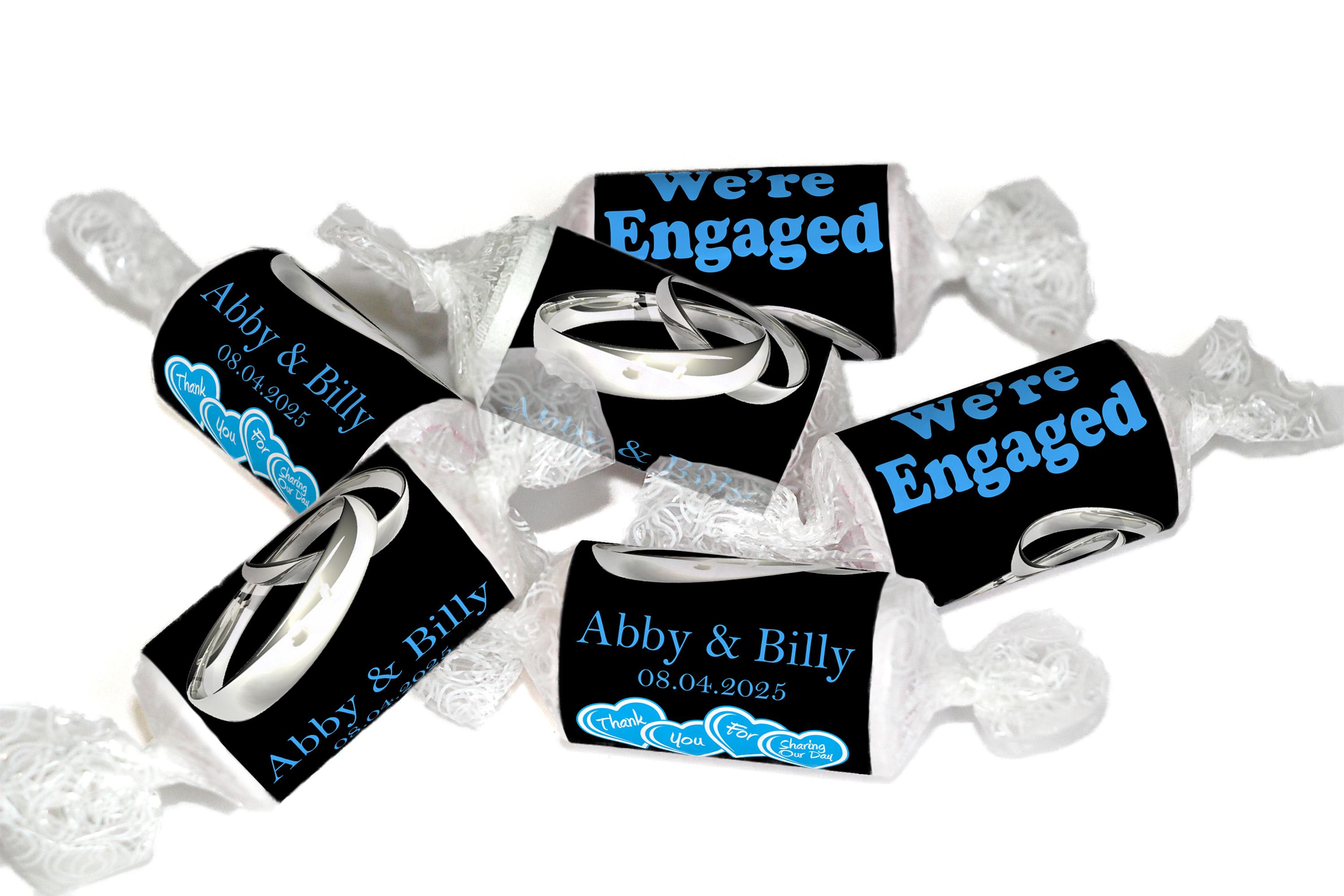 Engaged Sweets - Personalised Love Heart Favors, Blue - Silver Rings