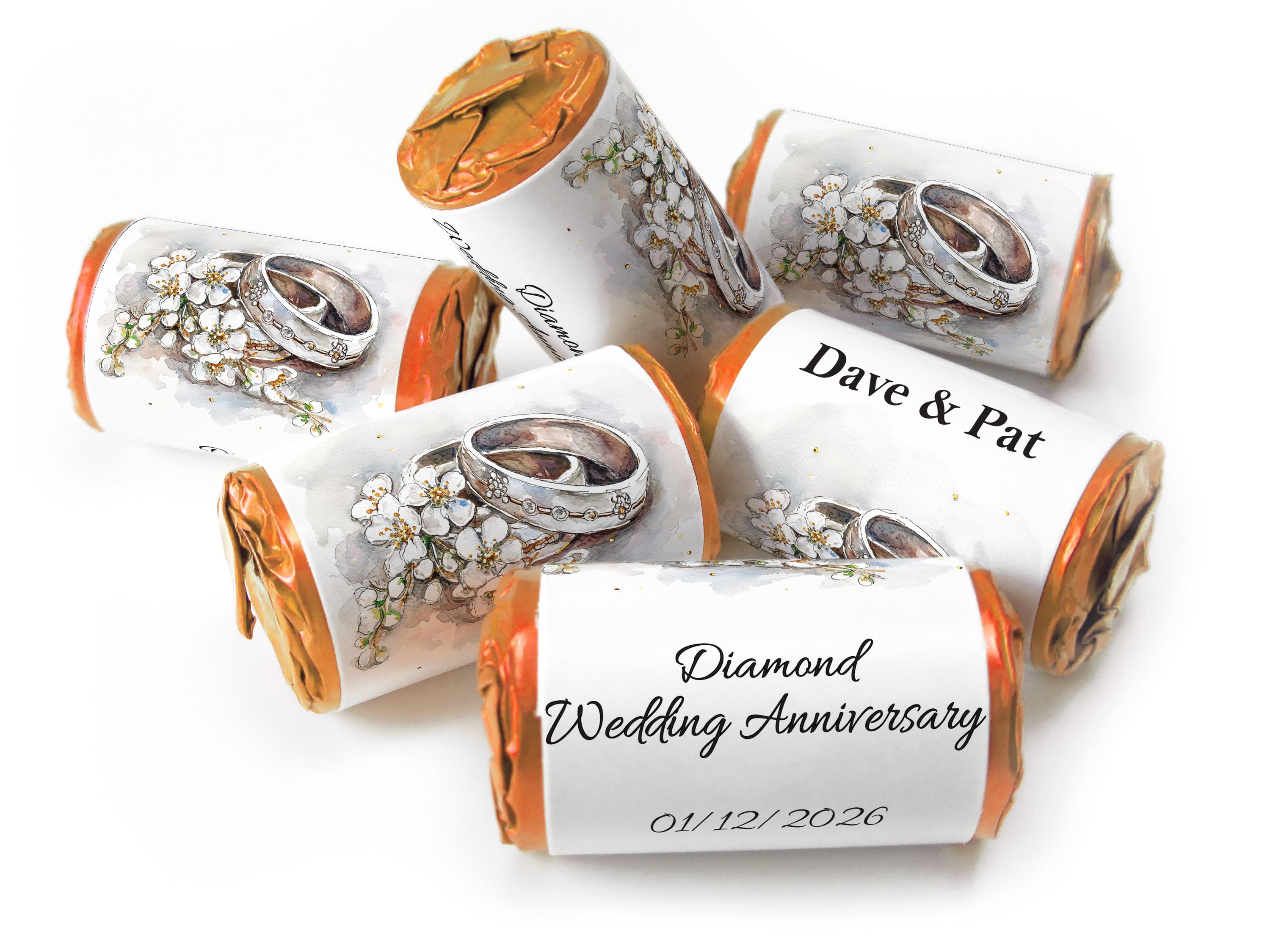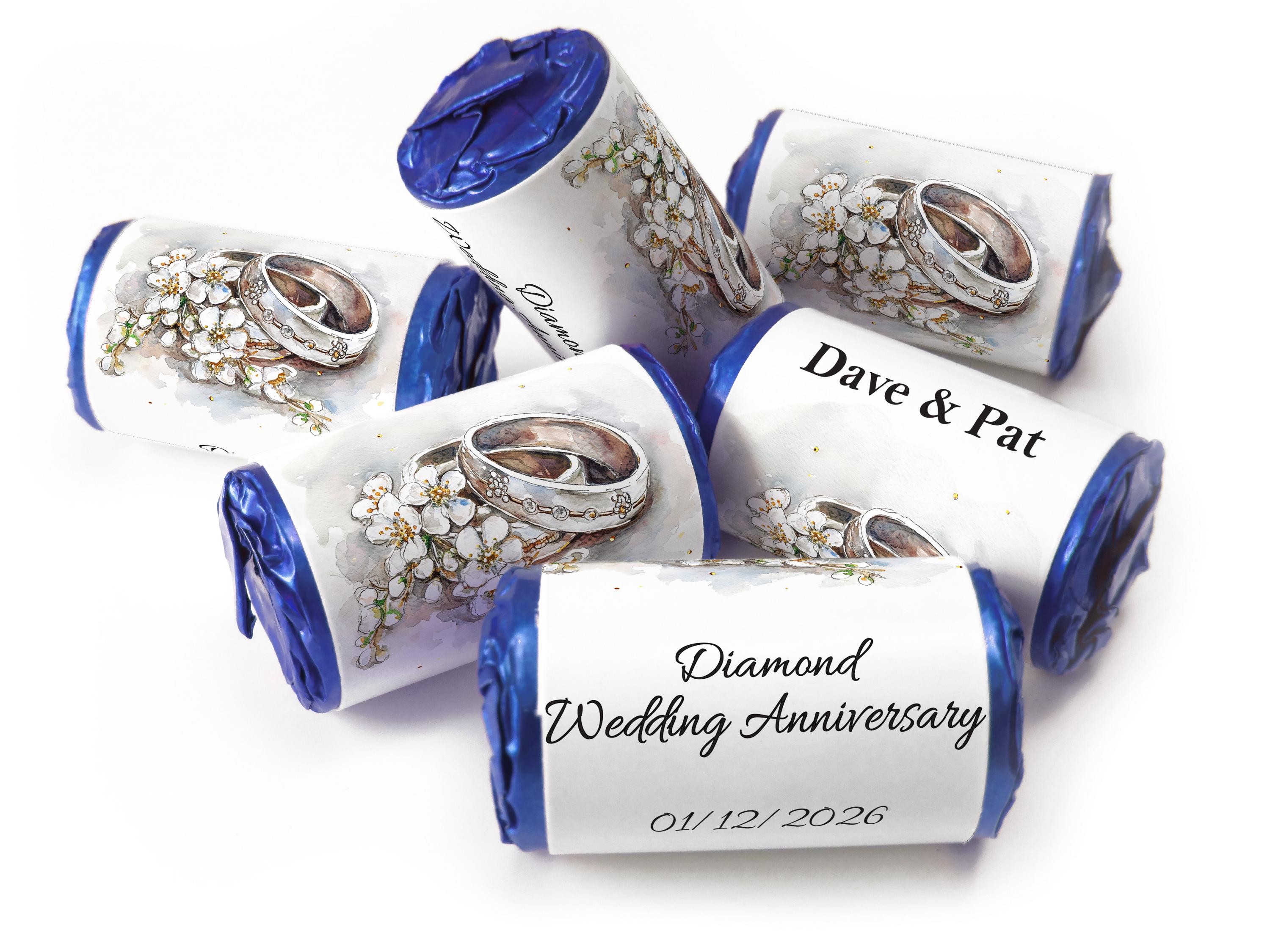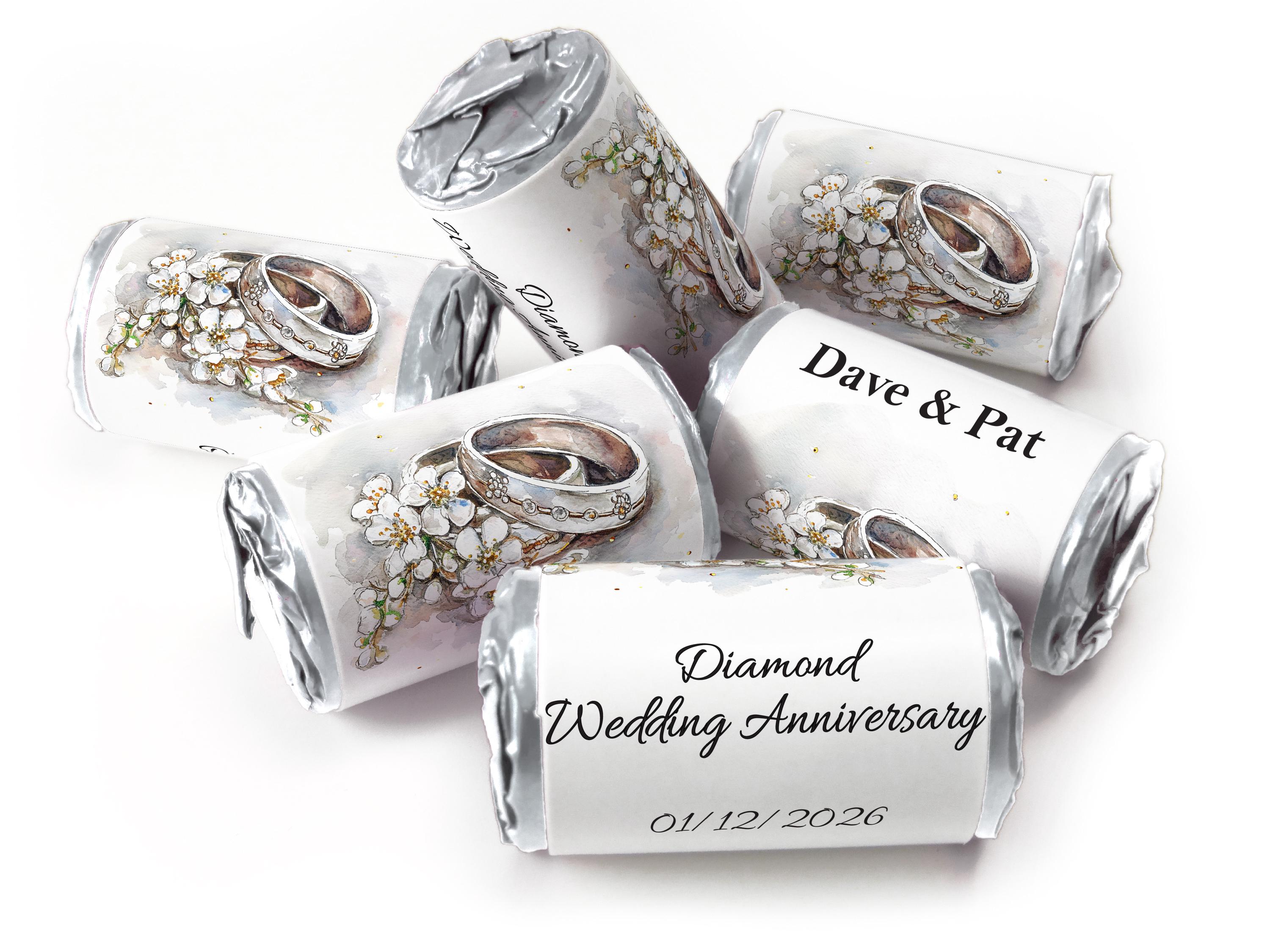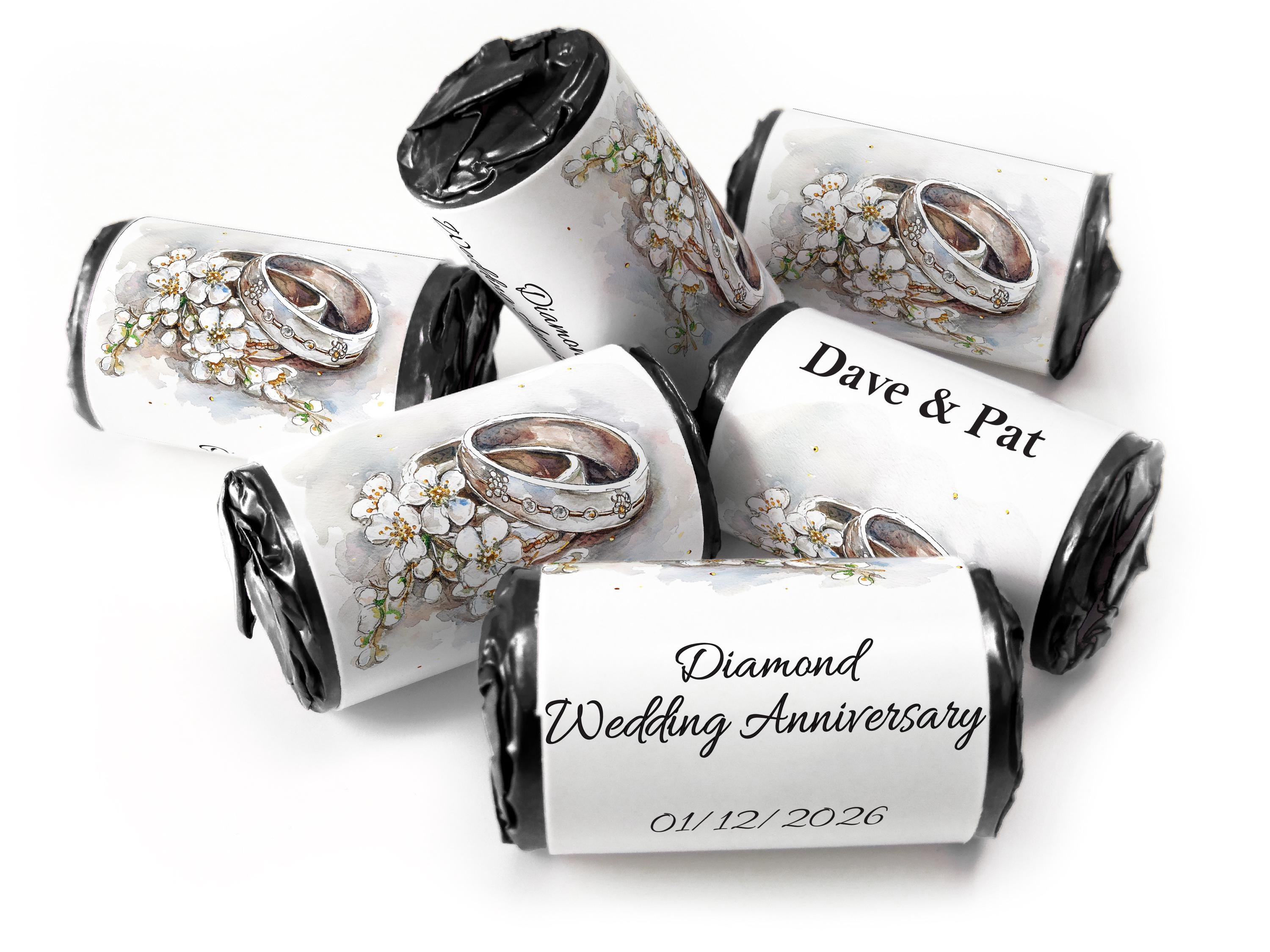 Diamond Wedding Anniversary Favours - Love Heart Sweets with Inner Foil choices - V4