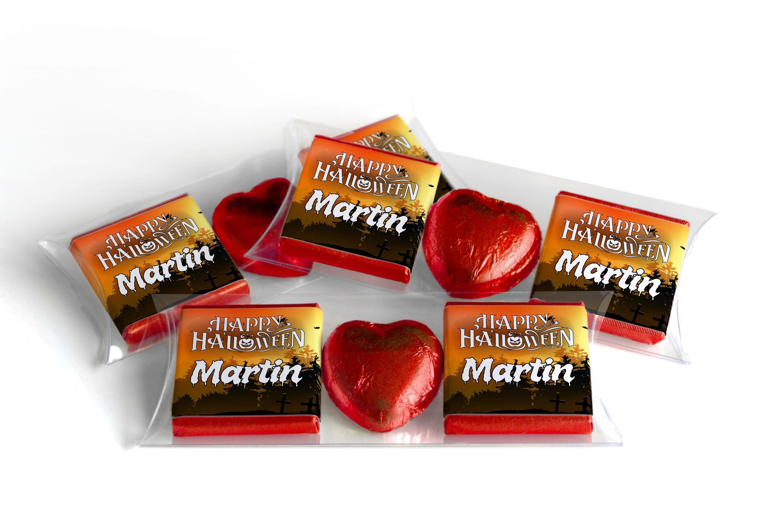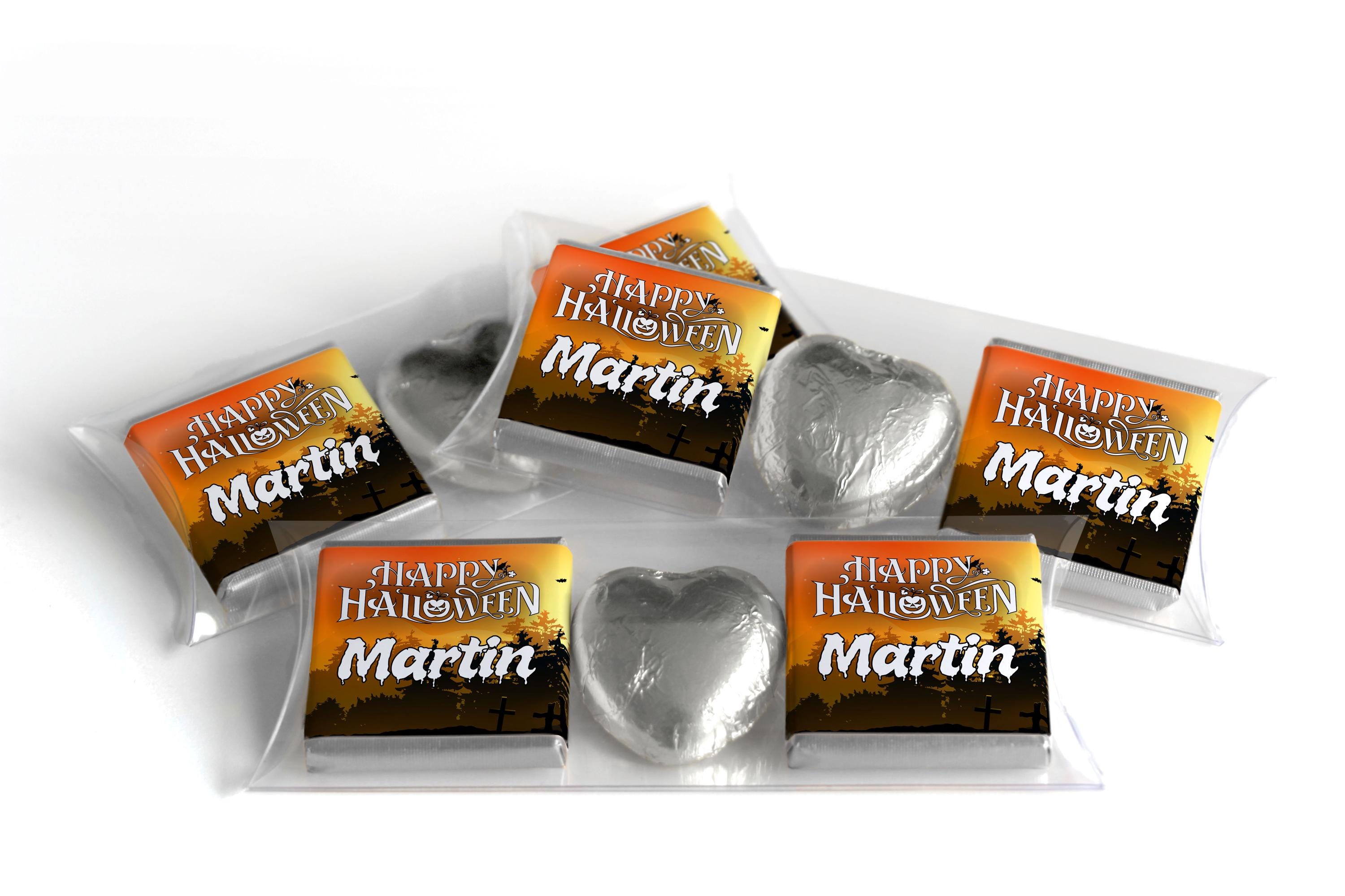 Halloween Chocolate Trio - Personalised Favours - Neapolitan Chocolates & Chocolate Heart - V11