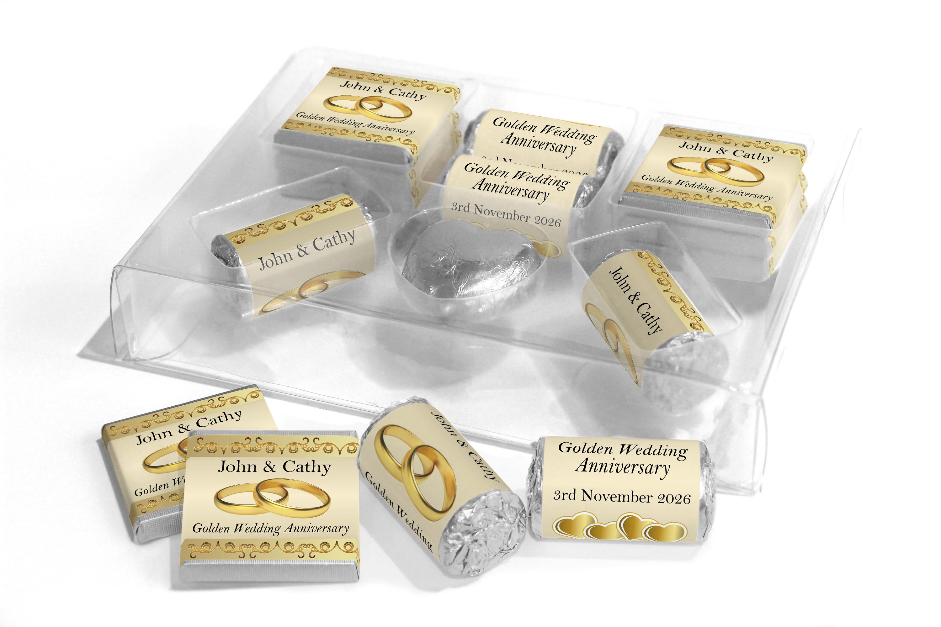Golden Wedding Anniversary Large Combo Box - Personalised Favours - Neapolitan Chocolates/Heart/Love Hearts - V2