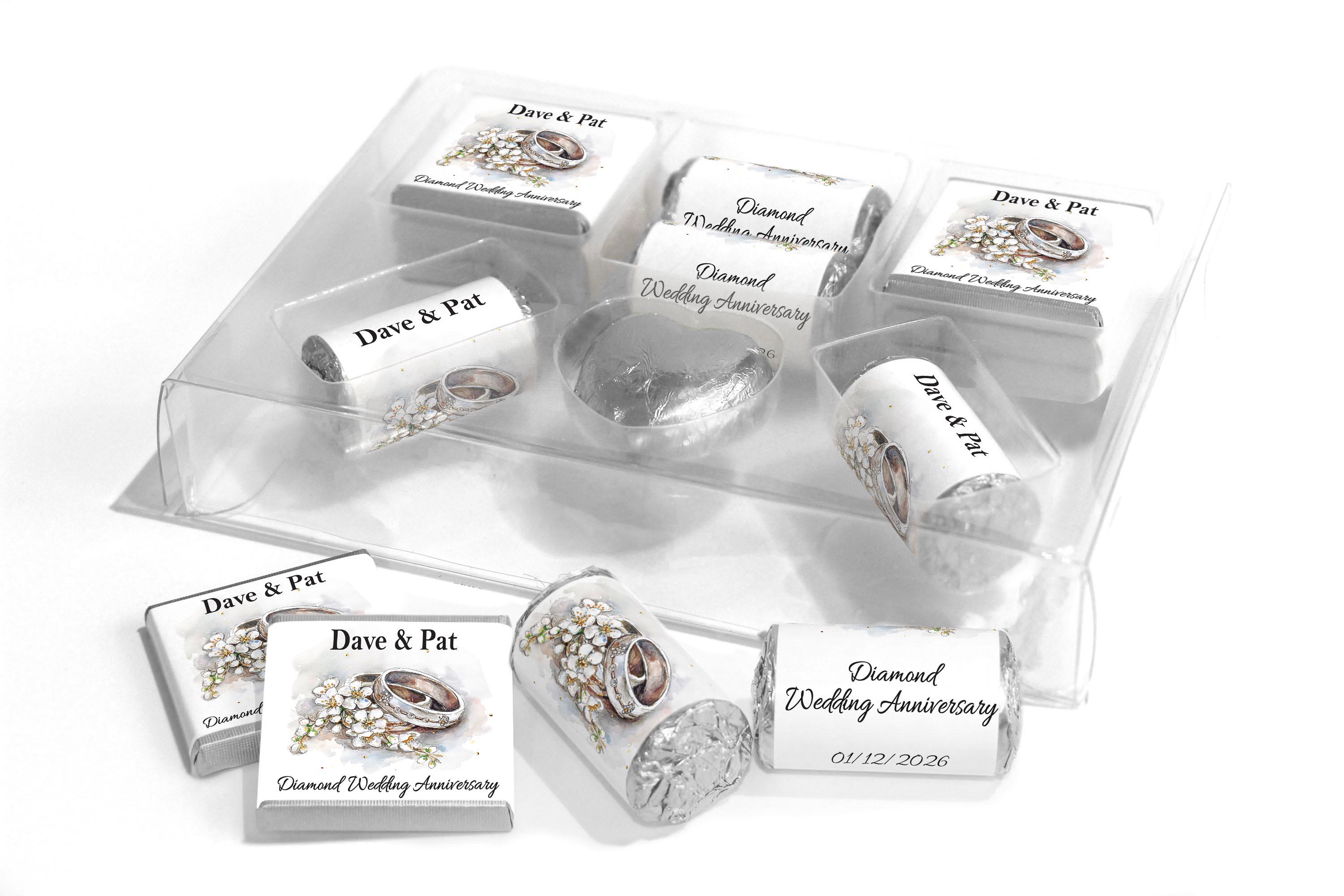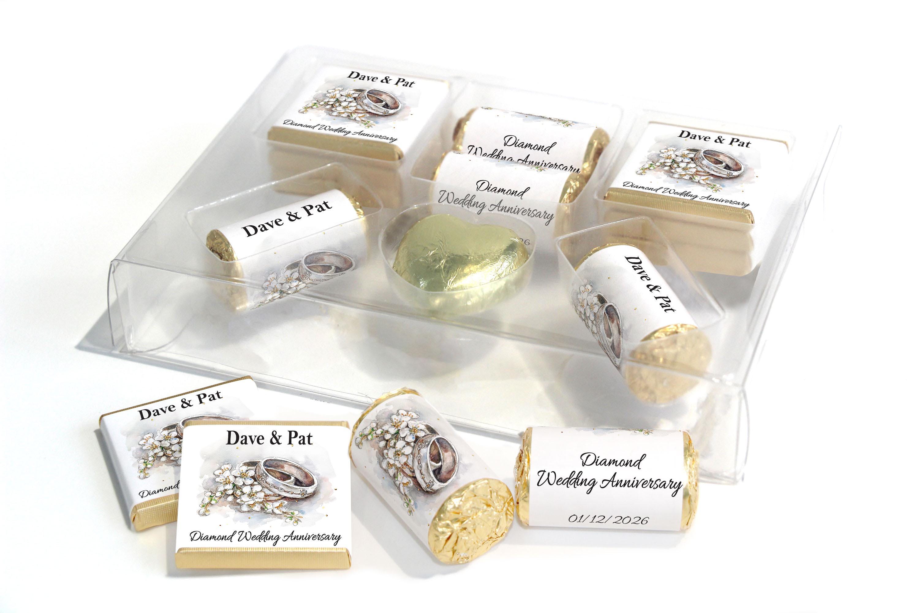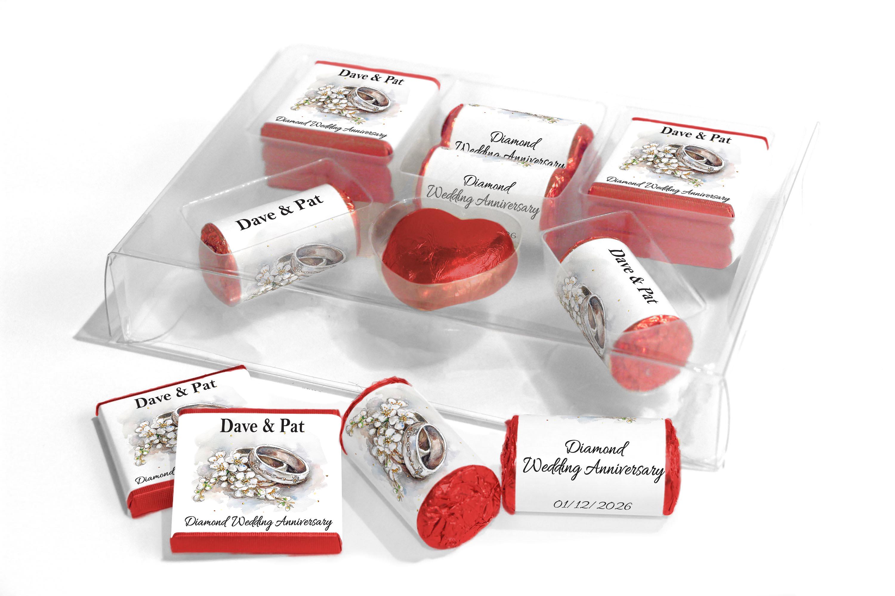 Diamond Wedding Anniversary Large Combo Box - Personalised Favours - Neapolitan Chocolates/Heart/Love Hearts - V4
