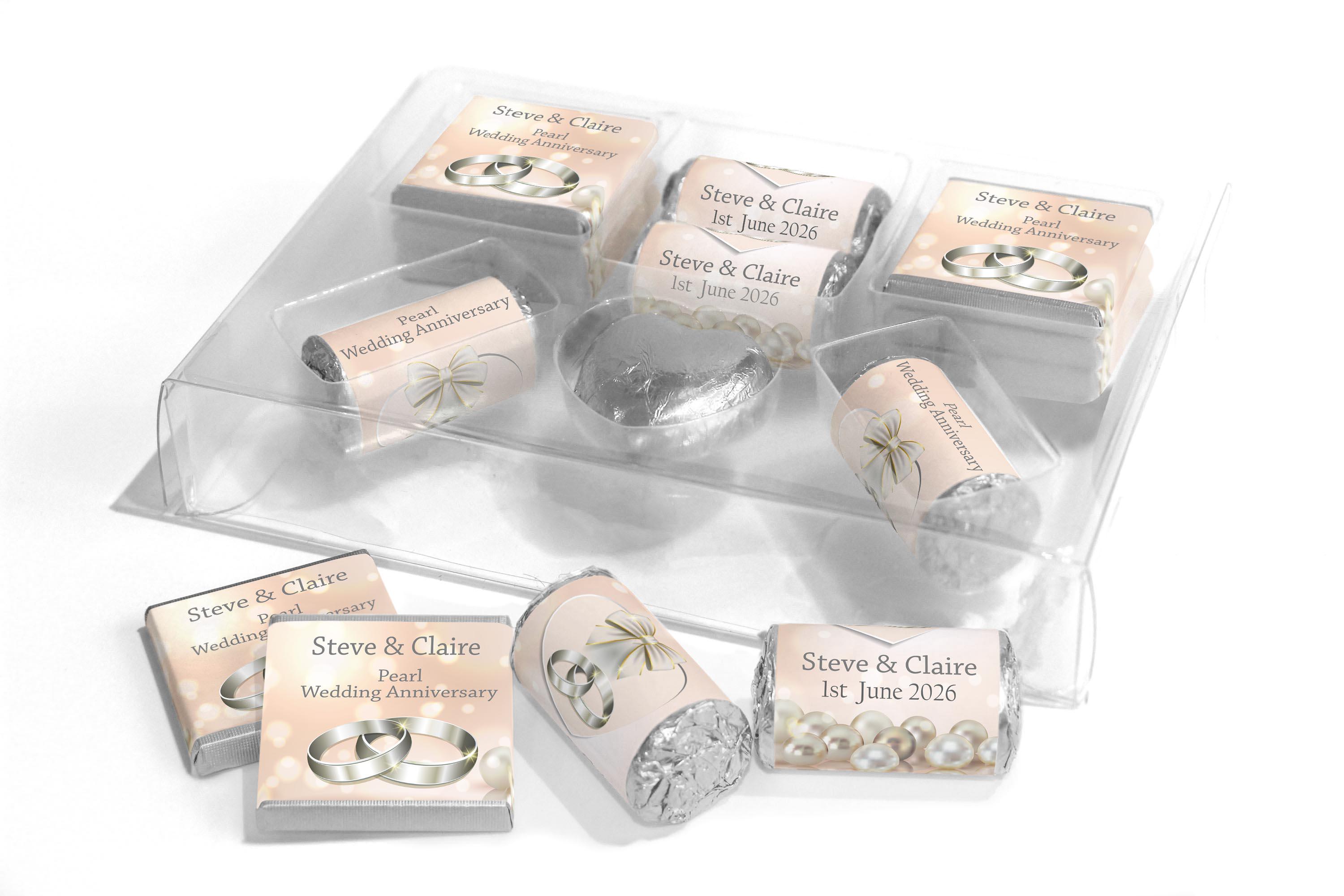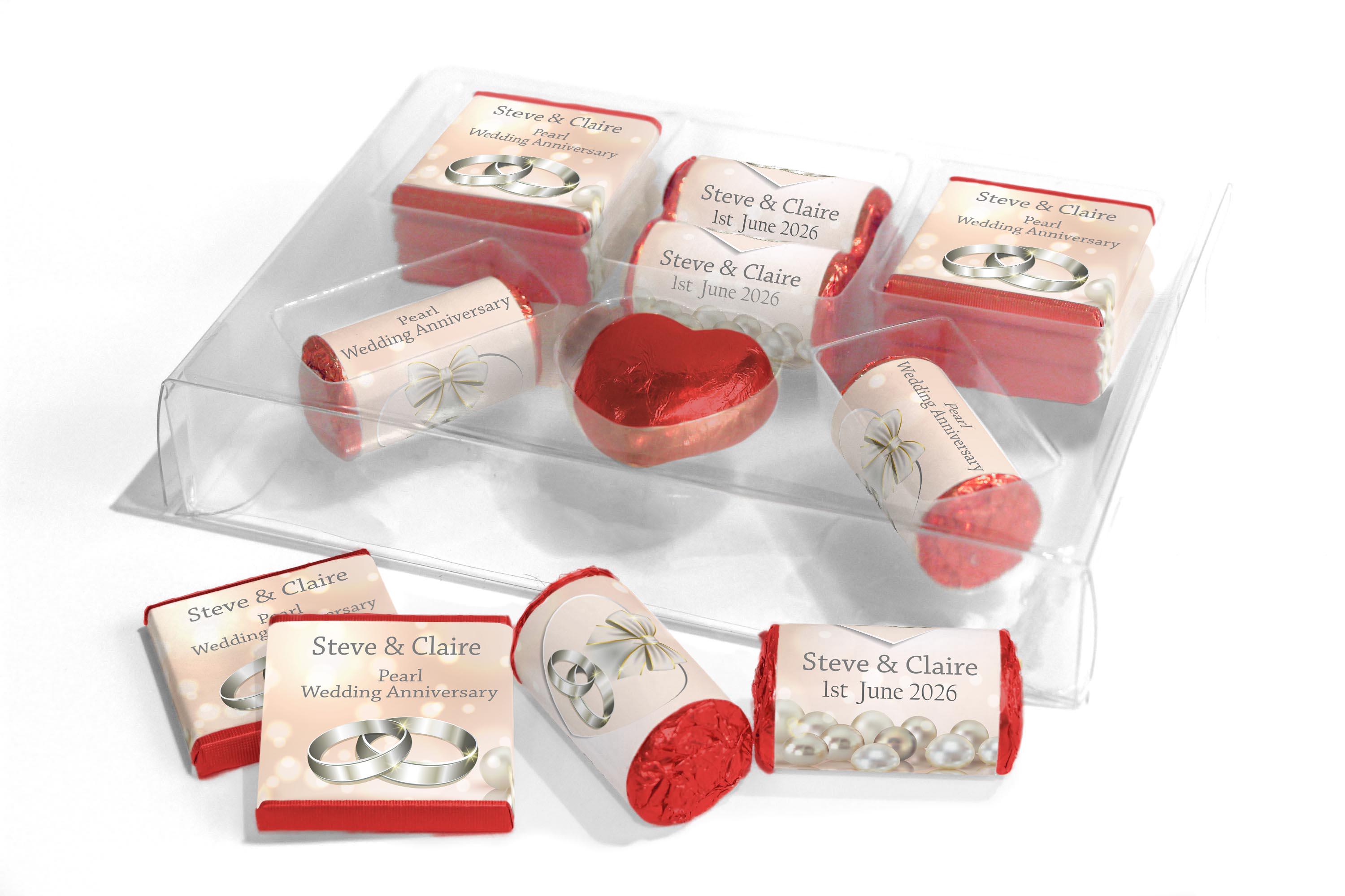 Pearl Wedding Anniversary Large Combo Box - Personalised Favours - Neapolitan Chocolates/Heart/Love Hearts - V1