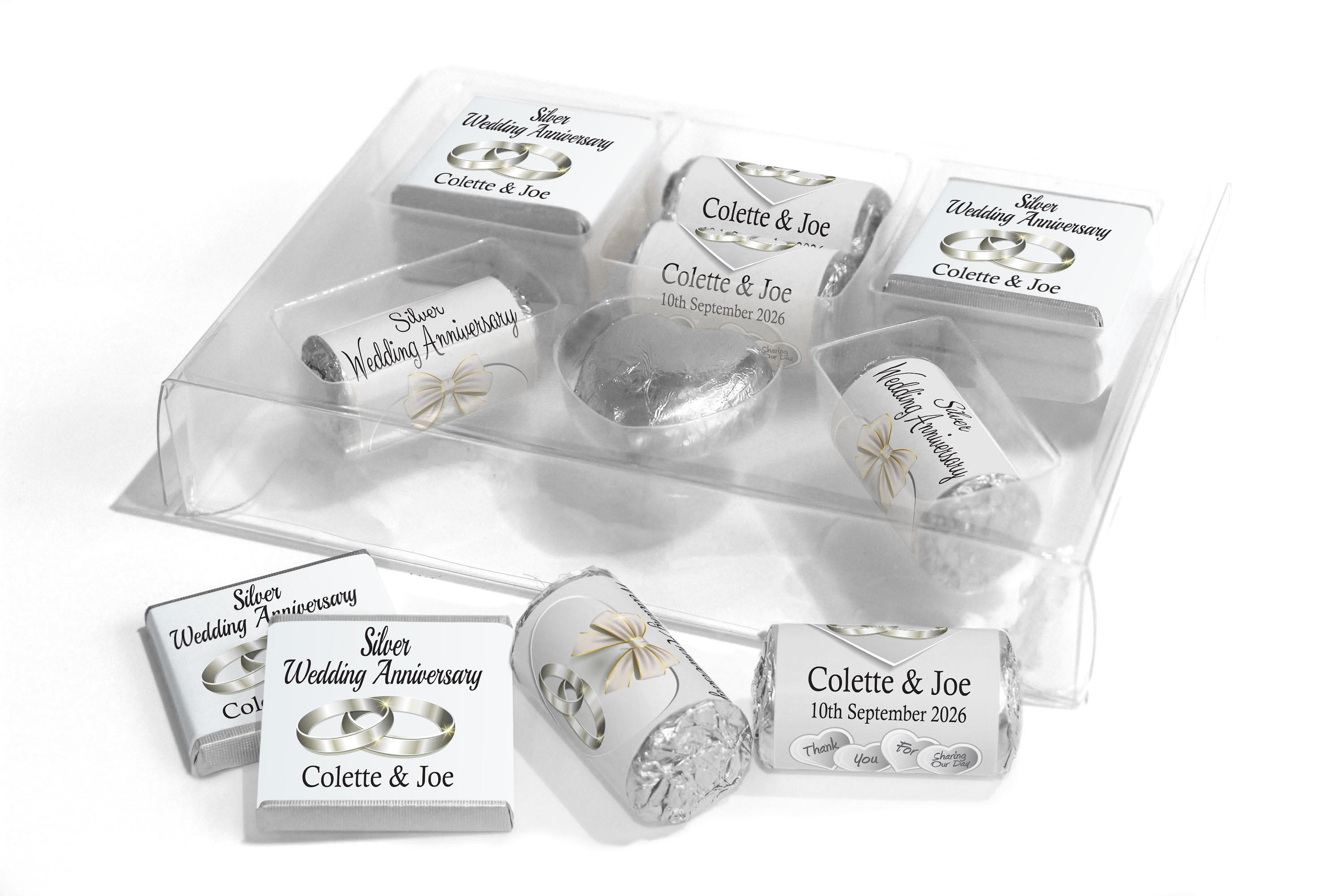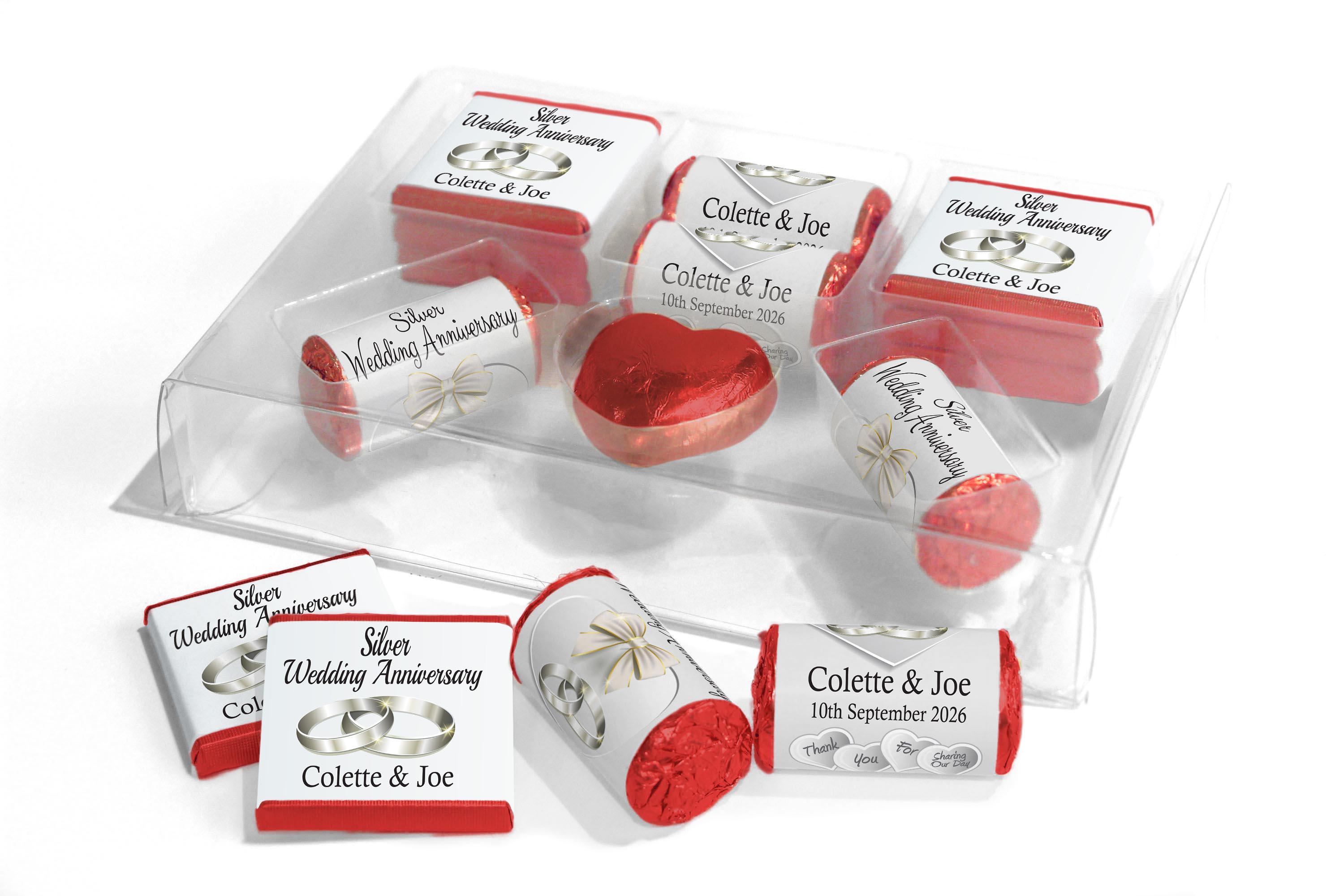 Silver Wedding Anniversary Large Combo Box - Personalised Favours - Neapolitan Chocolates/Heart/Love Hearts - V1