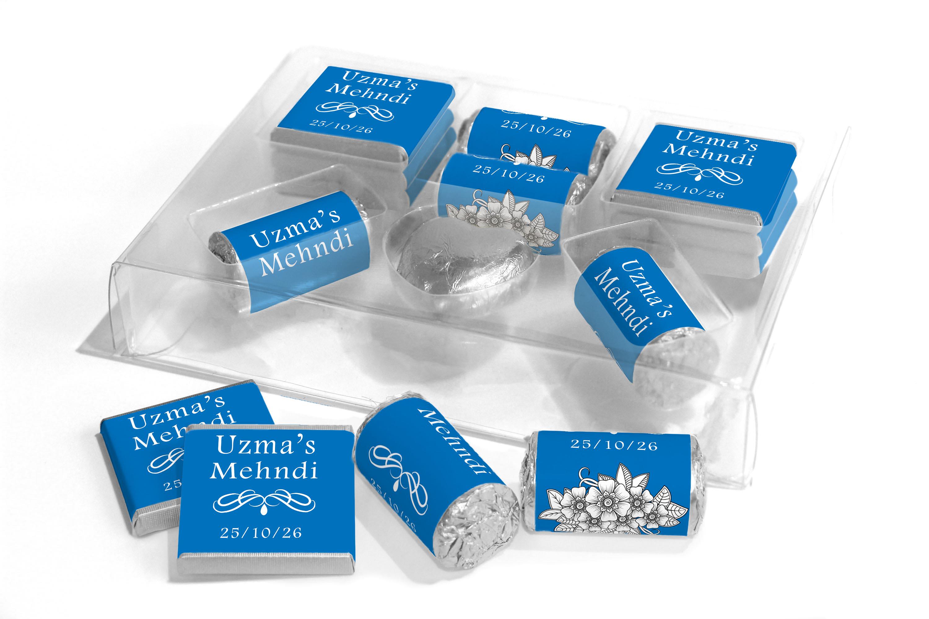 Mehndi Combo Box - Personalised Favours - Neapolitan Chocolates/Heart/Love Heart Sweets - Blue V1