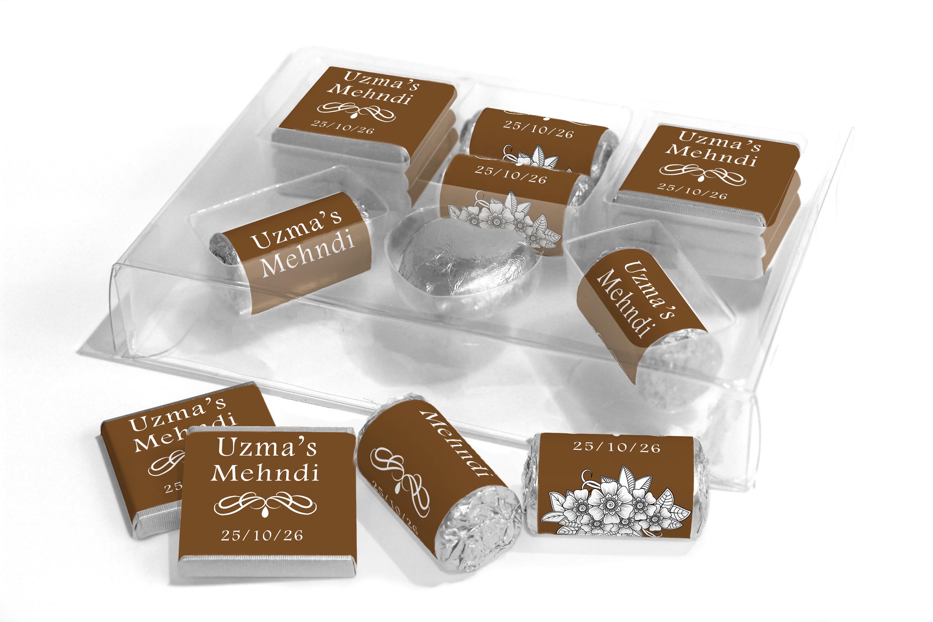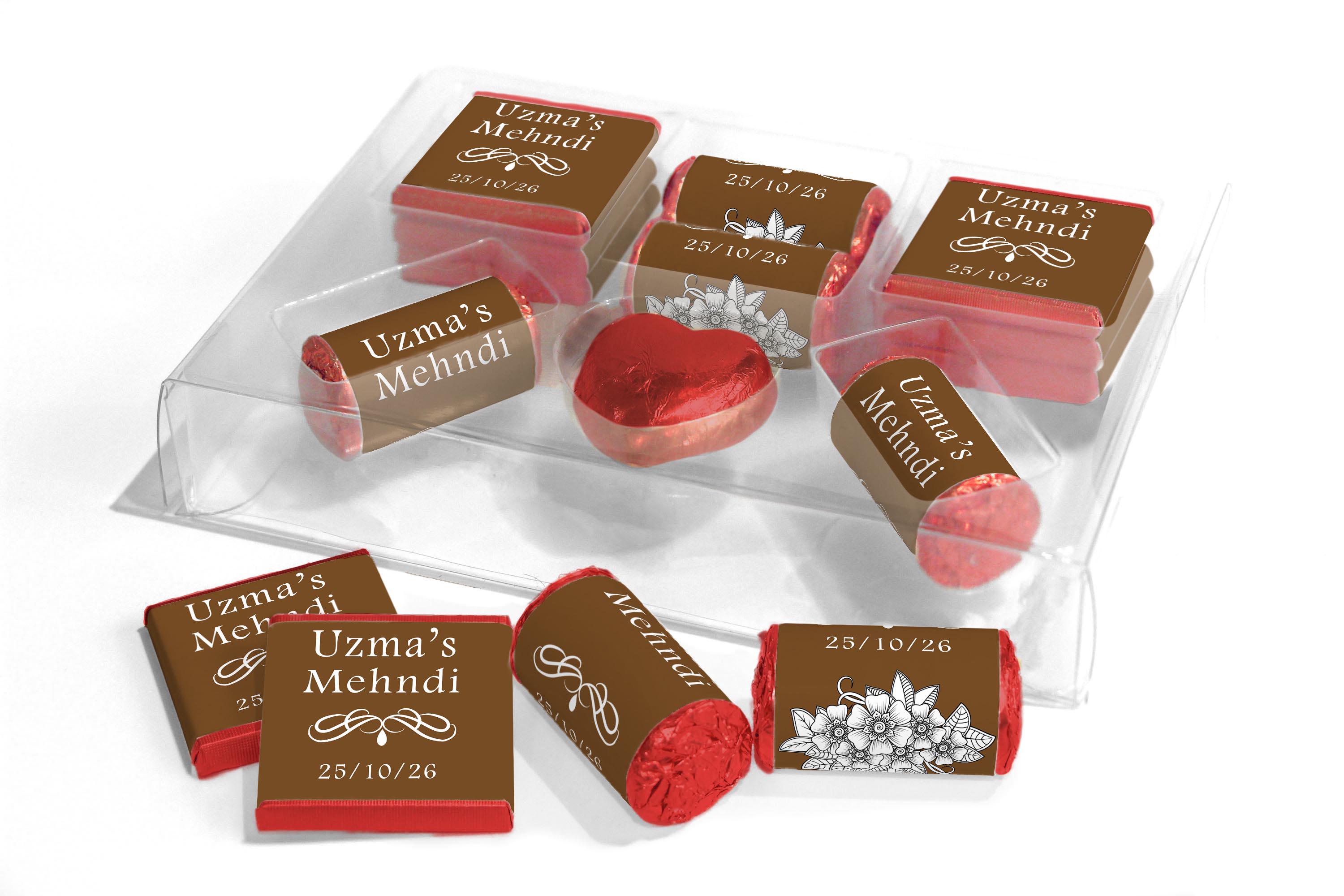 Mehndi Combo Box - Personalised Favours - Neapolitan Chocolates/Heart/Love Heart Sweets - Brown V1