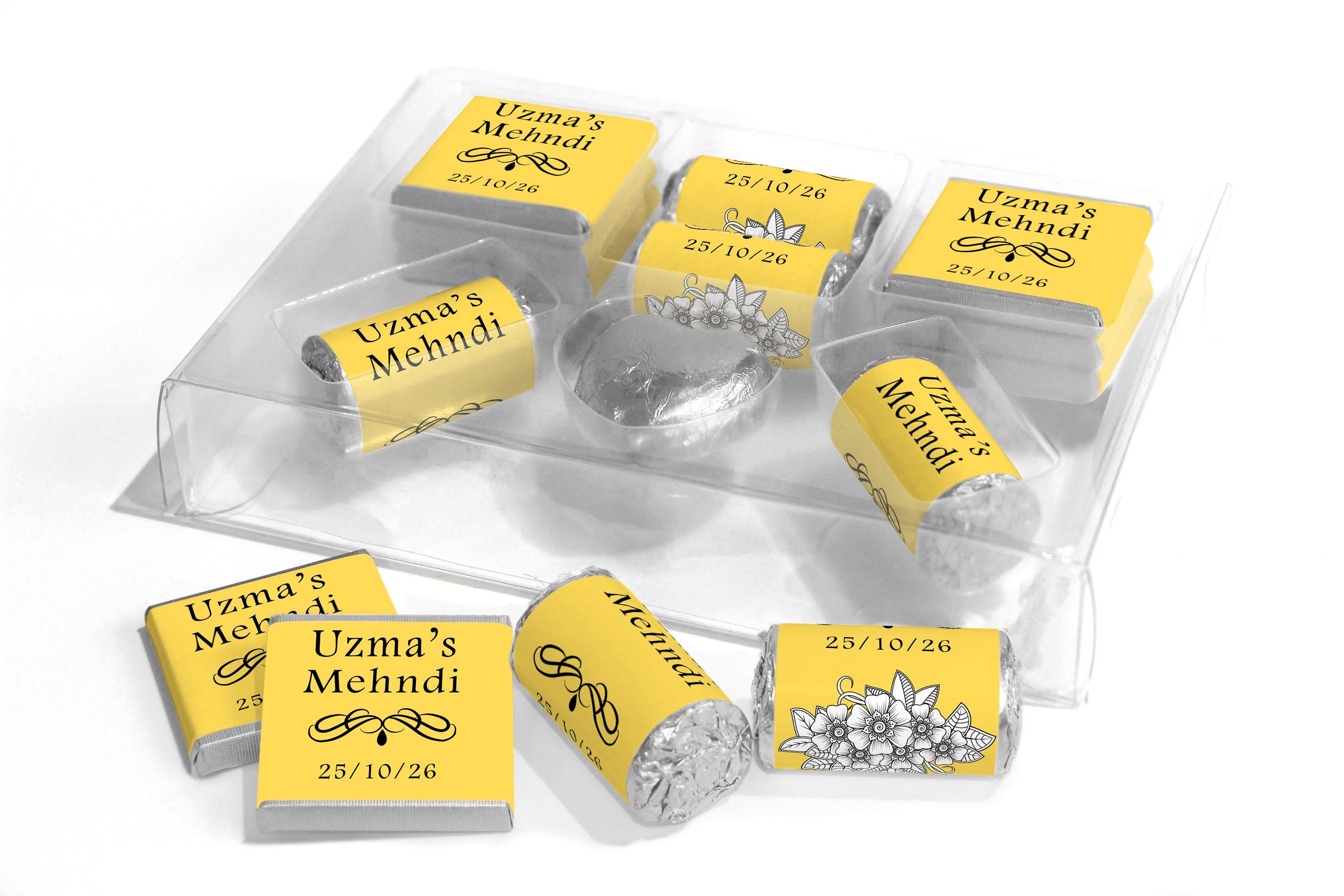 Mehndi Combo Box - Personalised Favours - Neapolitan Chocolates/Heart/Love Heart Sweets - Yellow V1