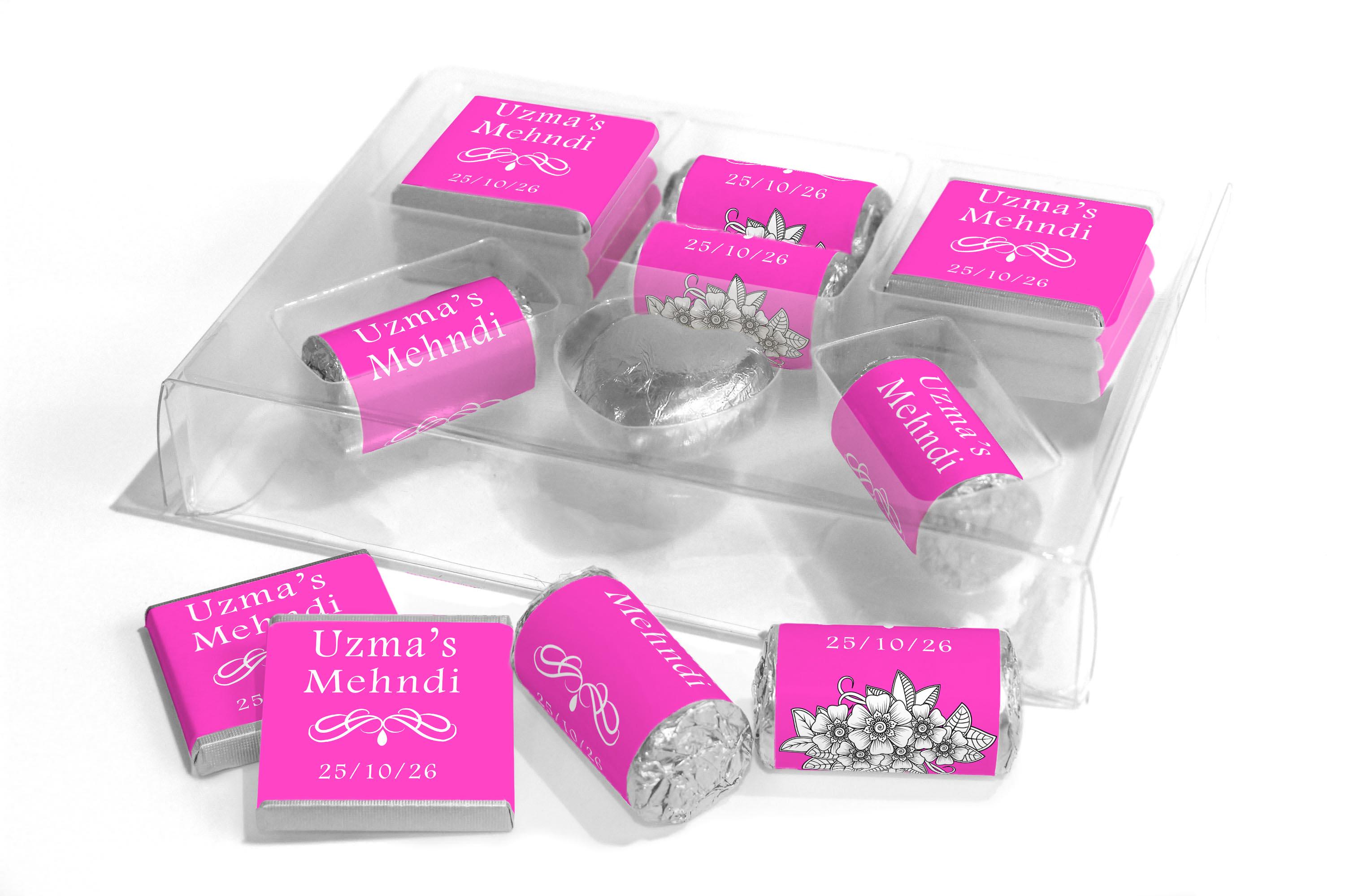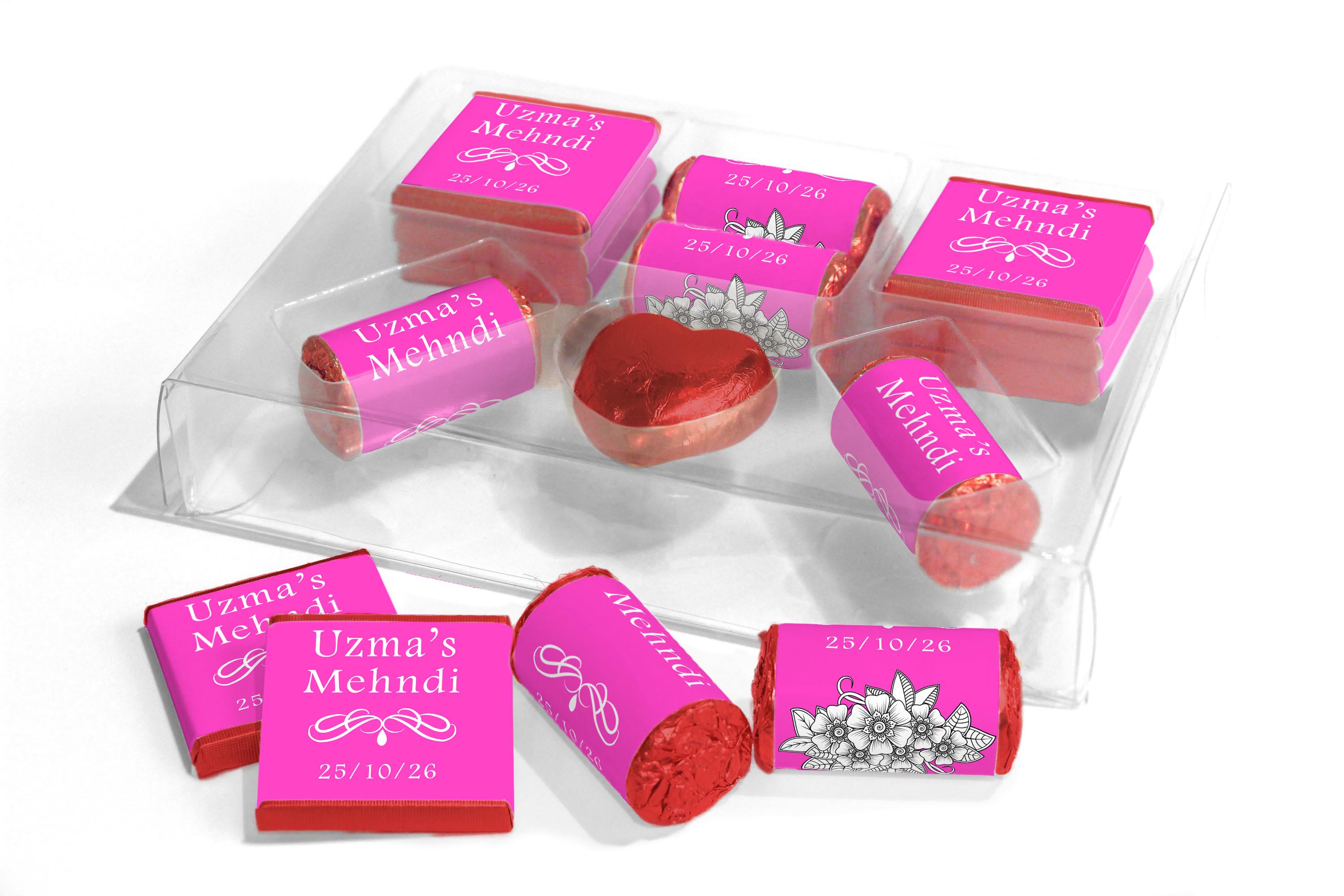 Mehndi Combo Box - Personalised Favours - Neapolitan Chocolates/Heart/Love Heart Sweets - Pink V1