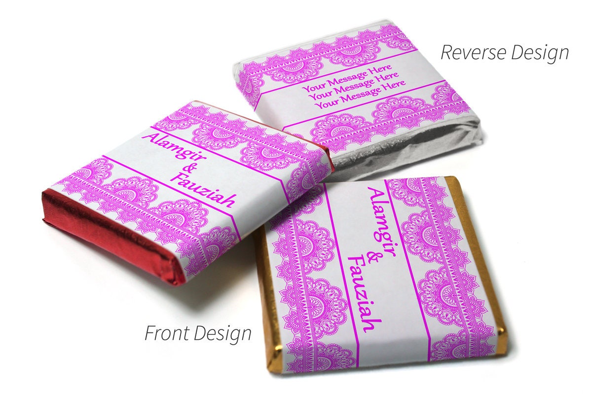 Mehndi / Wedding Chocolates - Personalised Favours - Neapolitan Chocolates - Dark Pink Border