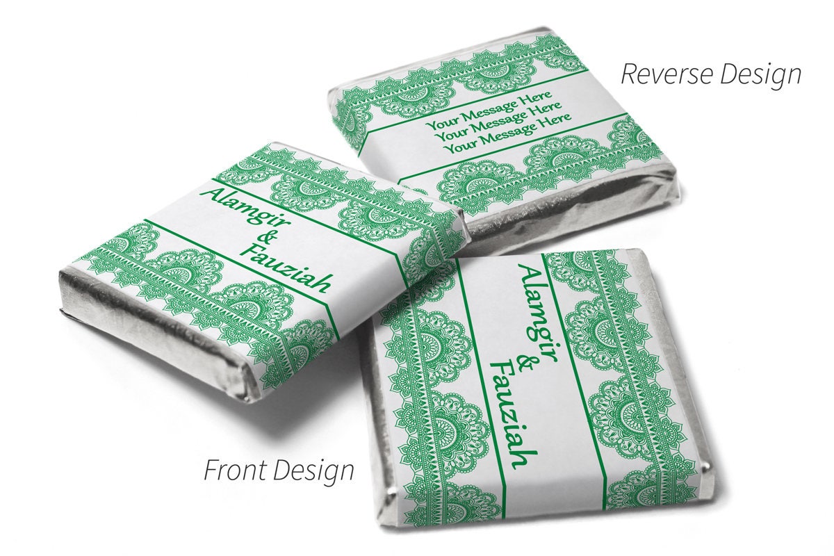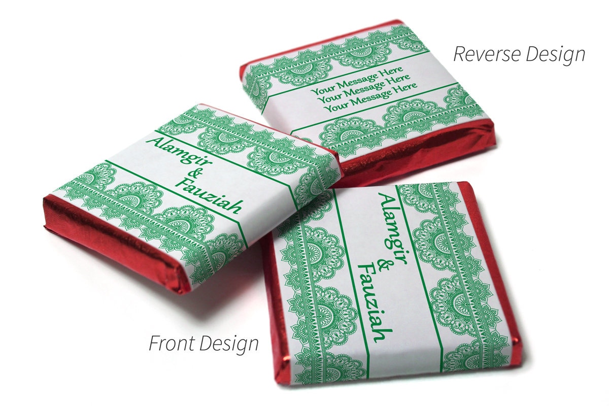 Mehndi / Wedding Chocolates - Personalised Favours - Neapolitan Chocolates - Green Border