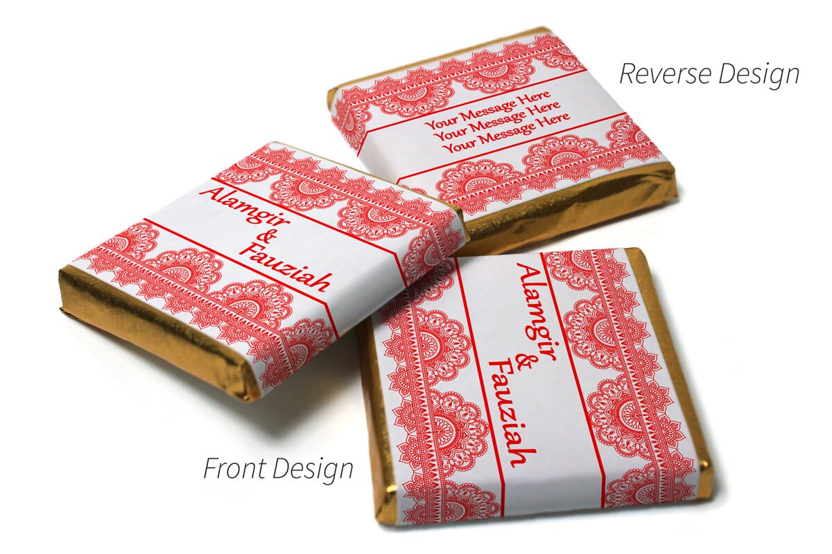 Mehndi Wedding Chocolates Favors, Personalized Neapolitan Chocolates, Mehndi Party Favors, Custom Wedding Gifts, Purple Border Red Border