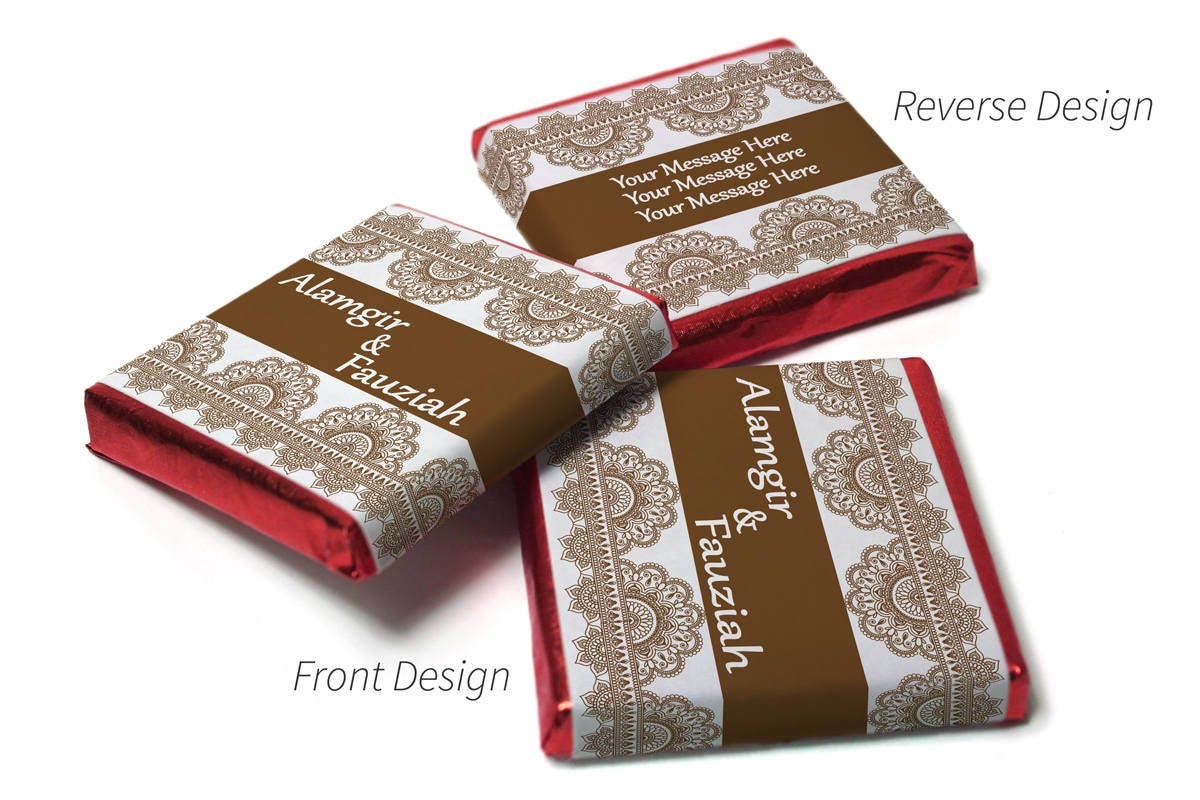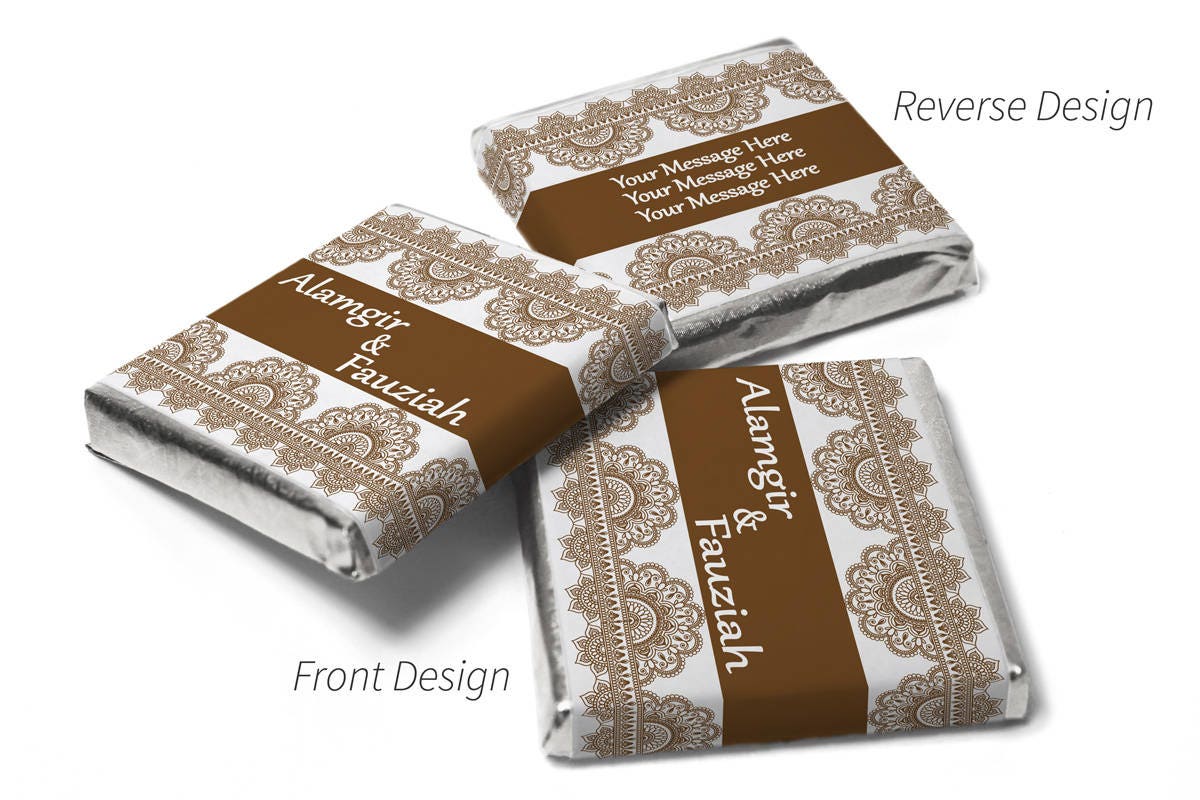 Mehndi Wedding Chocolates Favors, Personalized Neapolitan Chocolates, Mehndi Party Favors, Custom Wedding Gifts, Brown Banner