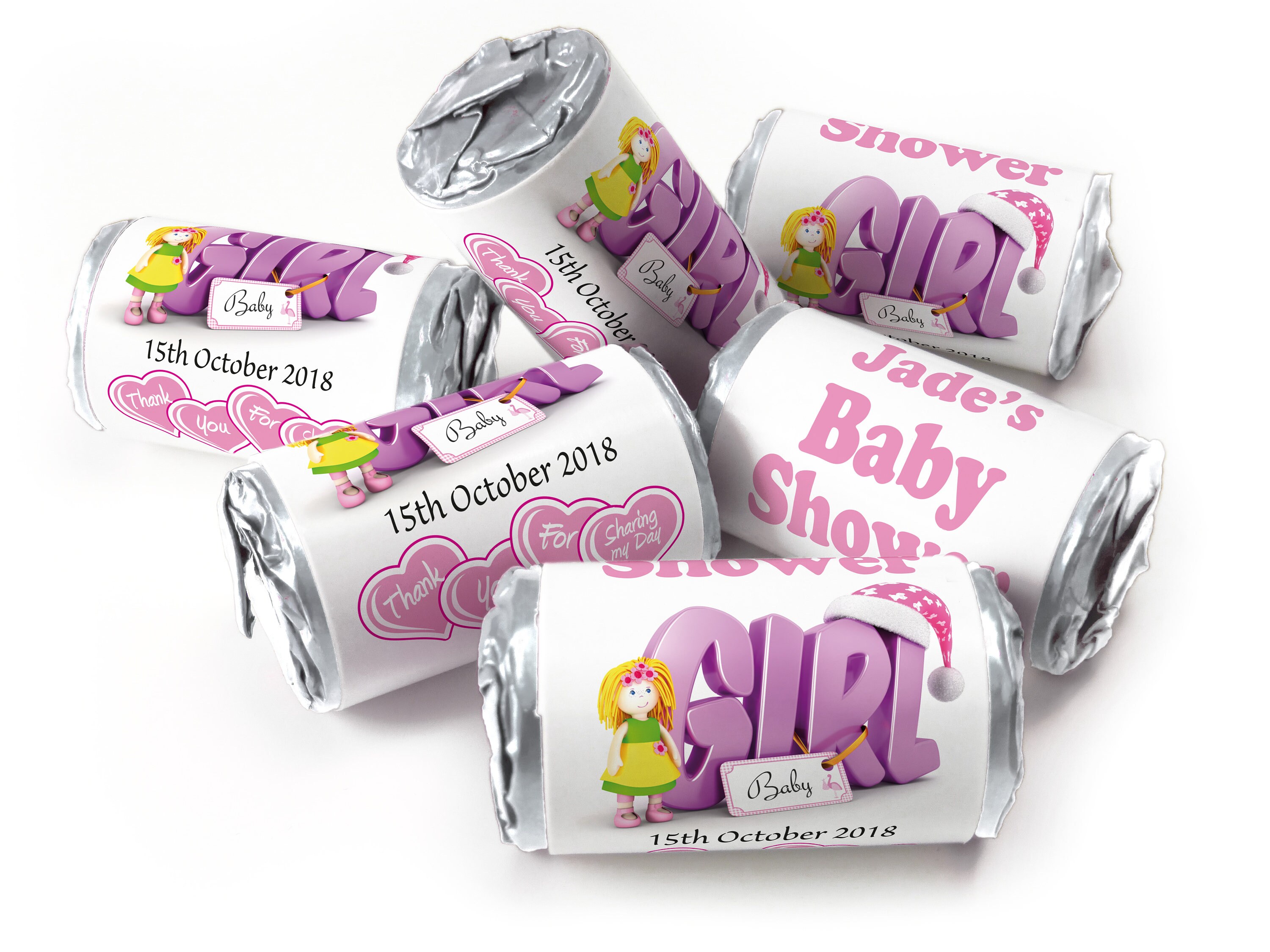 Baby Shower Sweets - Personalised Favours - Love Heart Sweets with Inner Foil choices, Pink Girl - V0