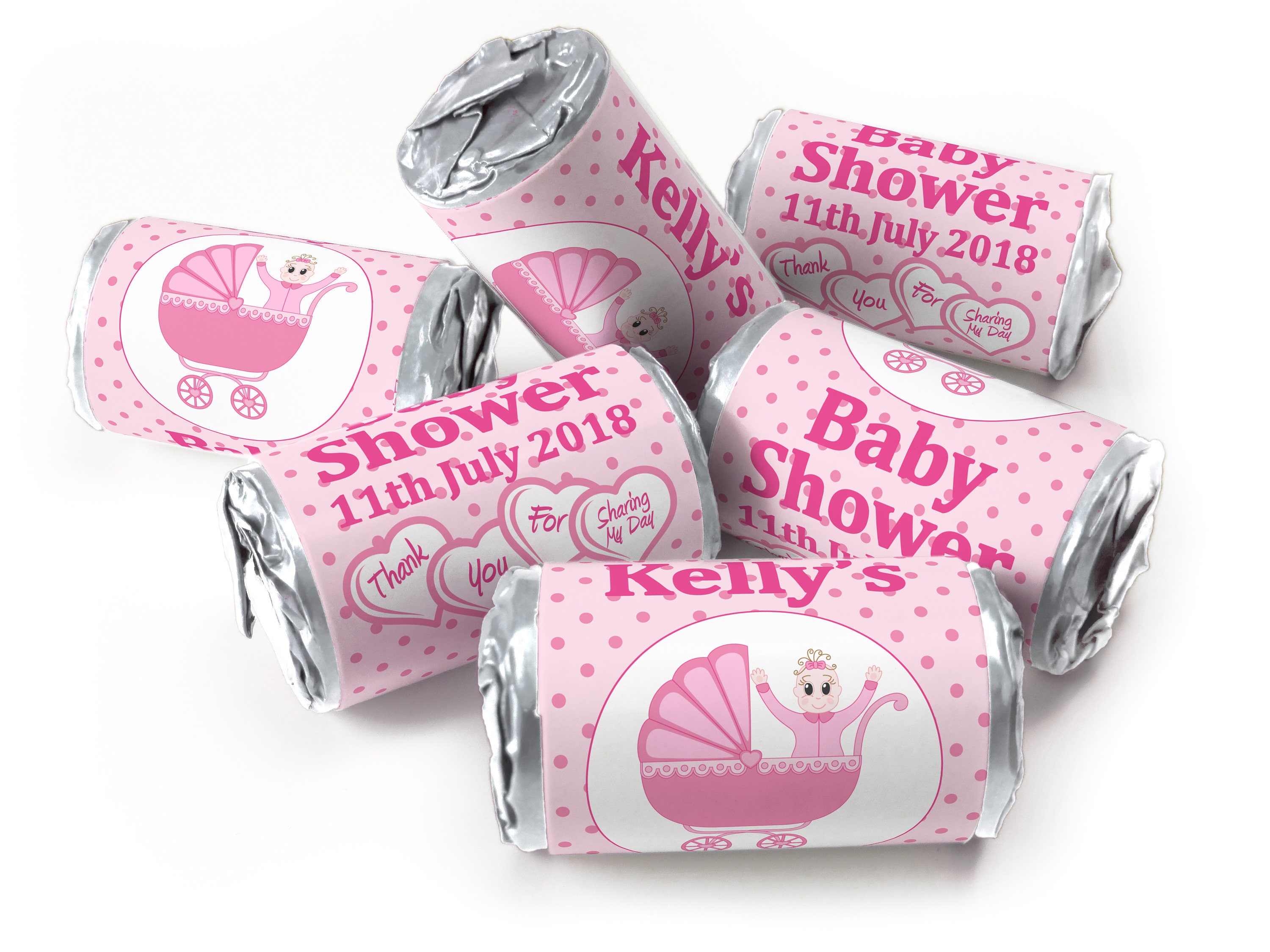 Baby Shower Sweets - Personalised Favours - Love Heart Sweets with Inner Foil choices, Spotty Pink