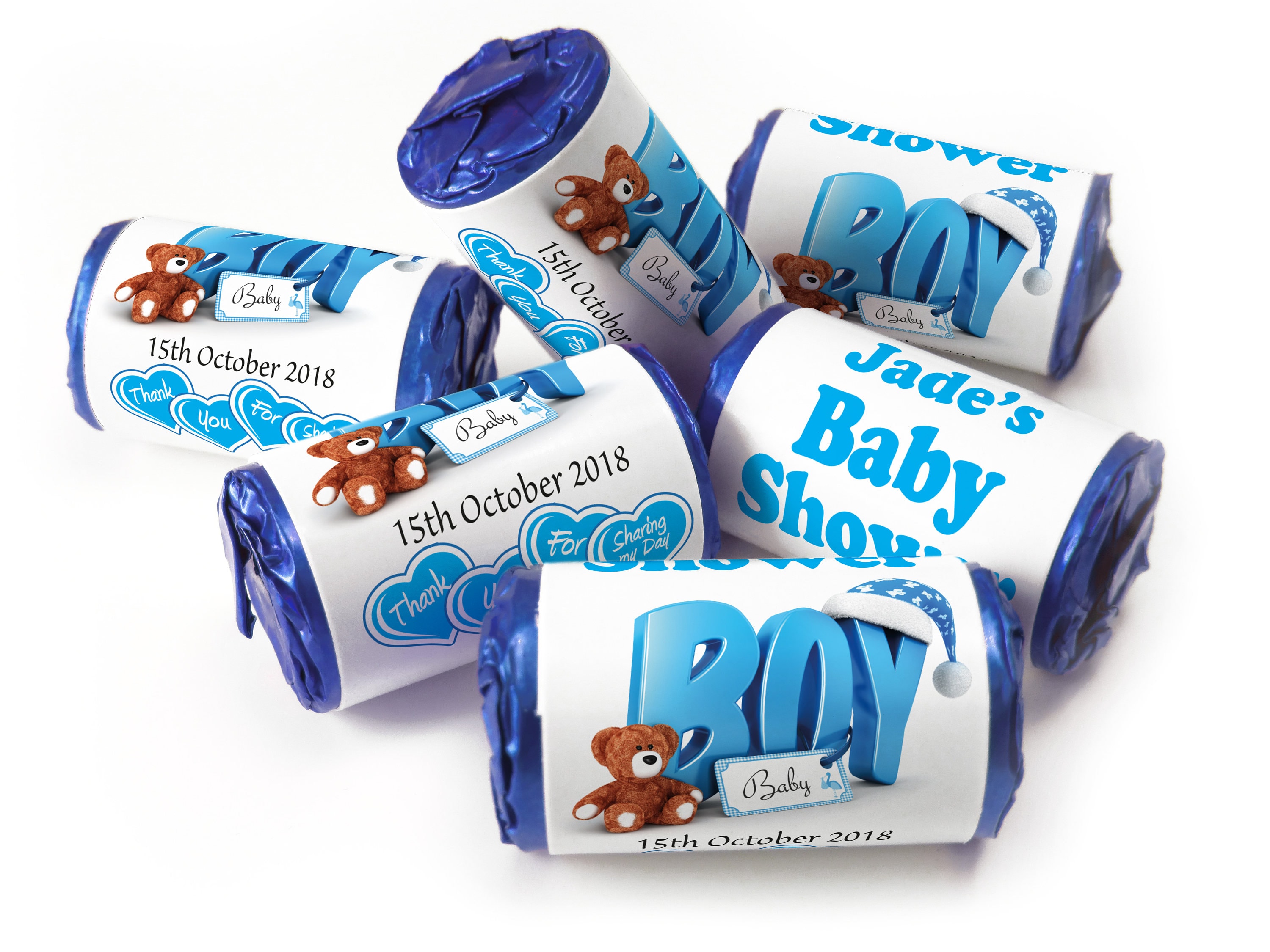 Baby Shower Sweets - Personalised Love Heart Sweets with Inner Foil choices Blue Boy - V0