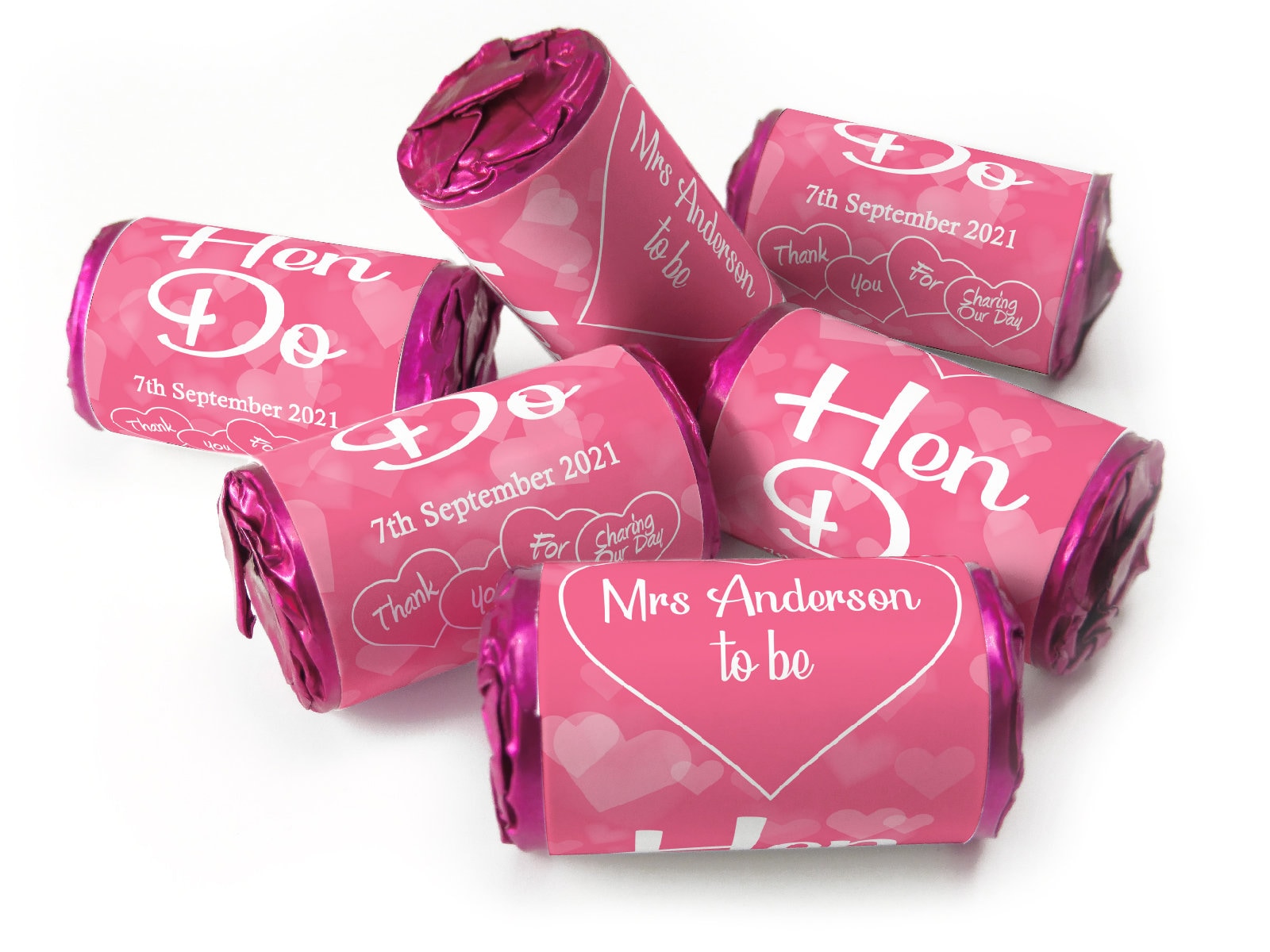 Hen Do Sweets - Personalised Favours - Love Heart Sweets with Inner Foil choices - V1