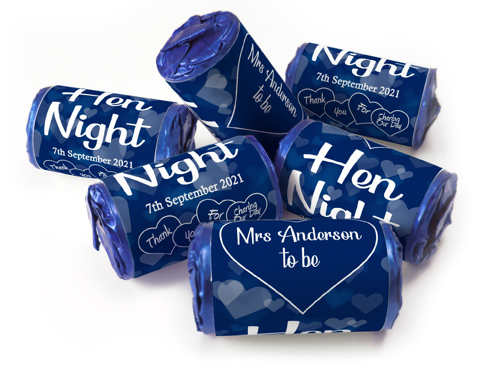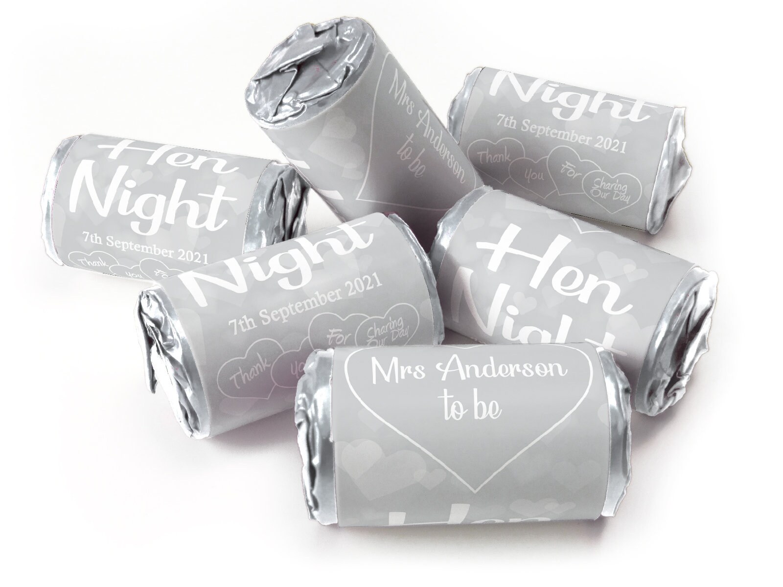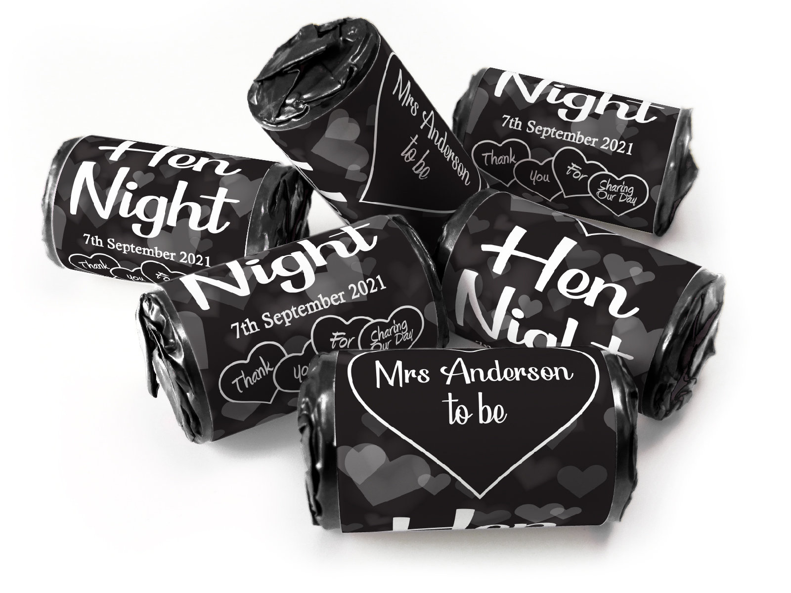 Hen Night Sweets - Personalised Favours - Love Heart Sweets with Matching Colour Foil Choices - V1