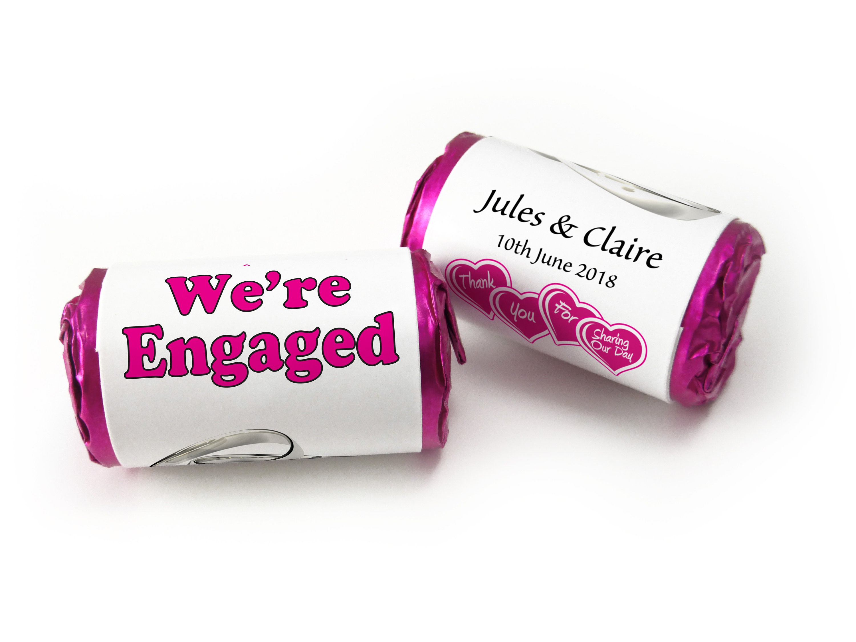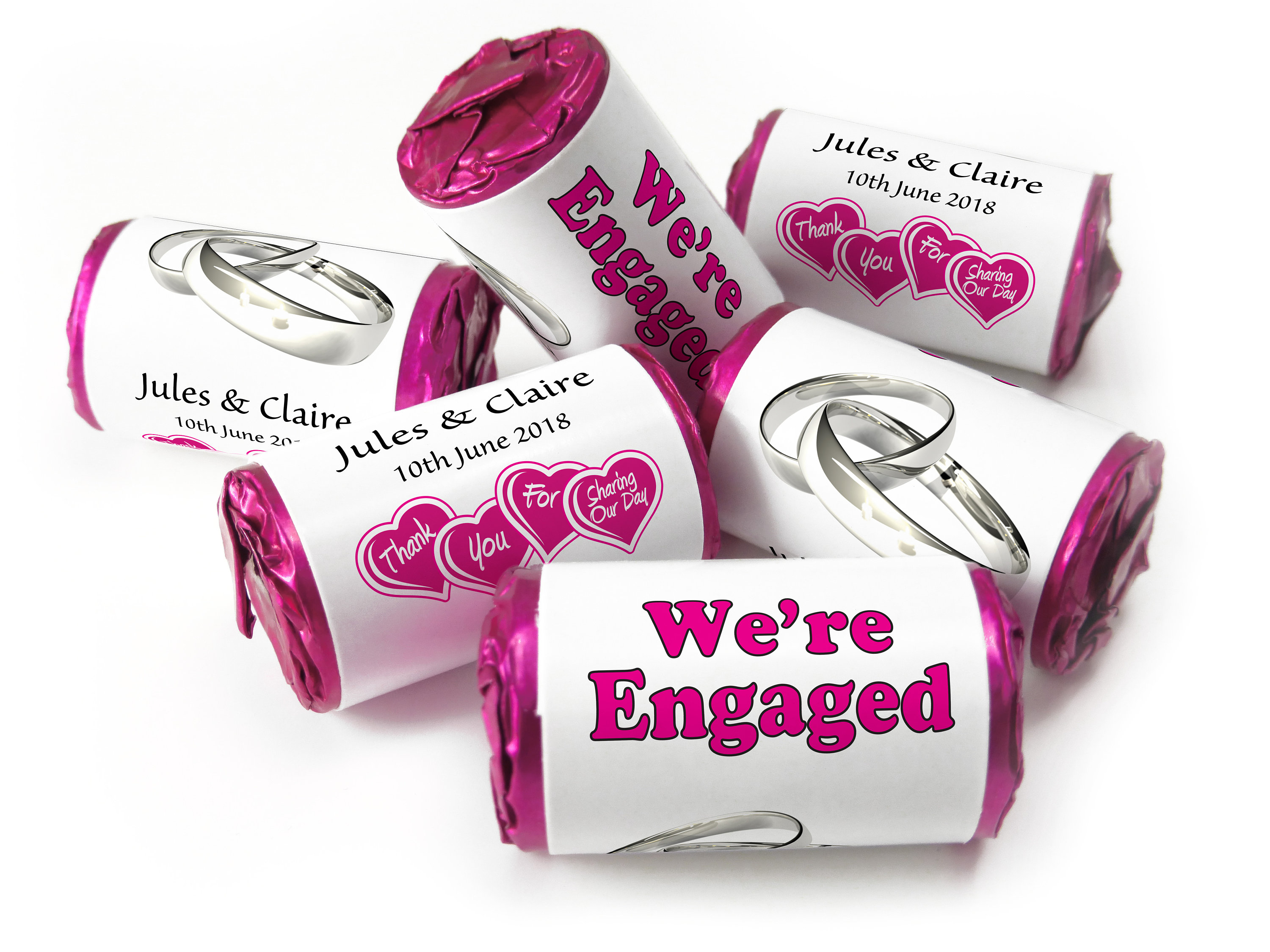 Engaged Sweets - Personalised Engagement Favours - Love Heart Sweets with Inner Foil choices - Silver Rings / Pink Text - V0