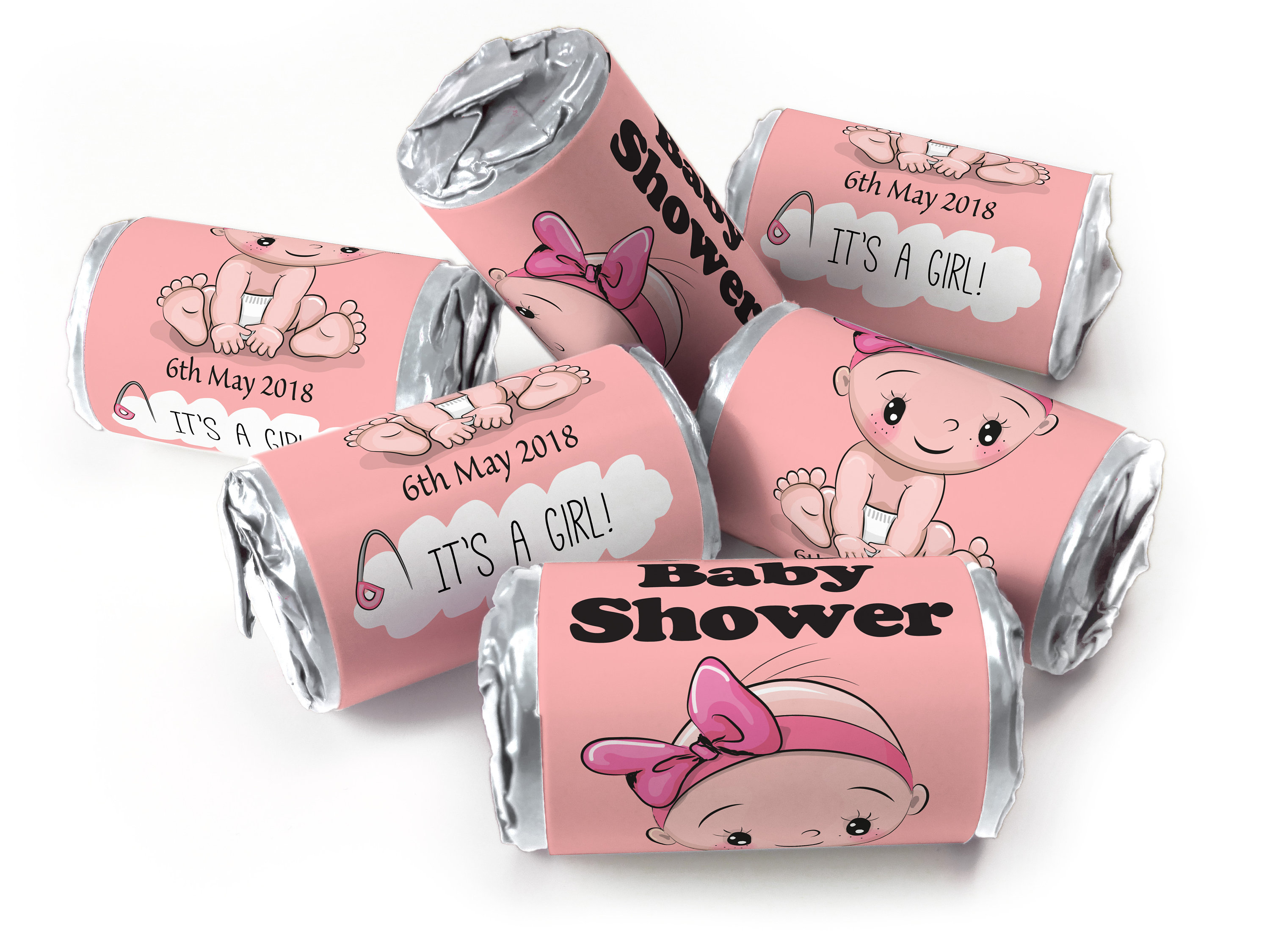 Baby Shower Sweets - Personalised Favours - Love Heart Sweets with Inner Foil choices Girl - V1