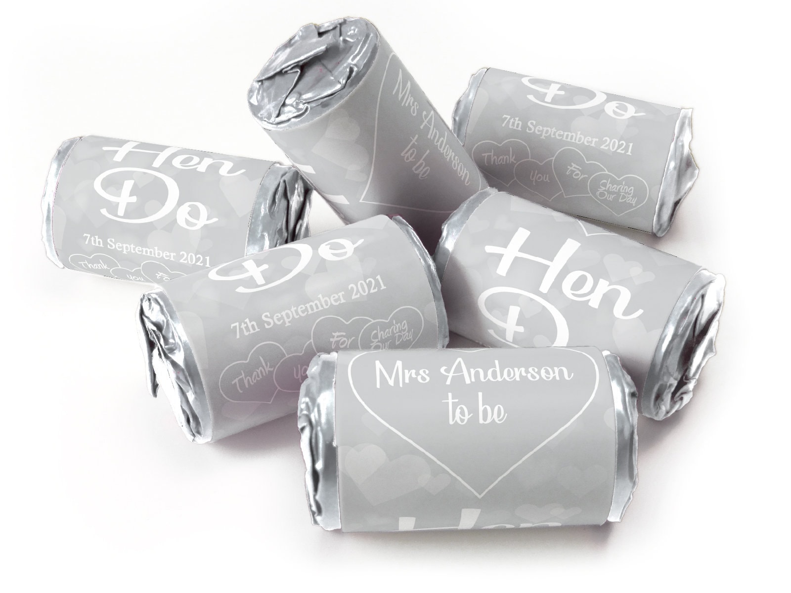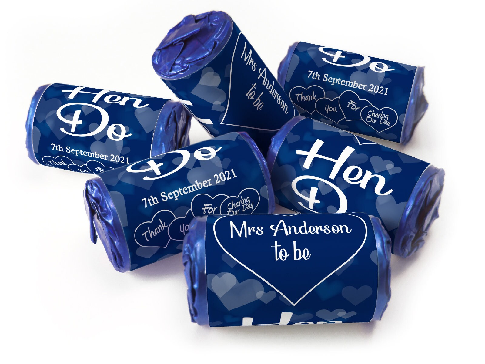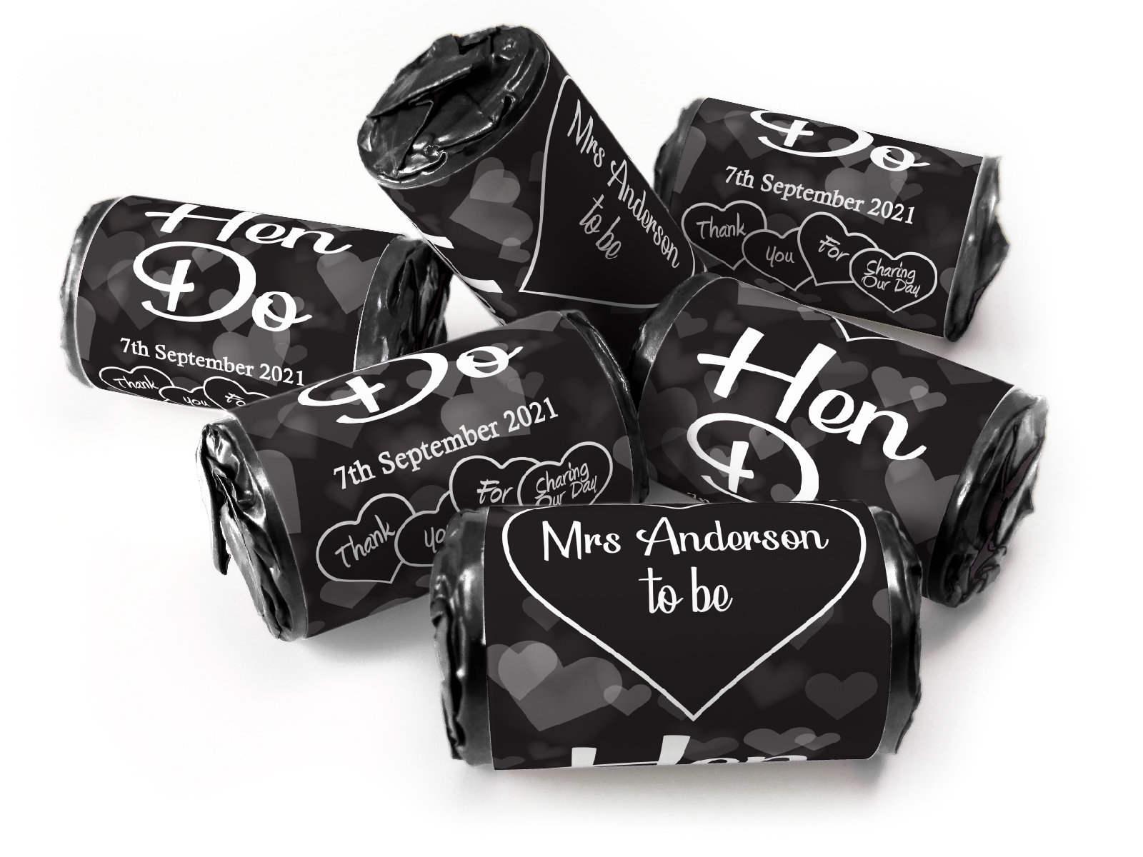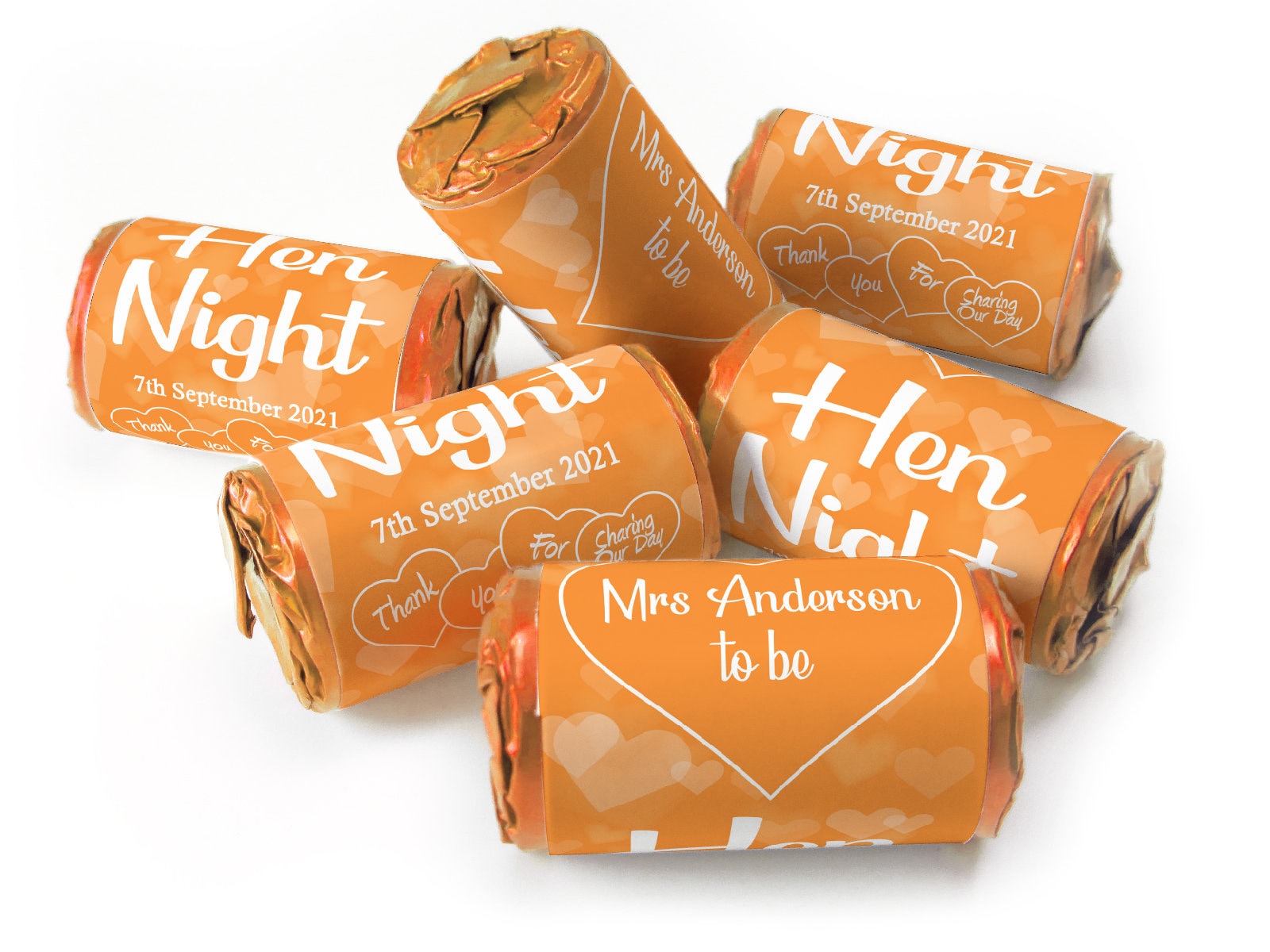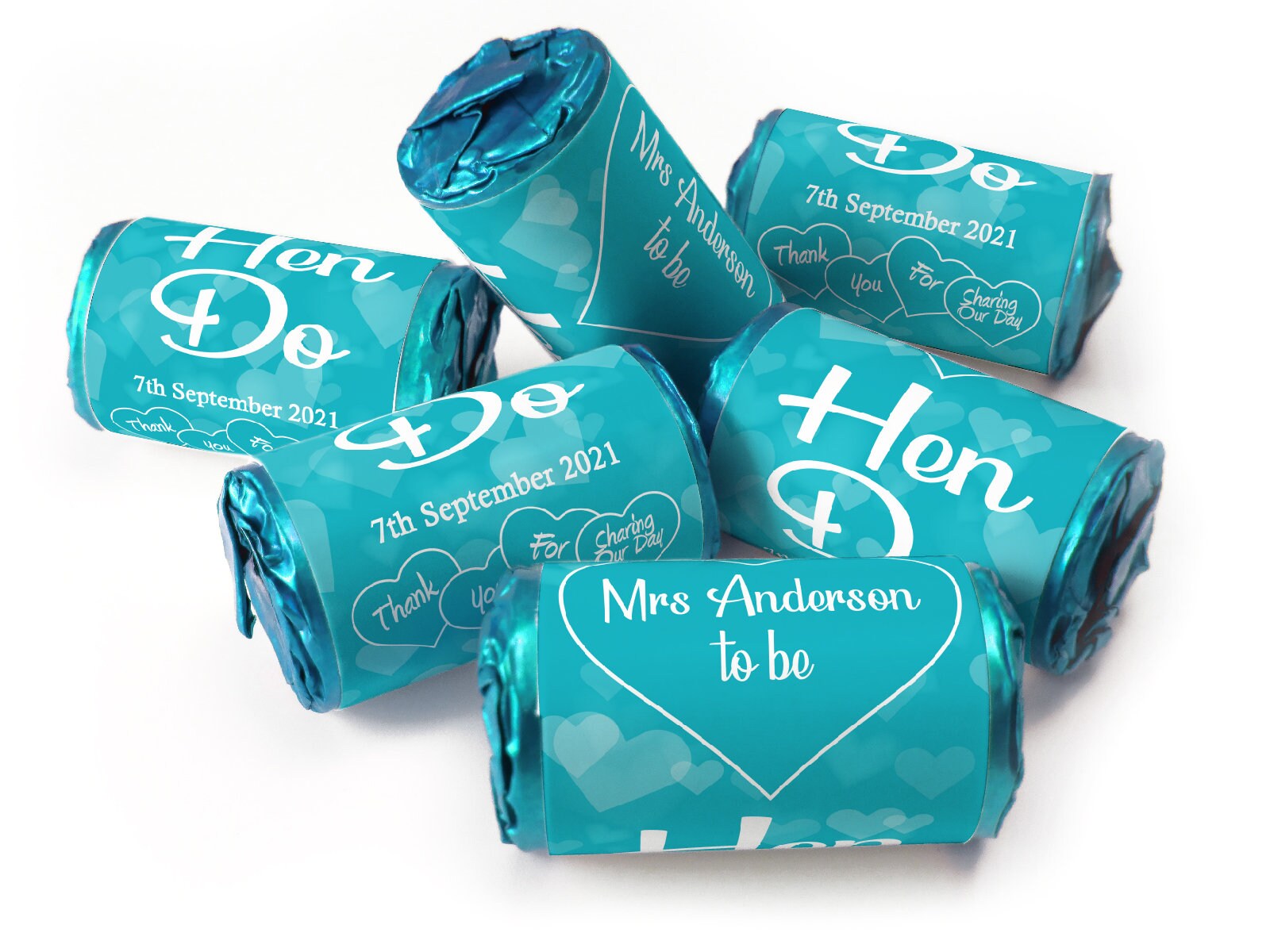 Hen Do Sweets - Personalised Favours - Love Heart Sweets with Matching Colour Foil Choices - V1