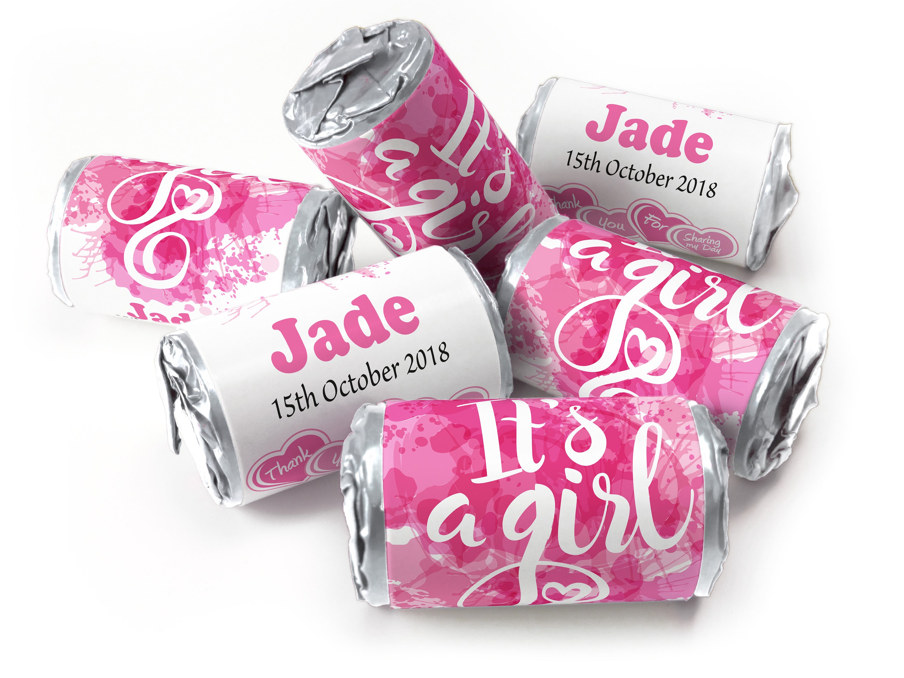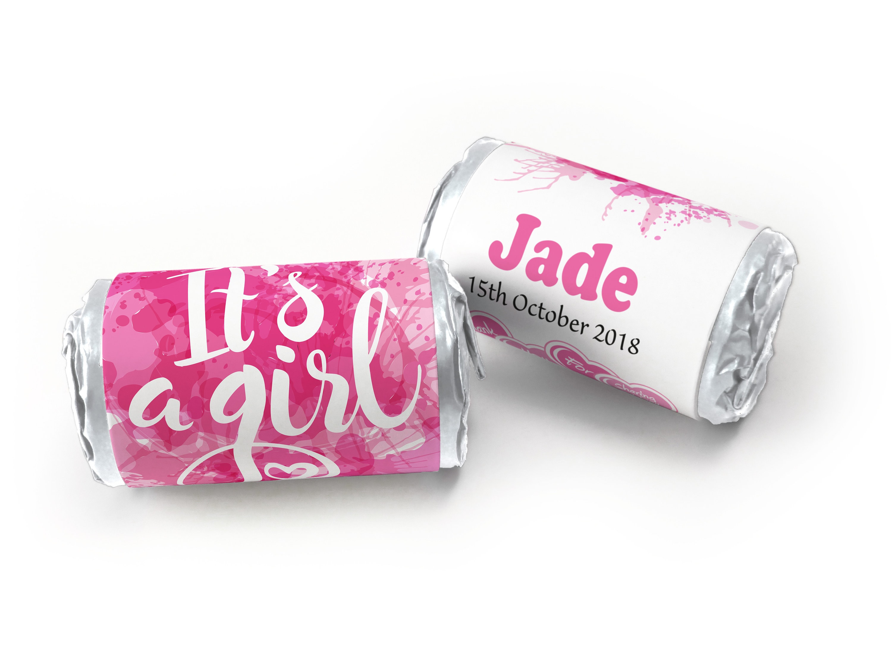 Baby Shower Sweets - Personalised Favours - Love Heart Sweets with Inner Foil choices, Girl in Silver Foils - V4