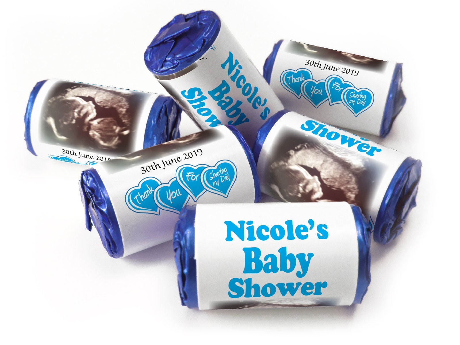 Baby Shower Sweets - Personalised Favours - Love Heart Sweets with Inner Foil choices, Blue Scan - V0