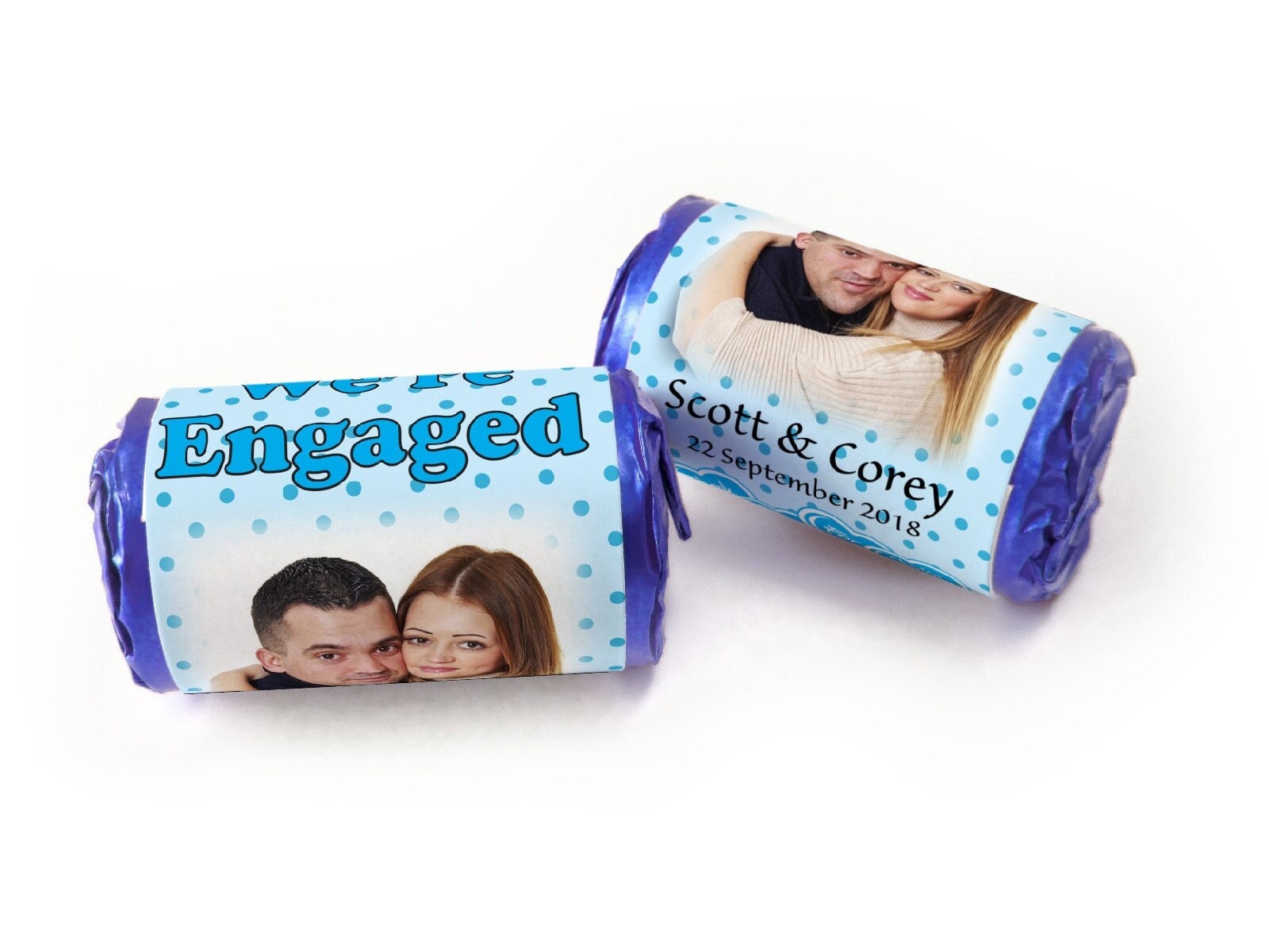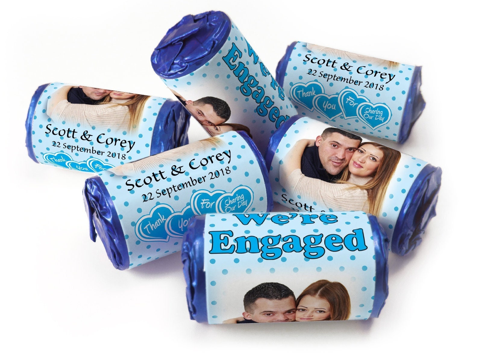 Engaged sweets - personalised engagement favours - Love Heart Sweets with Inner Foil choices - With Image