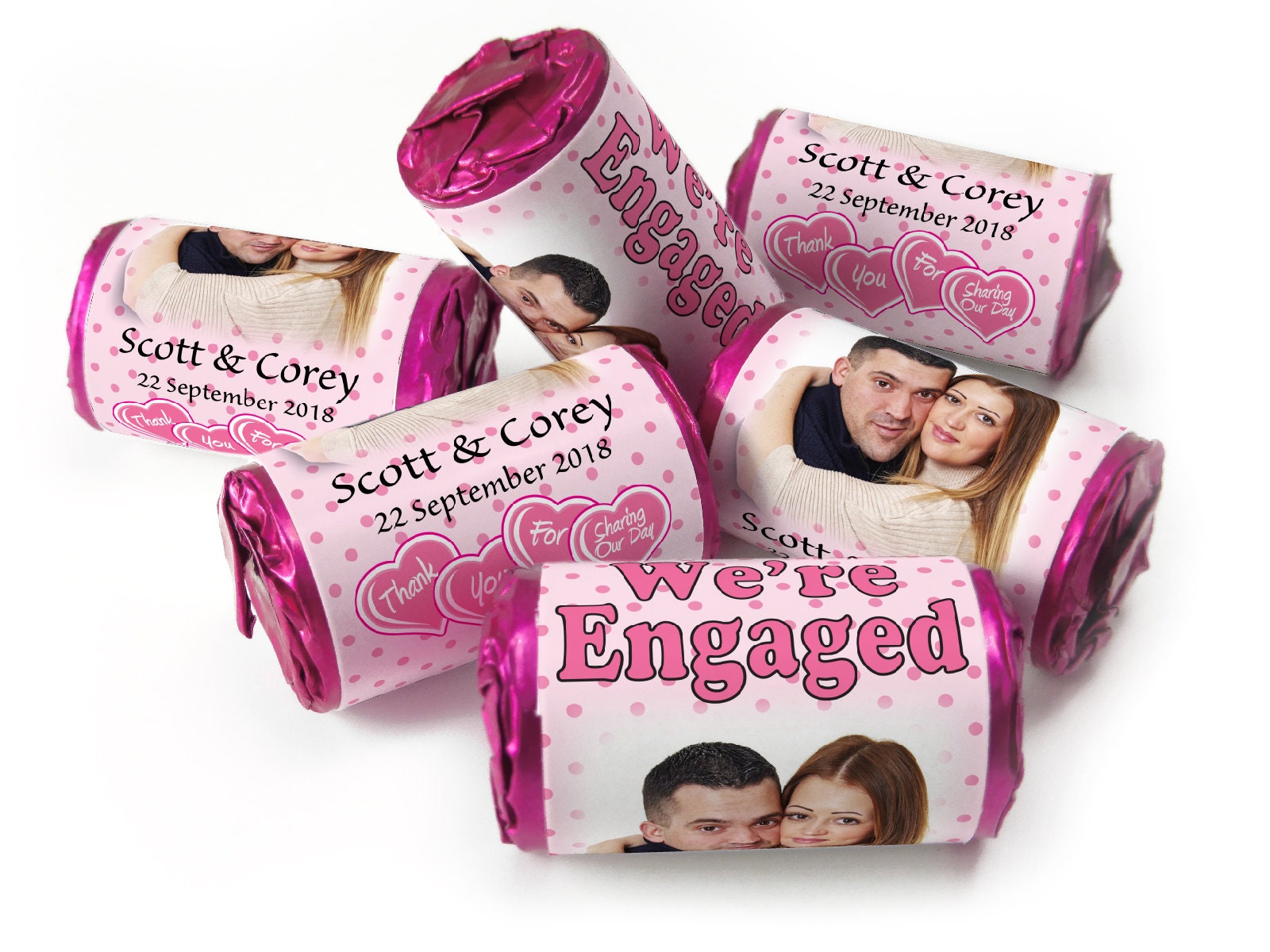 Engaged Sweets - Personalised Engagement Favours - Love Heart Sweets with Inner Foil choices - Spotty Pink with Image